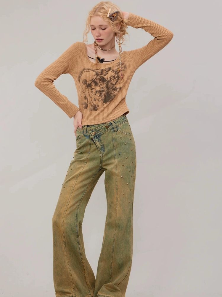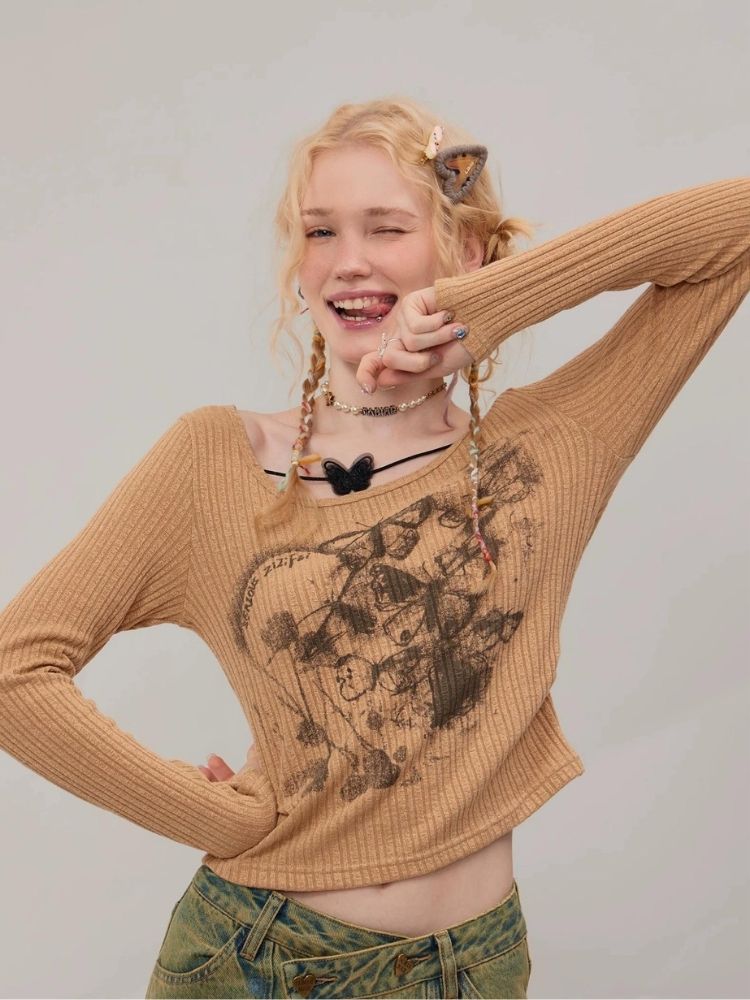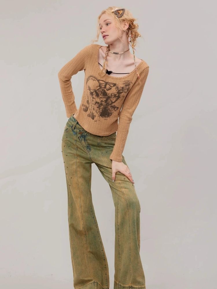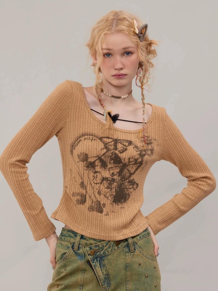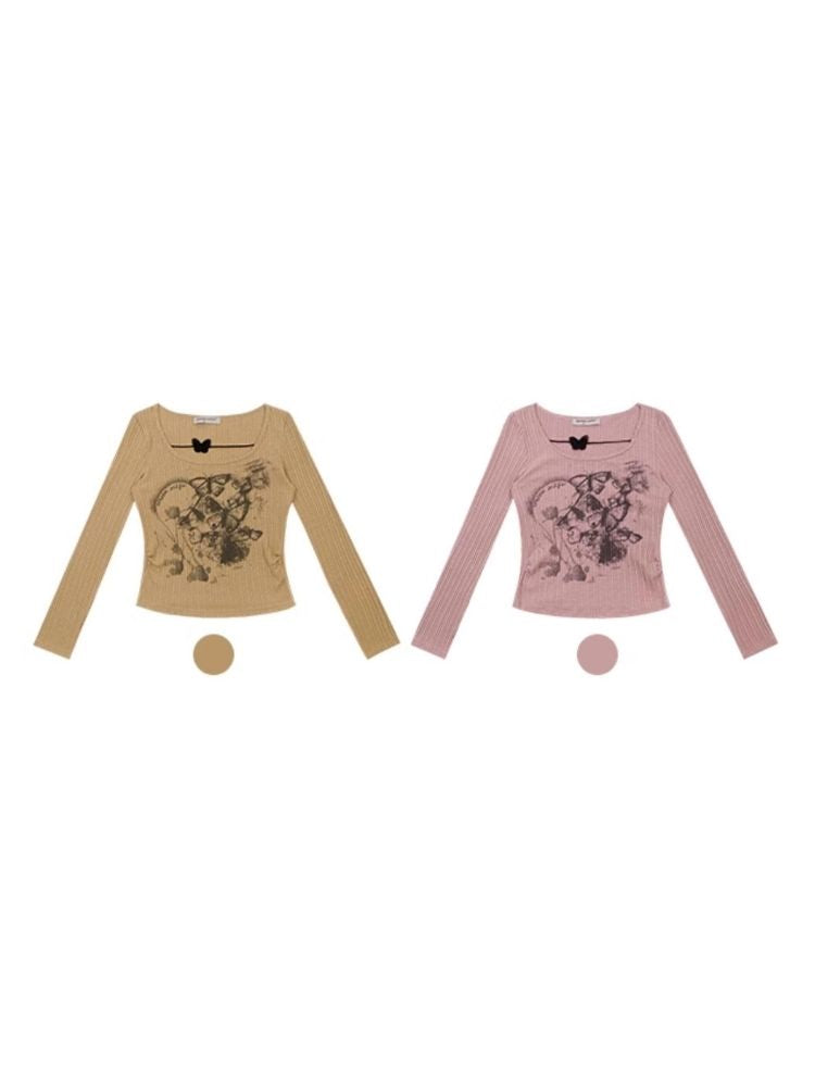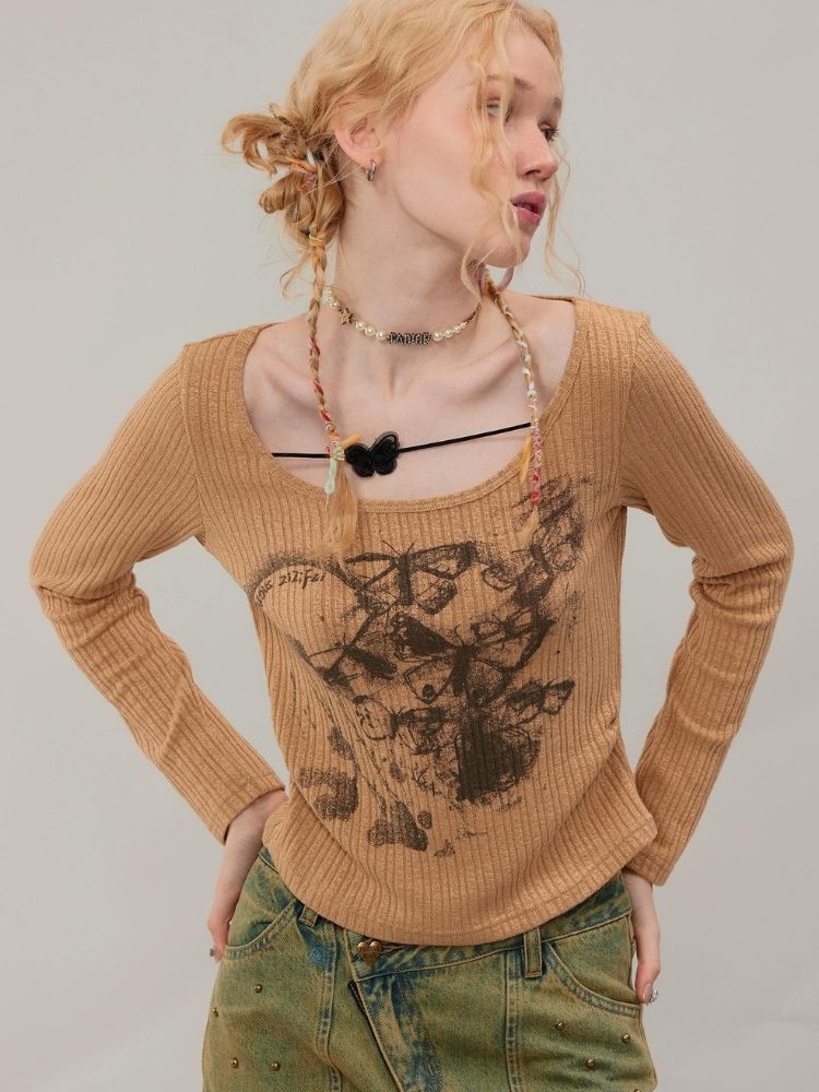 Butterfly print long sleeve T-shirt【s0000003747】