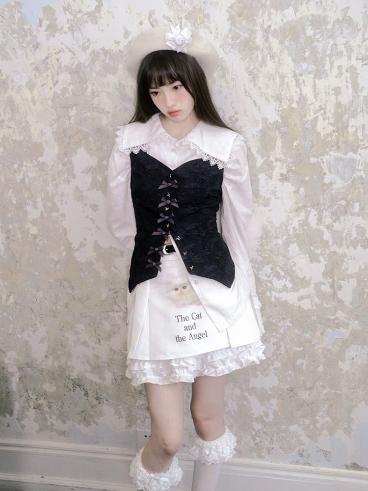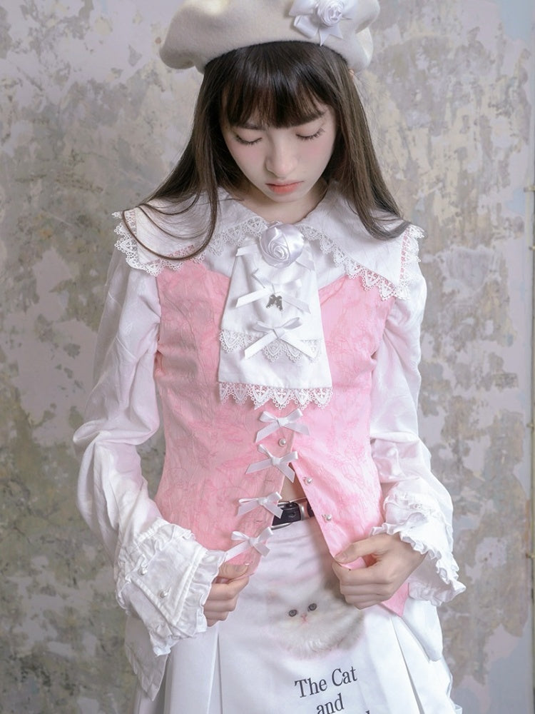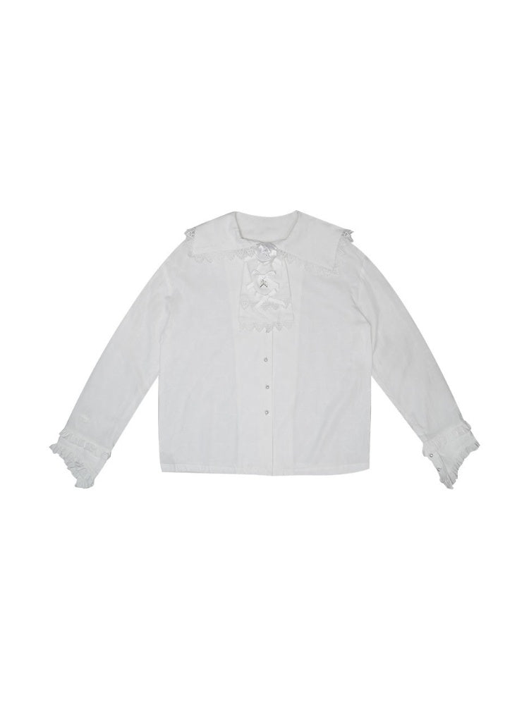 Ribbon Rose Sailor Collar Ruffle Lace Blouse【s0000003811】