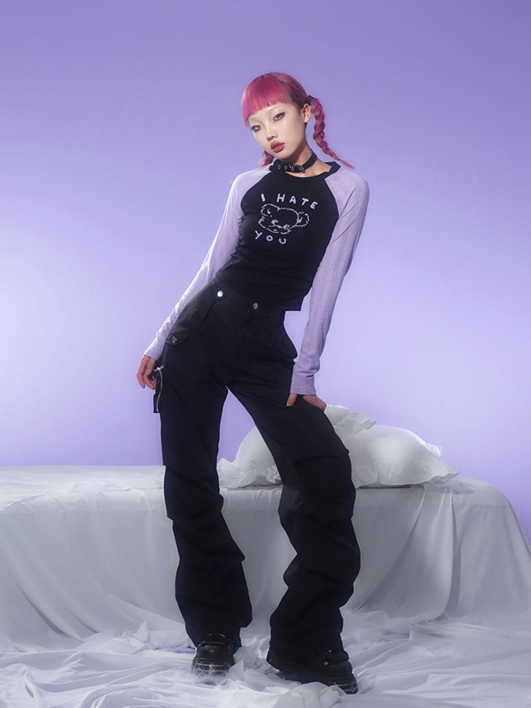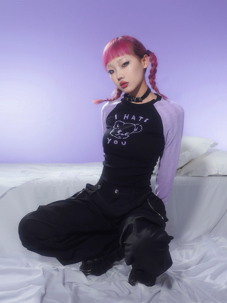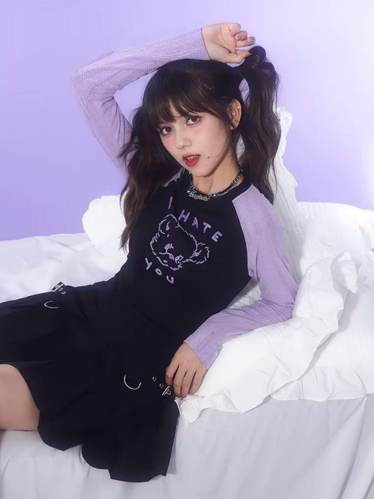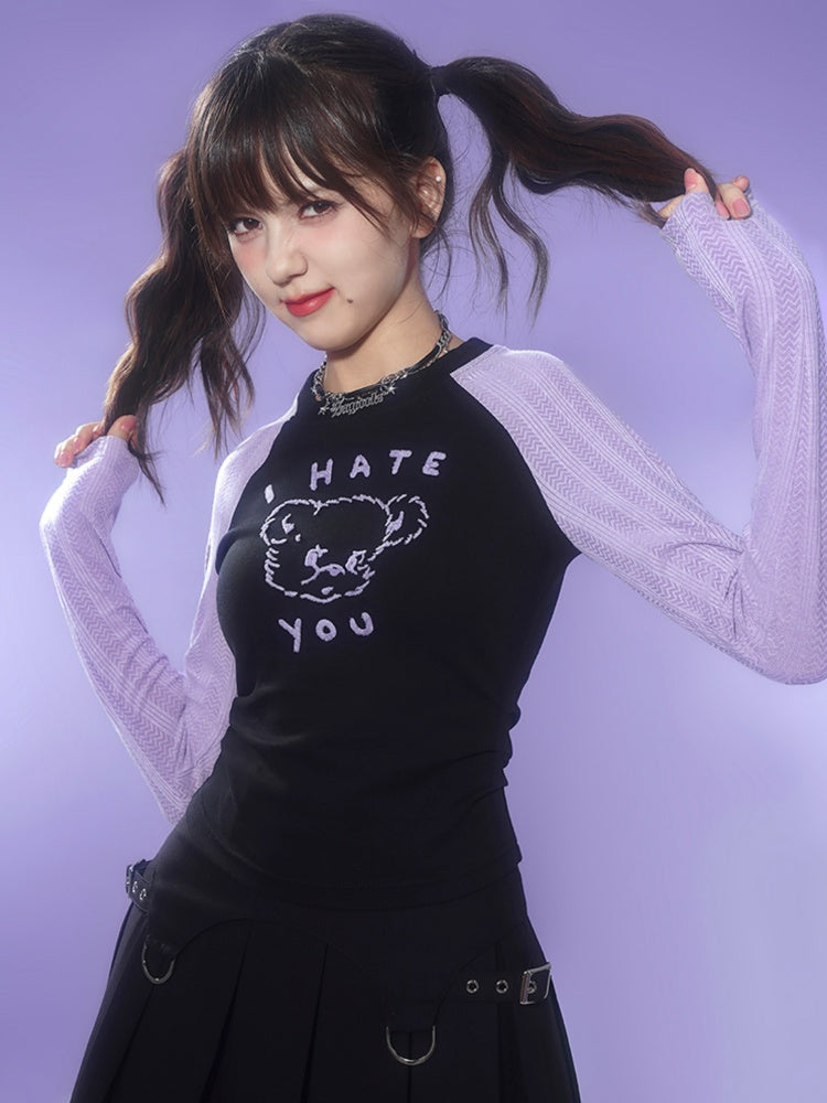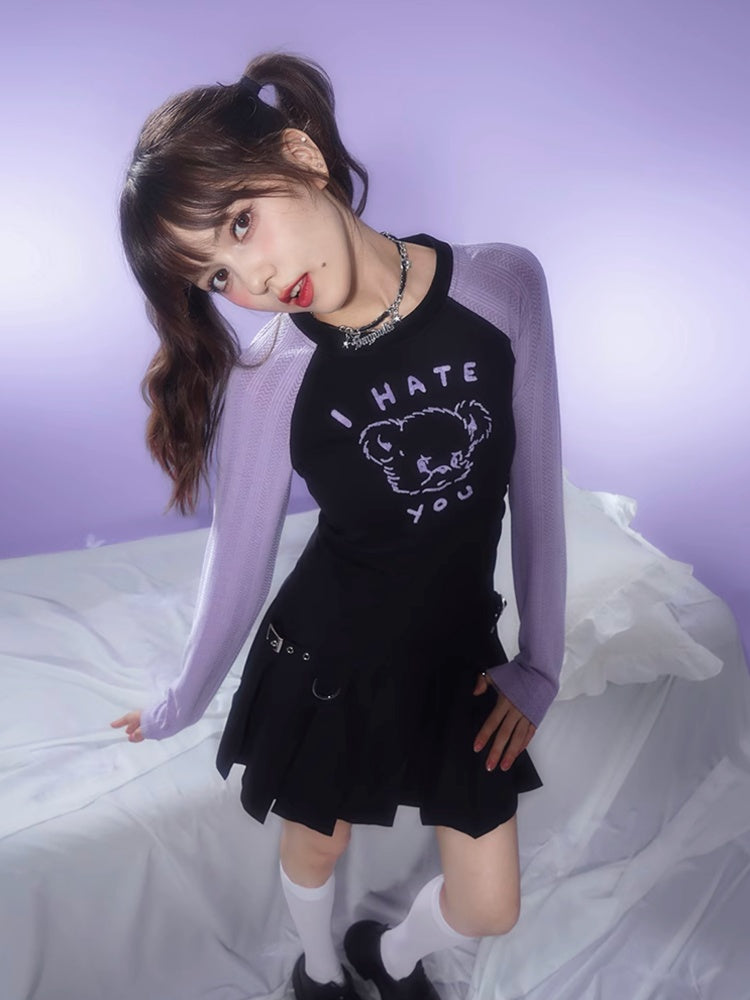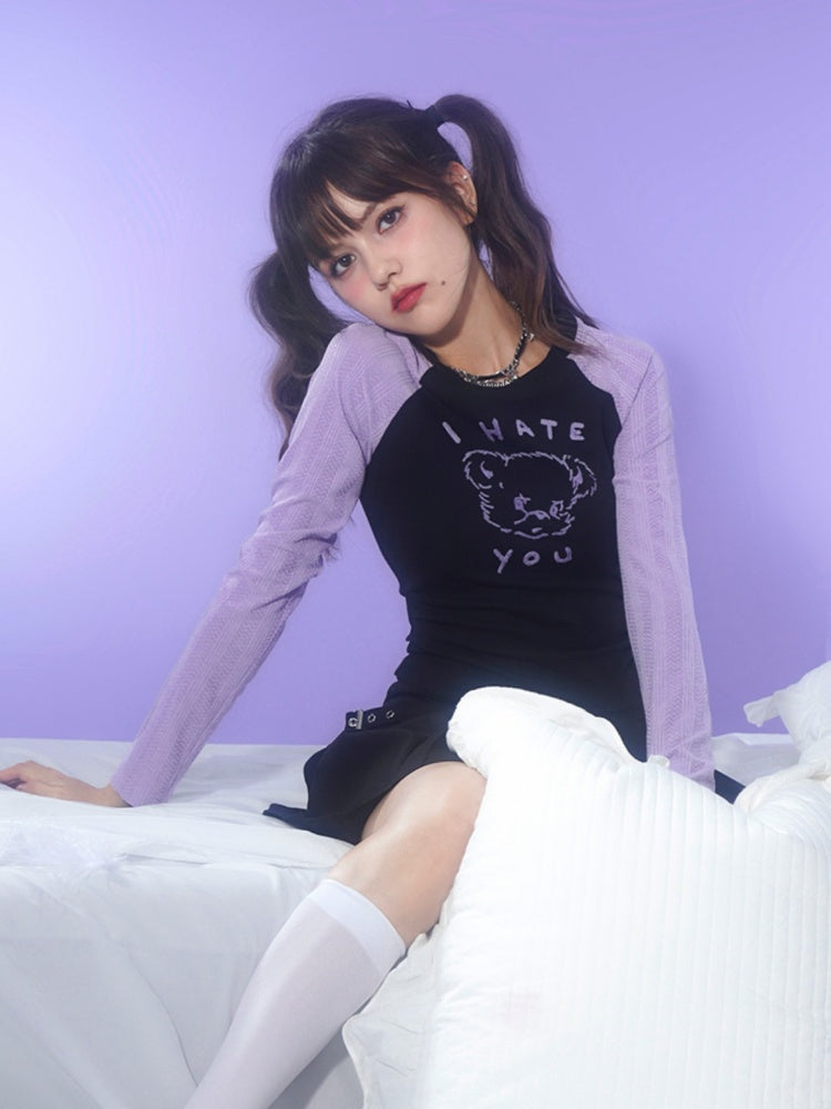 Bear Print Slim Raglan Sleeve T-Shirt【s0000003839】
