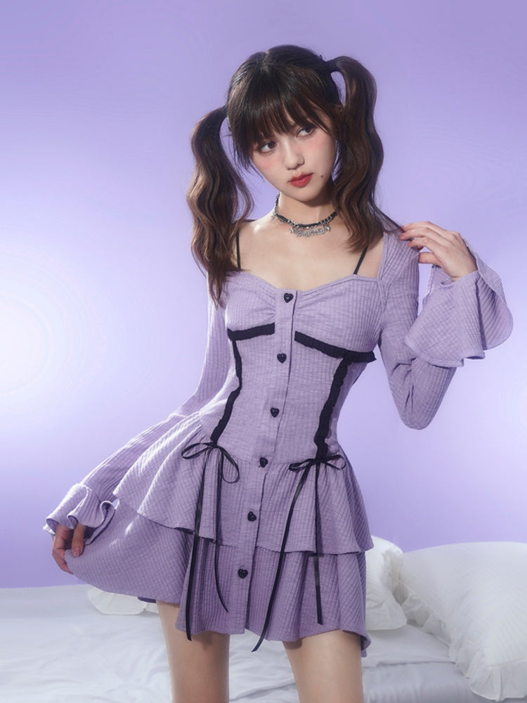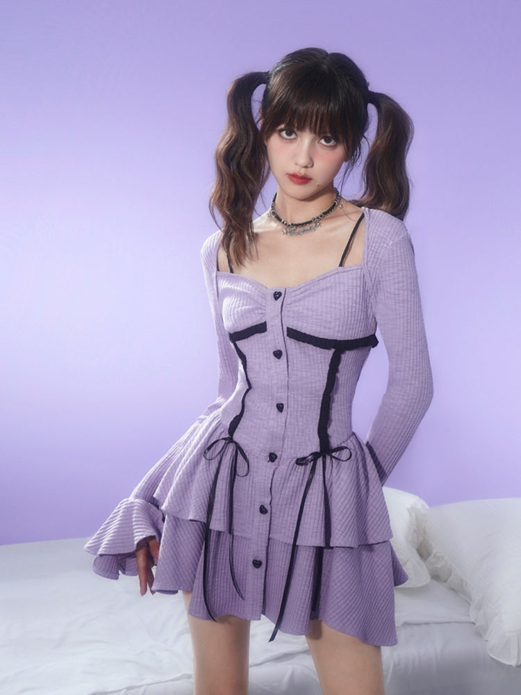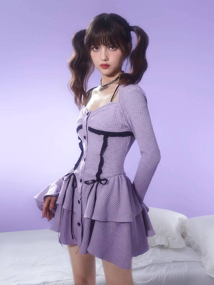 Striped Split Design Ruffle Ribbon Cake Dress【s0000003842】
