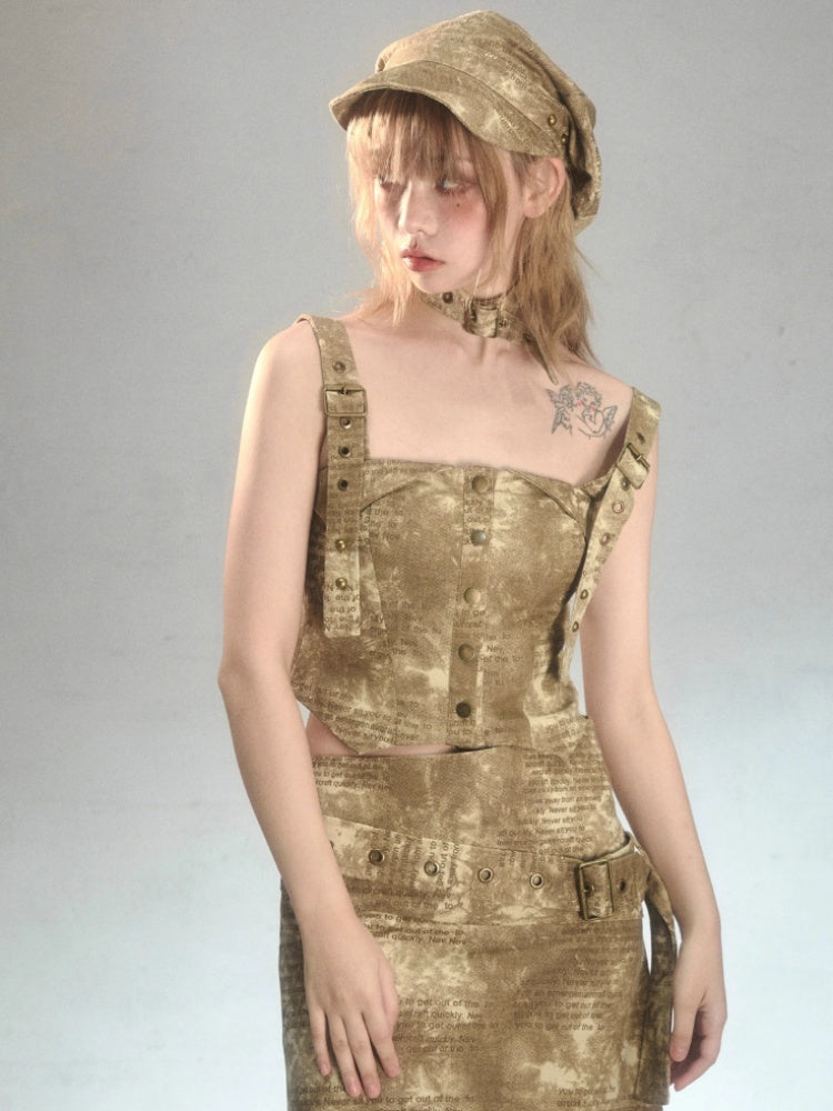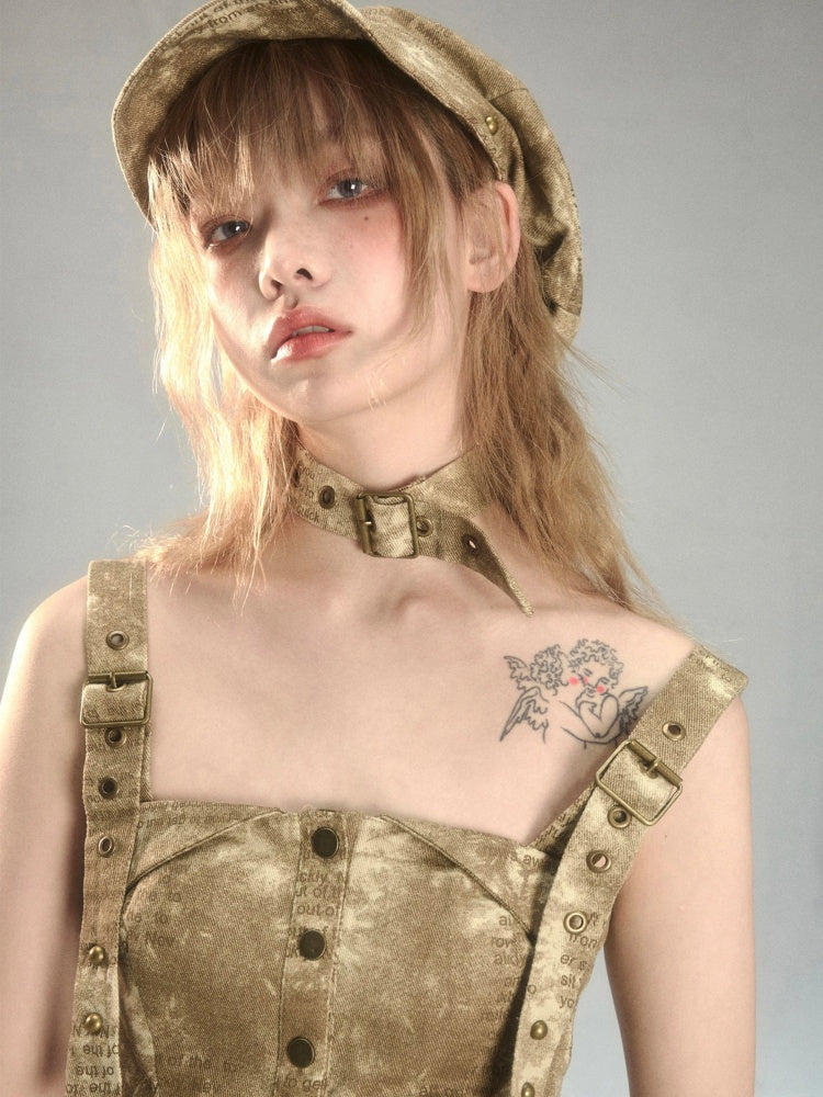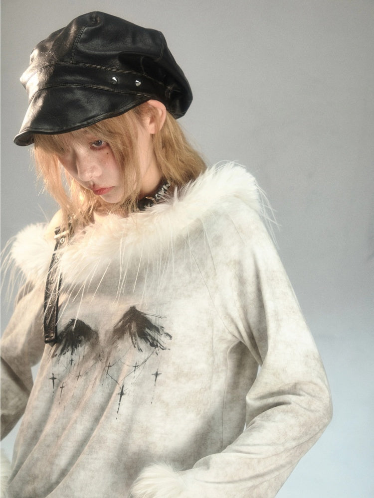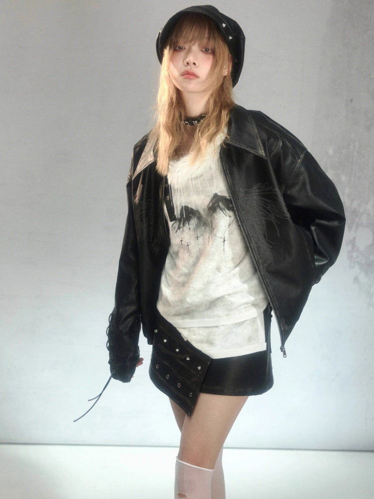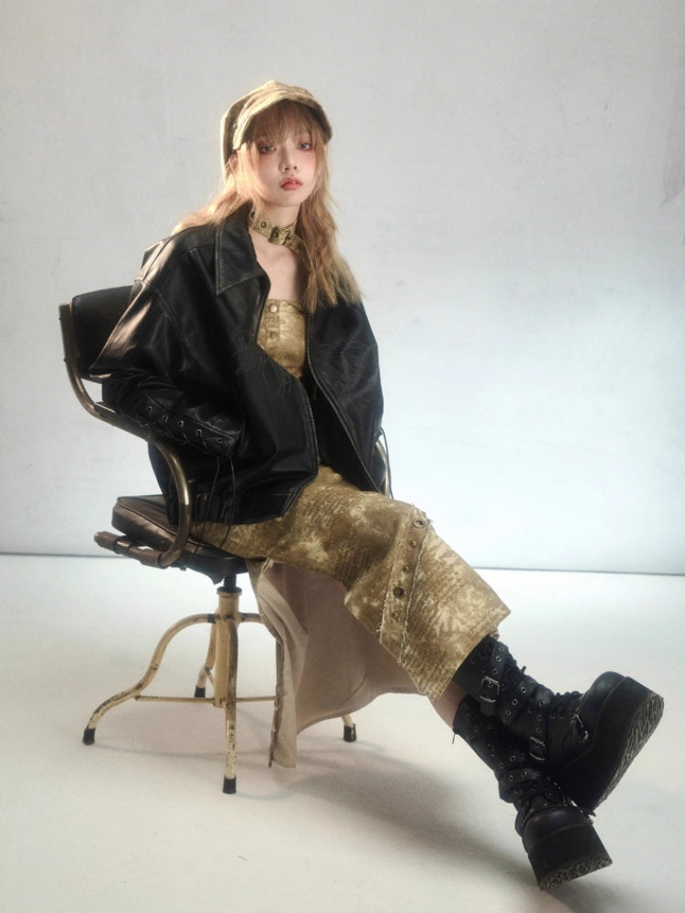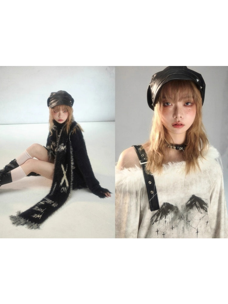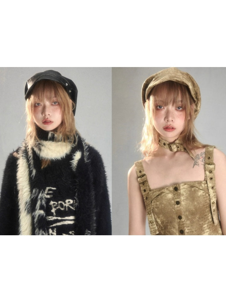 Rivet Distressed Leather Jacquard Newsboy Hat【s0000003875】