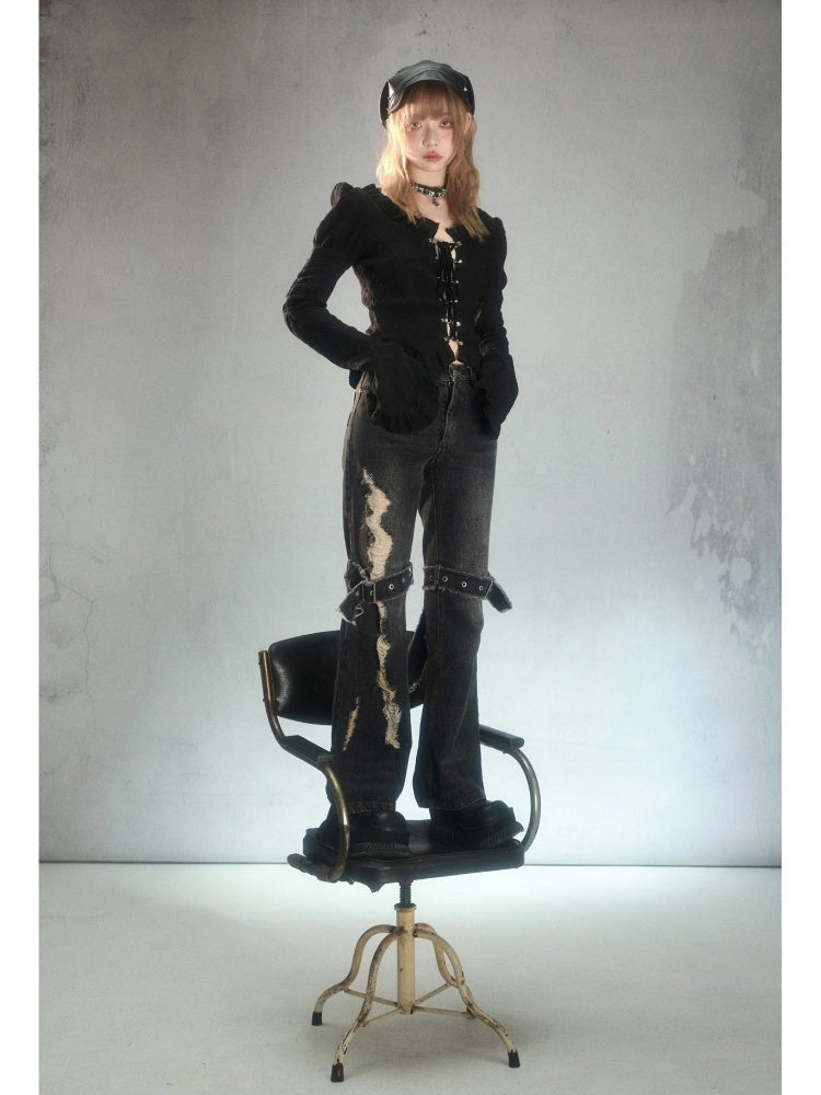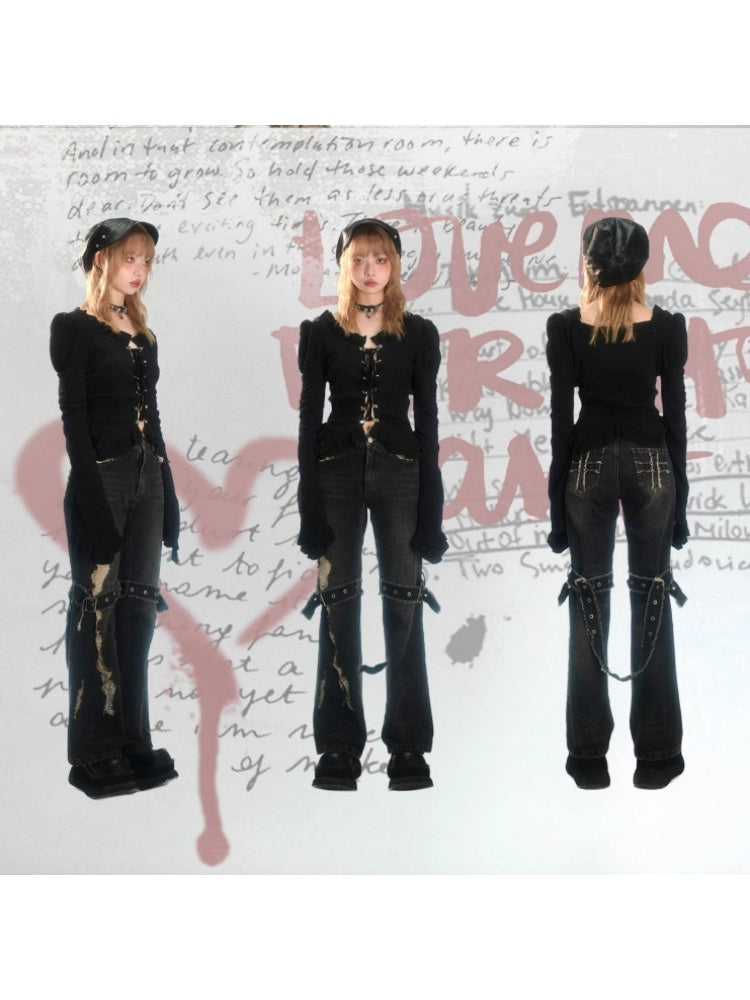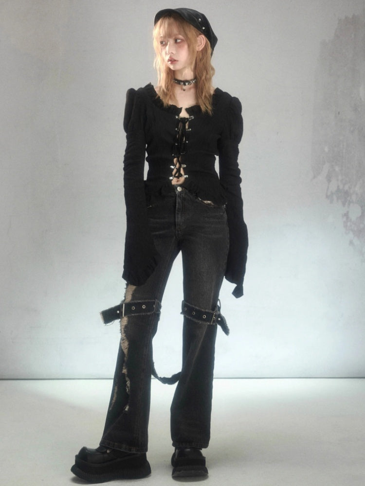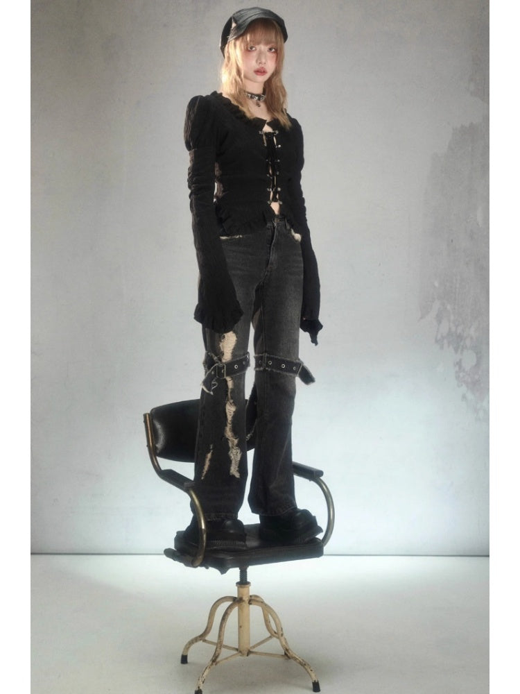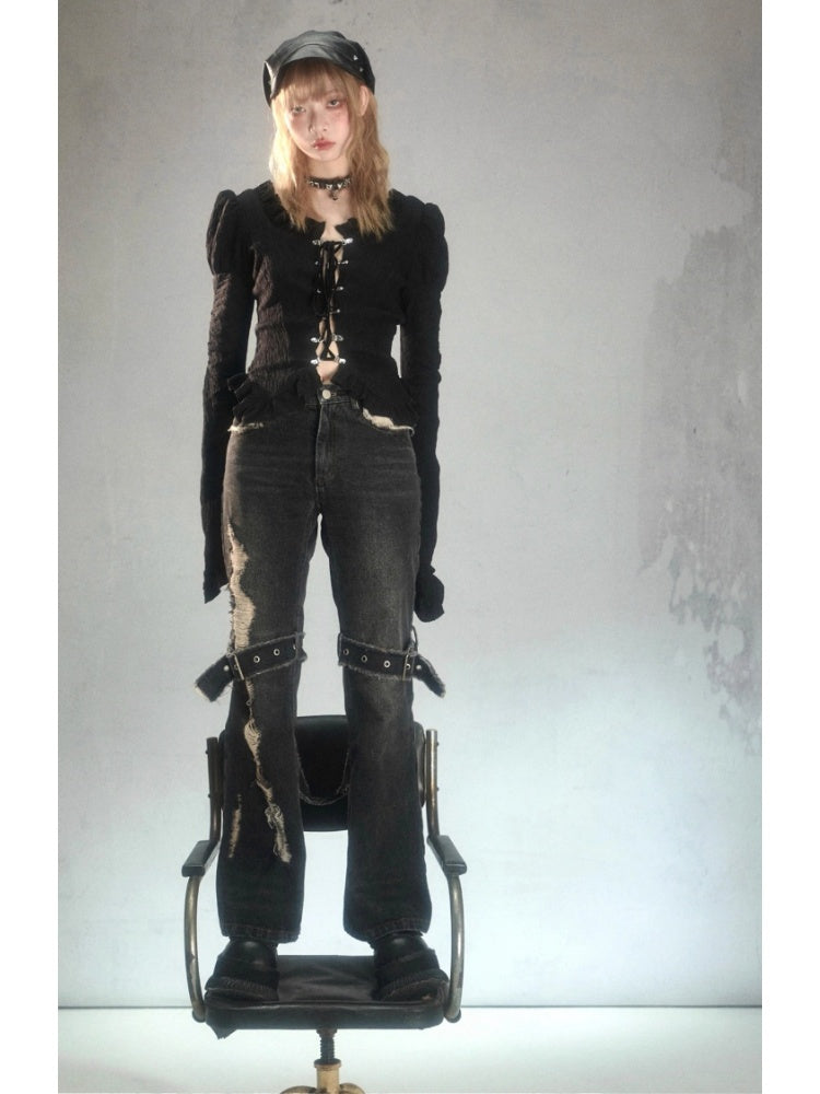 Punk Bondage Distressed Wash Denim Pants【s0000003876】