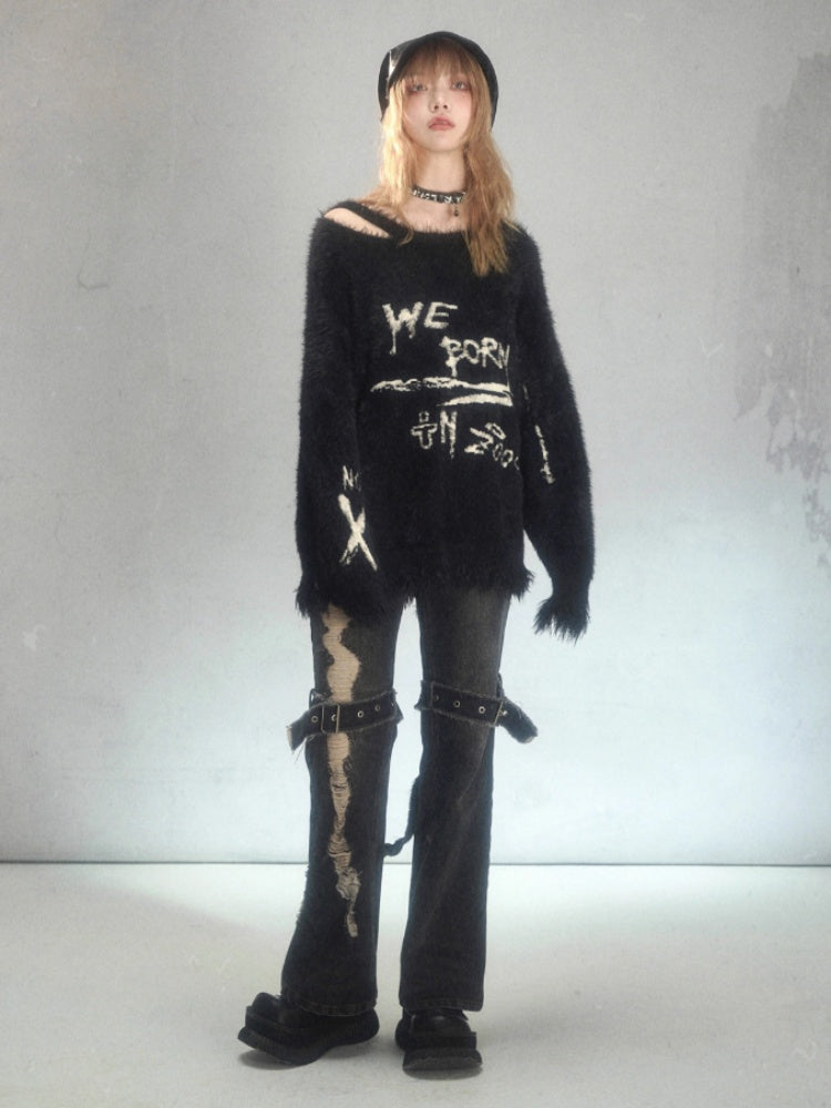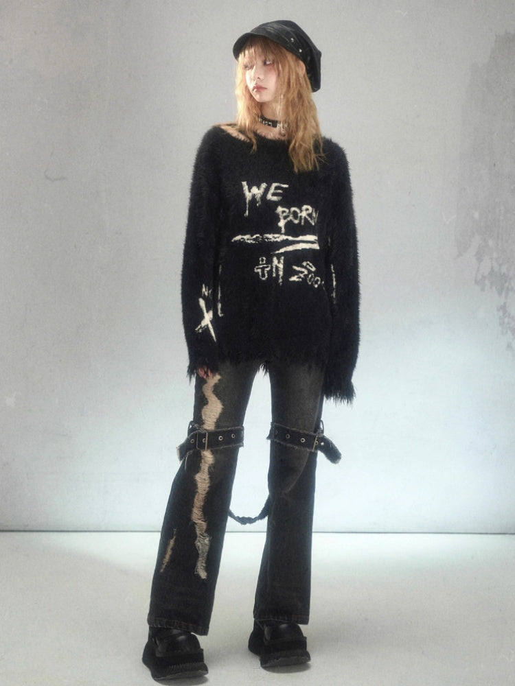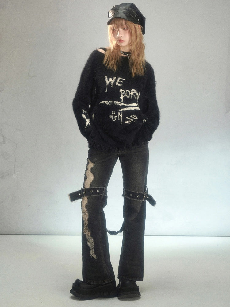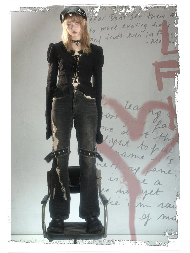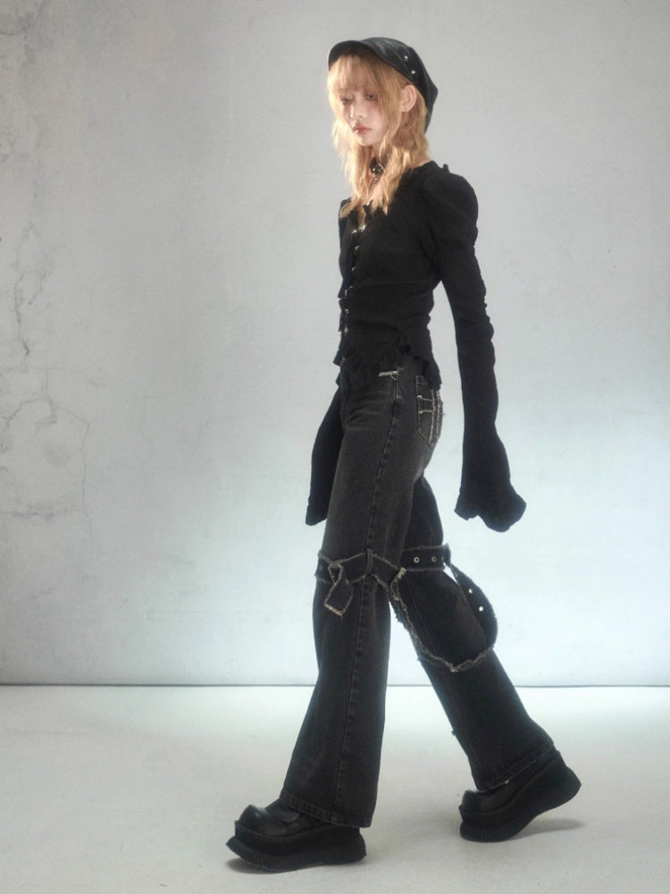 Punk Bondage Distressed Wash Denim Pants【s0000003876】