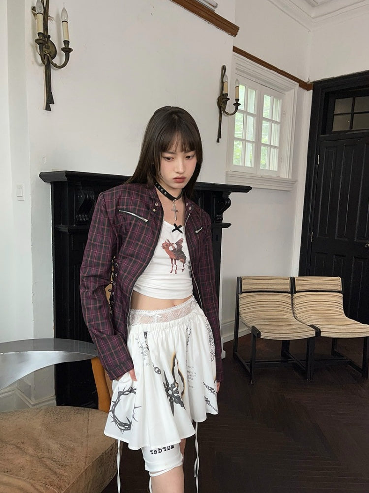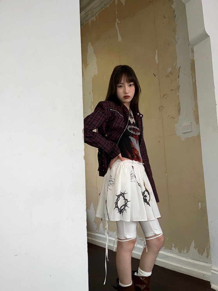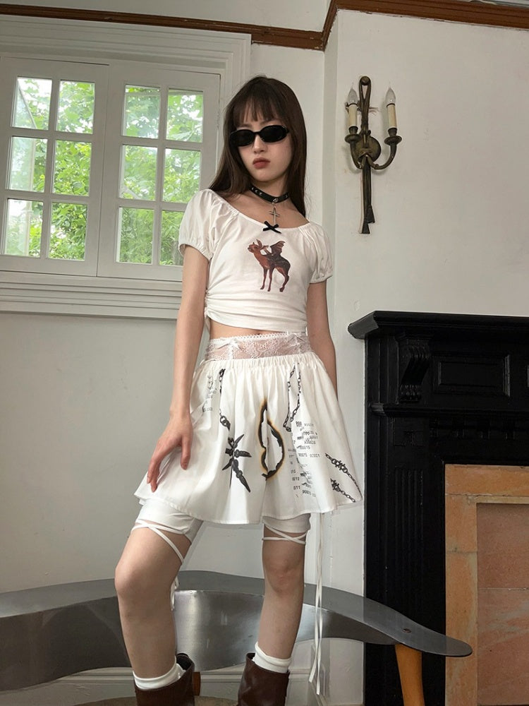Lace Ribbon Stitch Devil Deer Print Short Leggings【s0000003883】