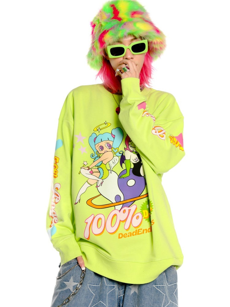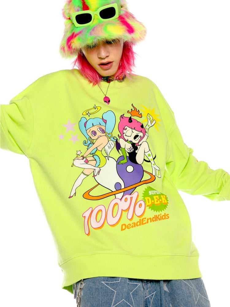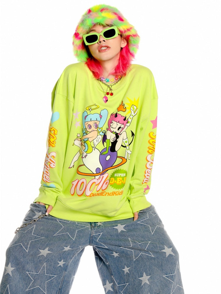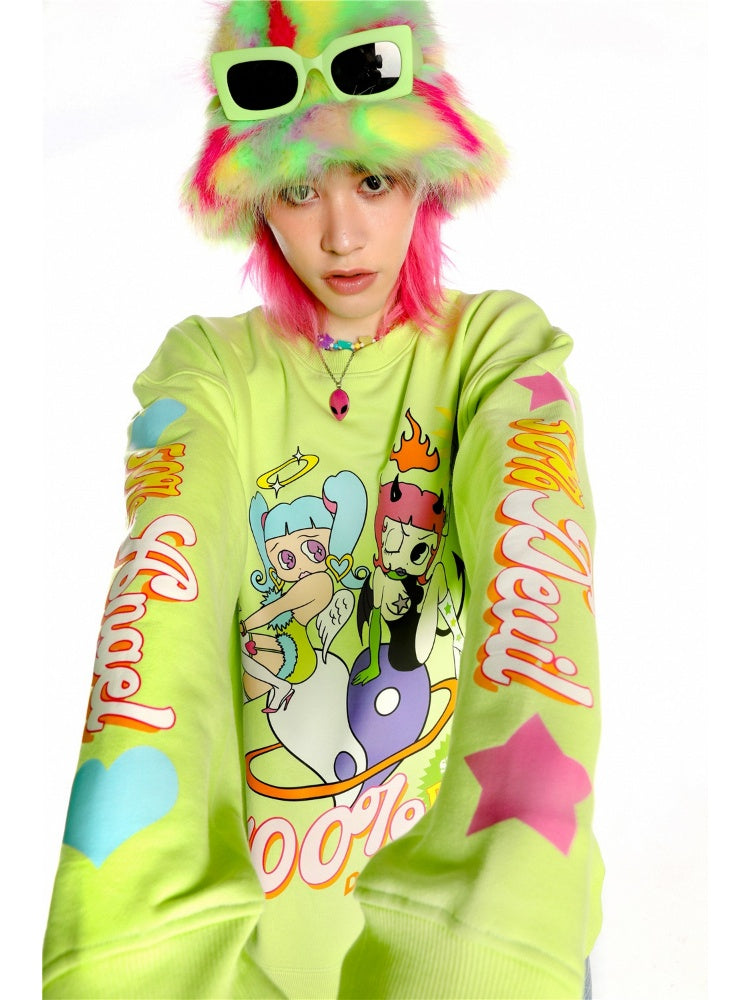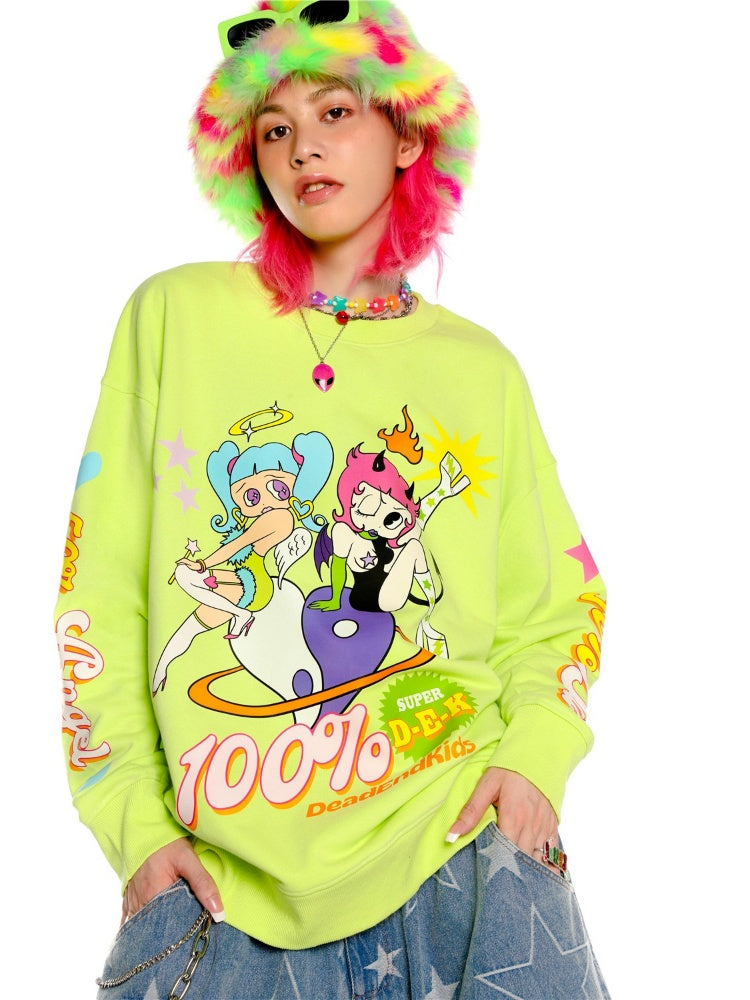 Y2K American Retro Angel & Devil Girl Print Loose Sweat / Bear Gummy Bag【s0000003888】