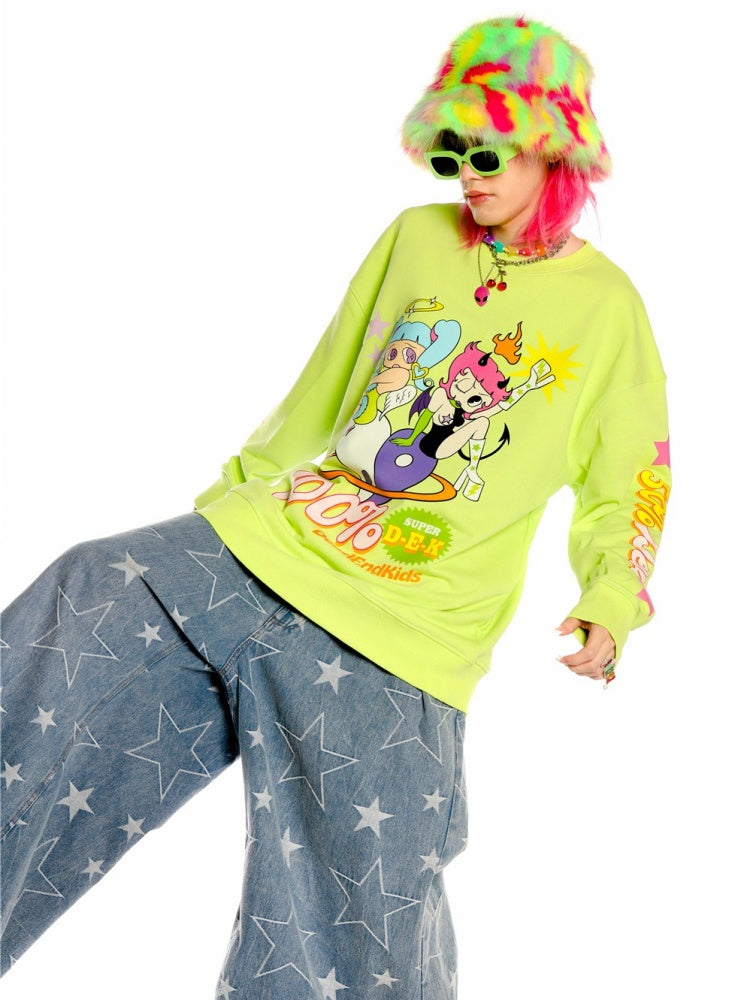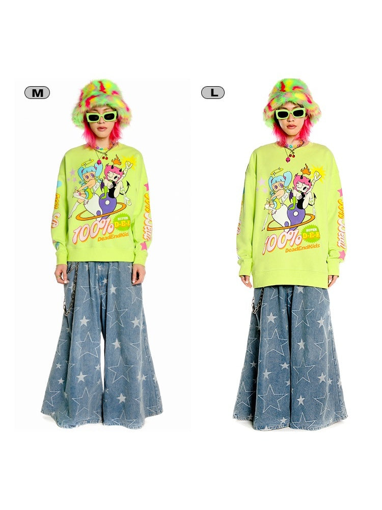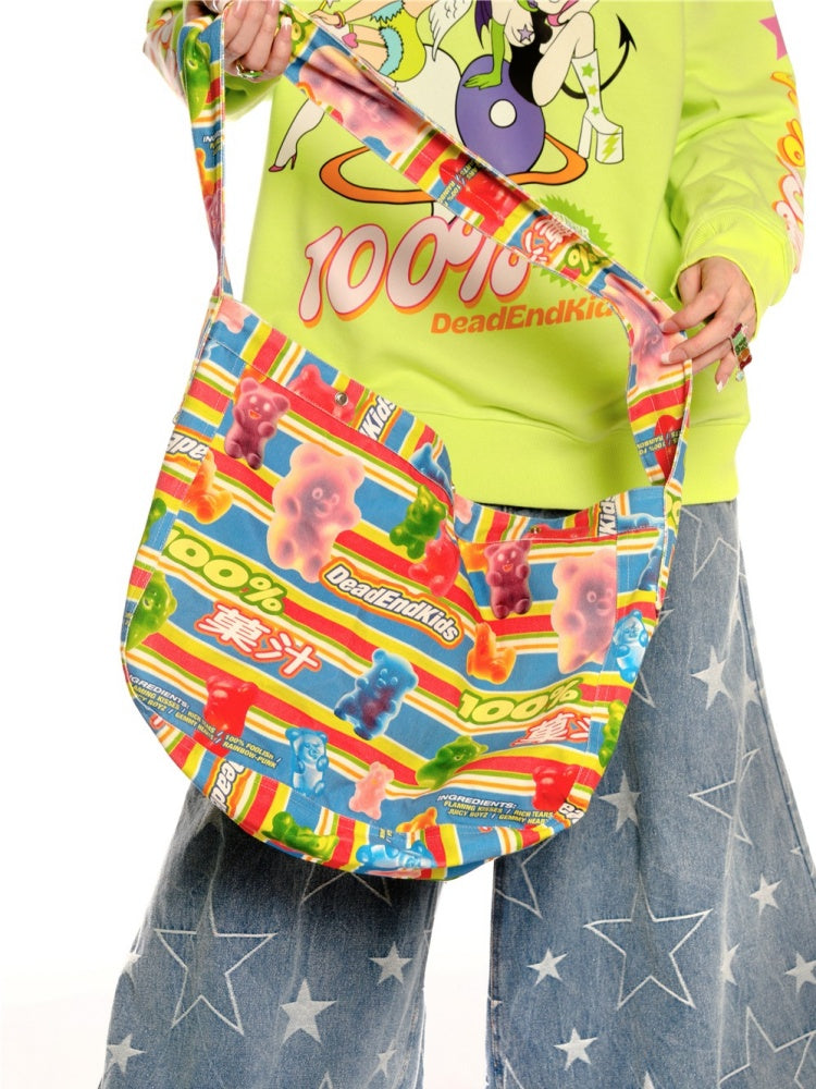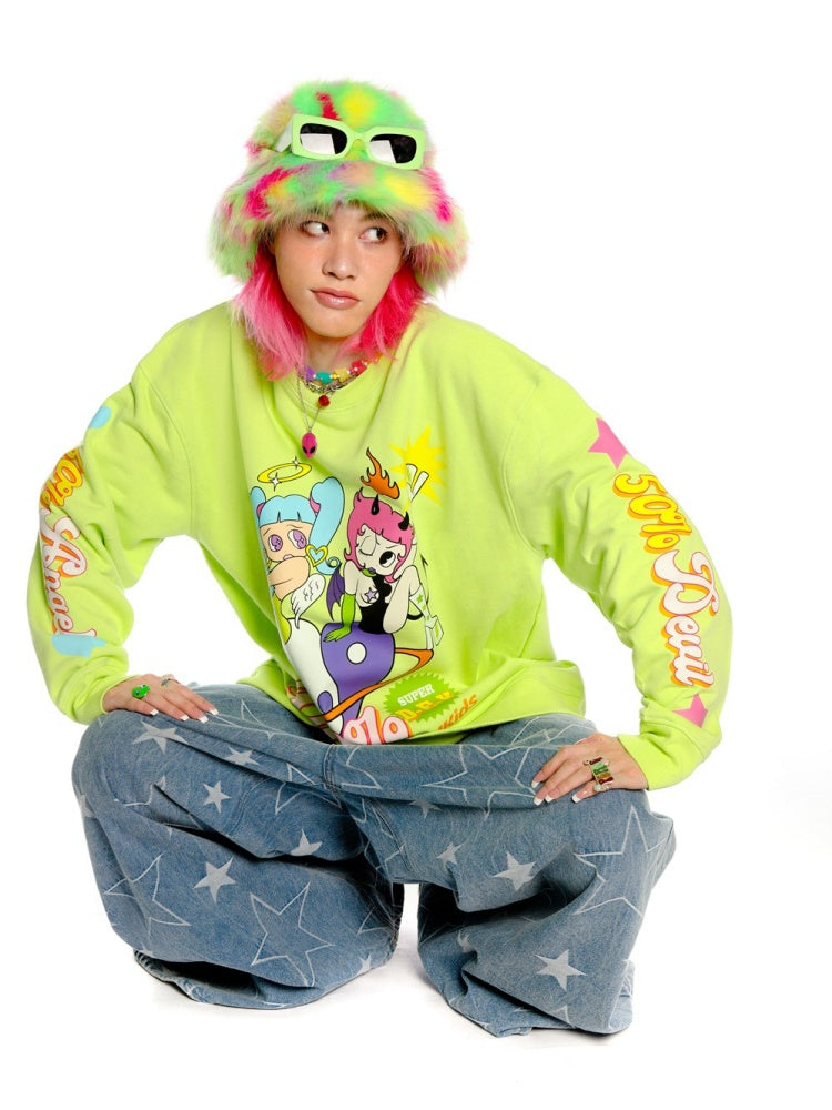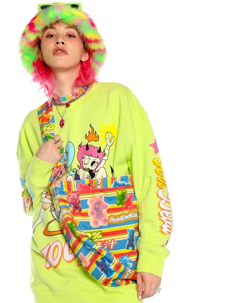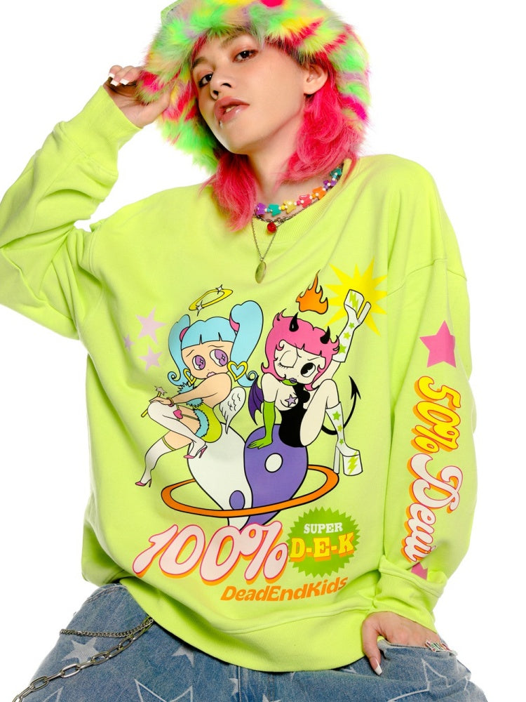 Y2K American Retro Angel & Devil Girl Print Loose Sweat / Bear Gummy Bag【s0000003888】