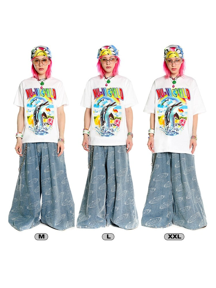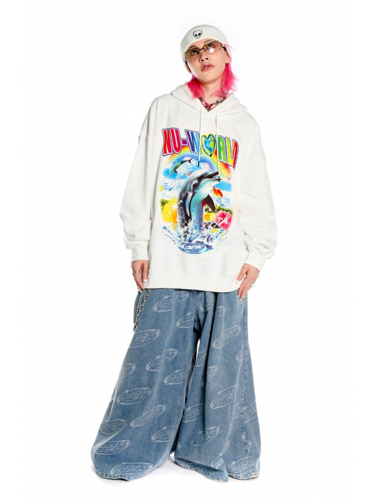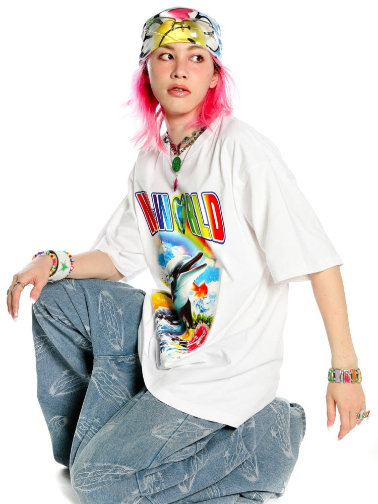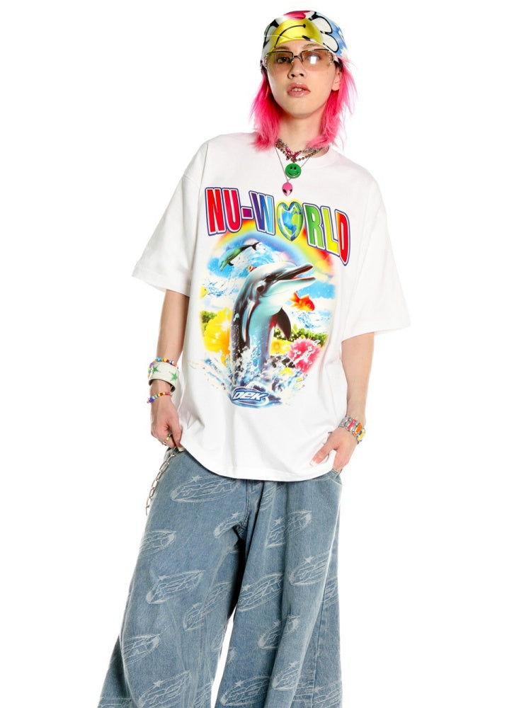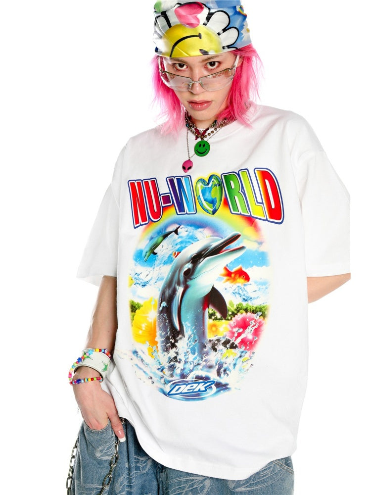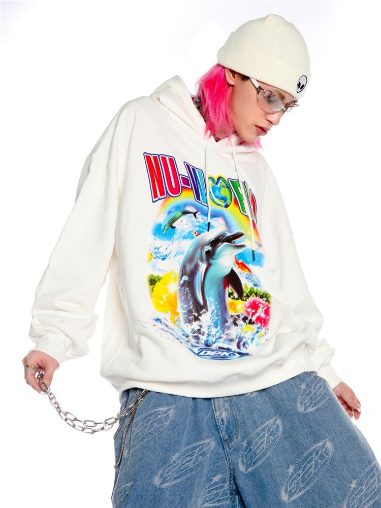 Y2K American Retro Dolphin Print Hoodie / T-Shirt【s0000003890】