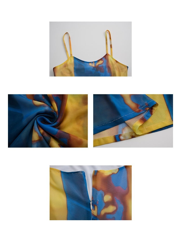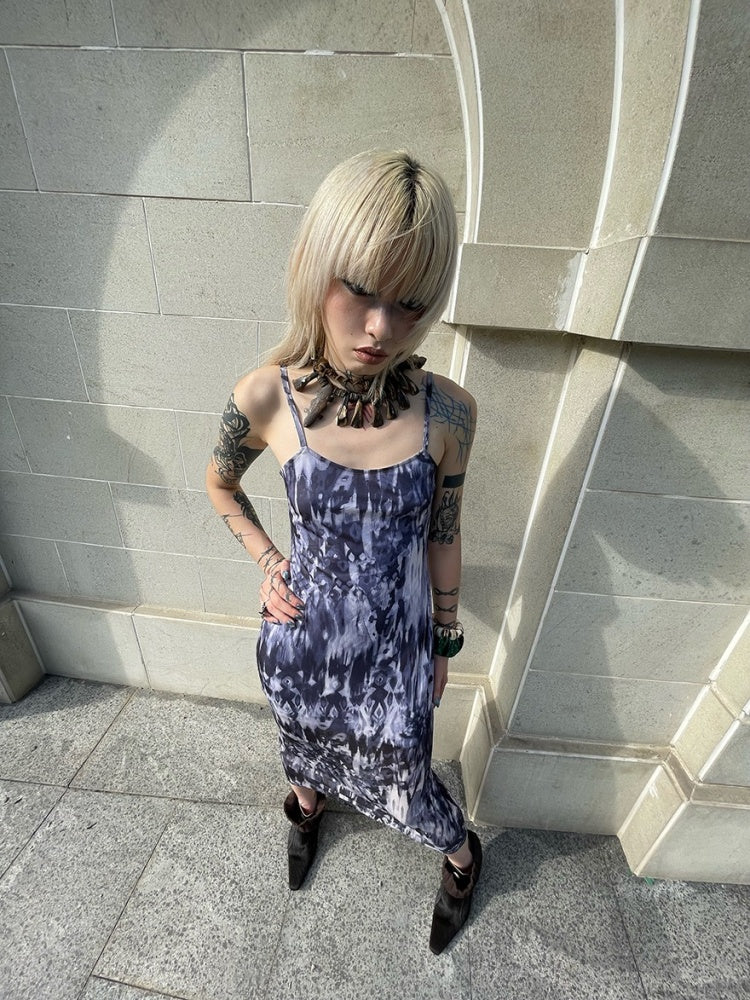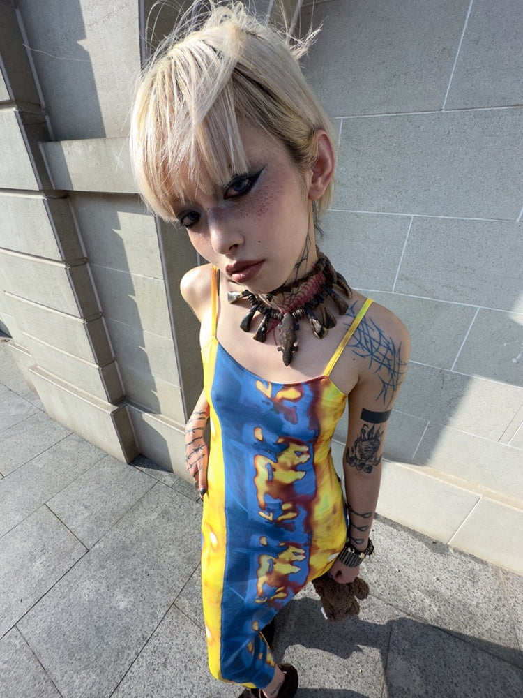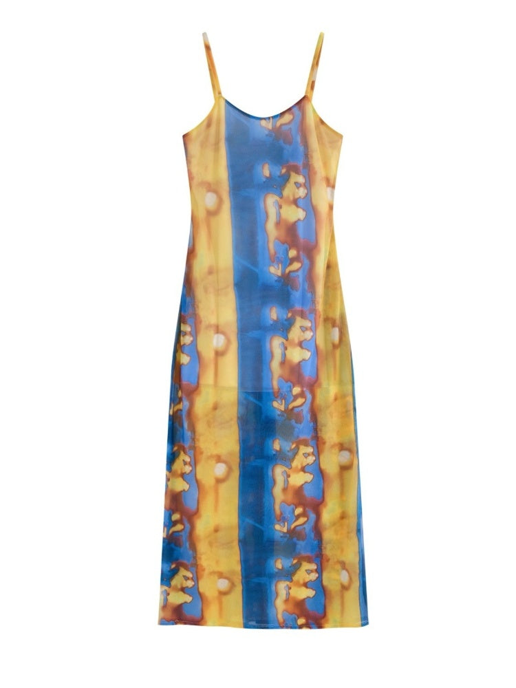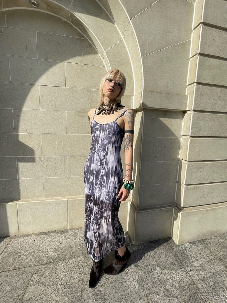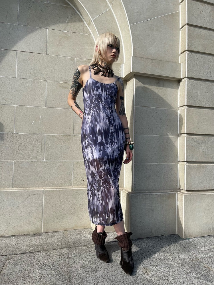Tribal Print Mesh See-Through Sexy Backless Camisole Dress【s0000003892】