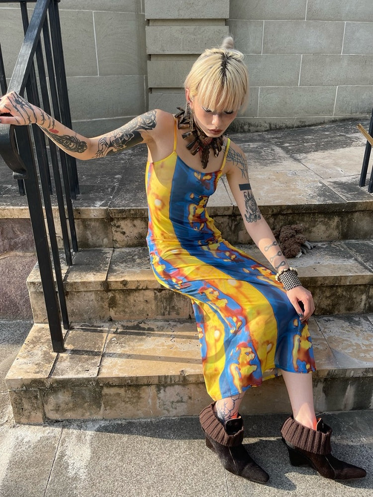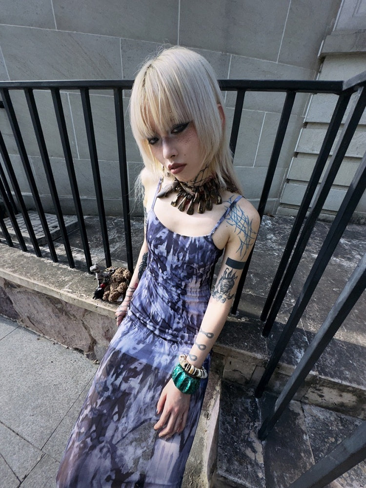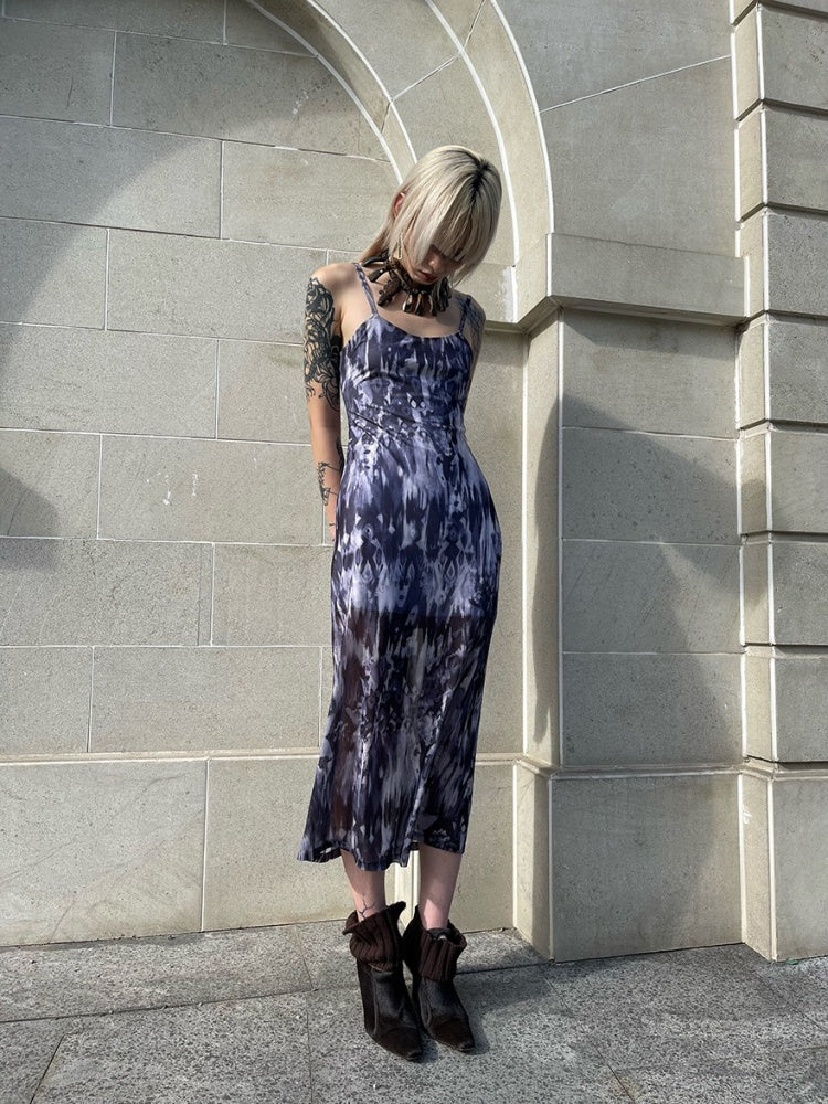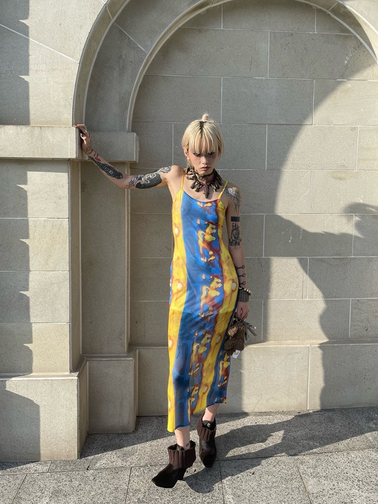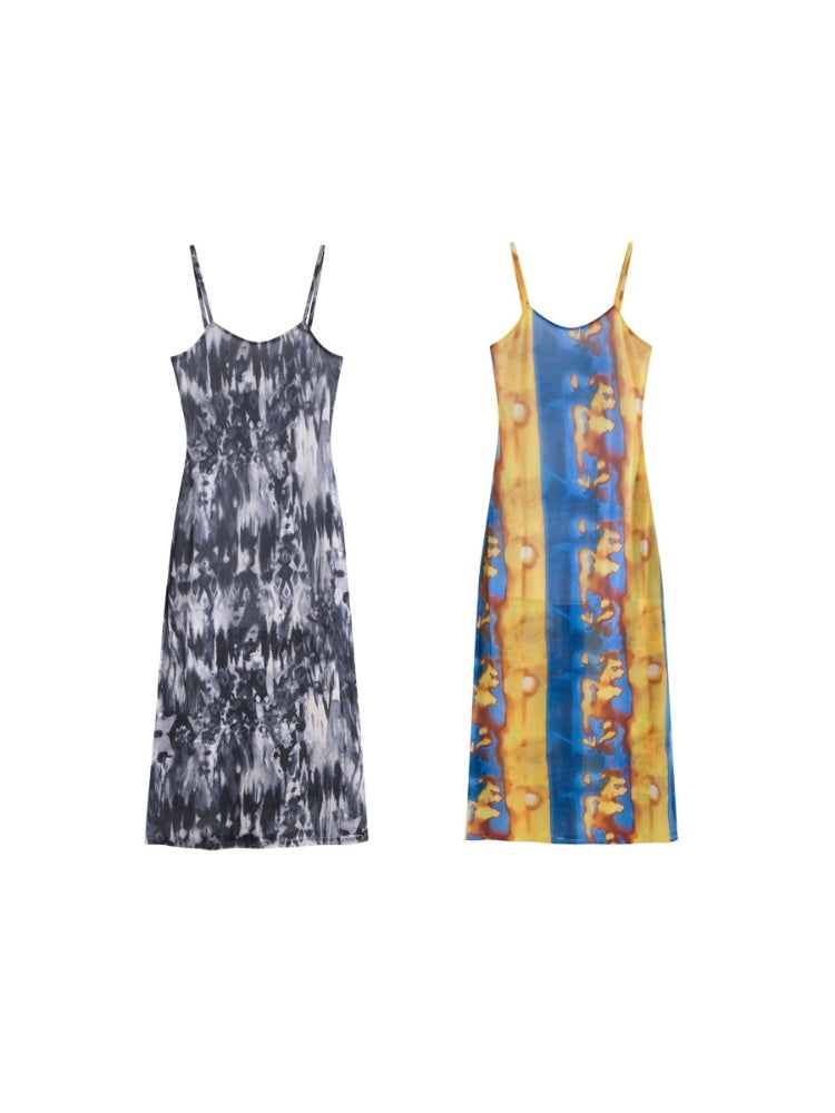 Tribal Print Mesh See-Through Sexy Backless Camisole Dress【s0000003892】