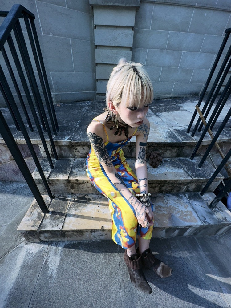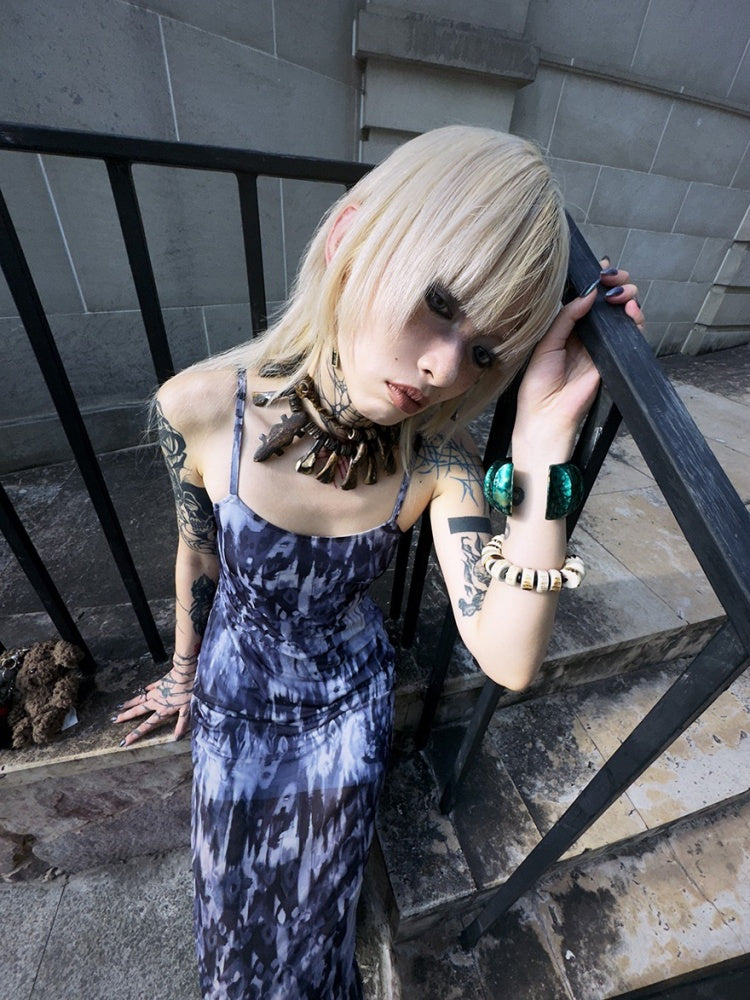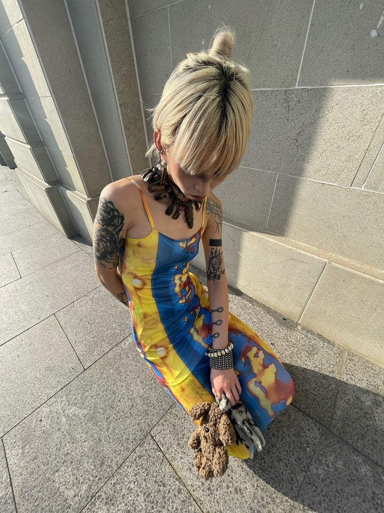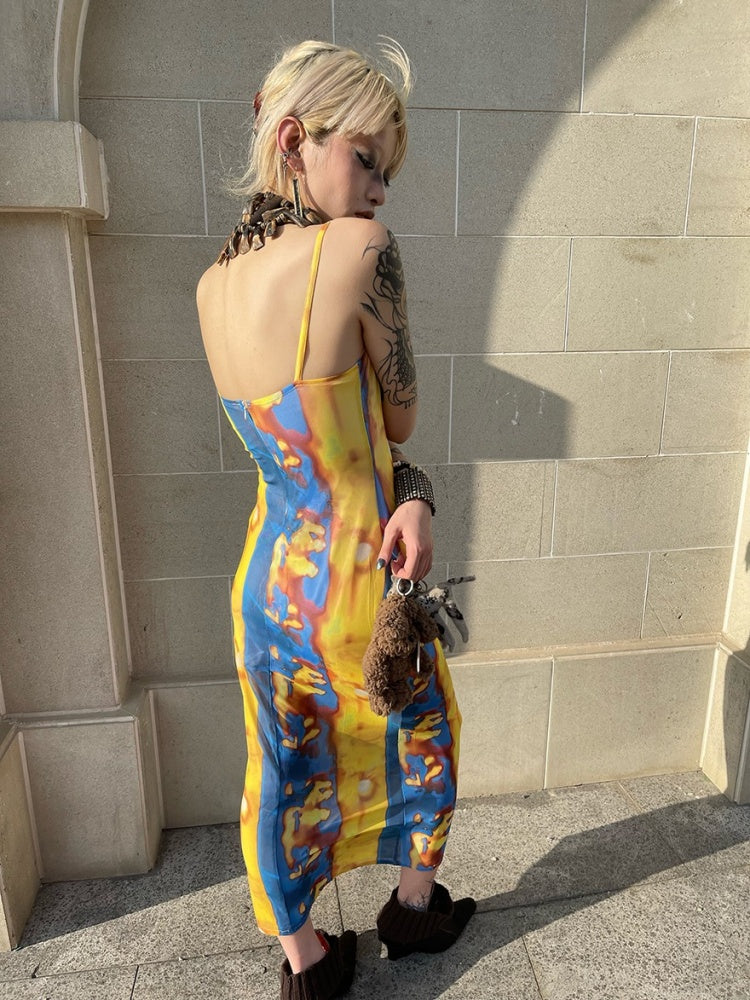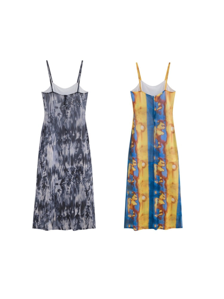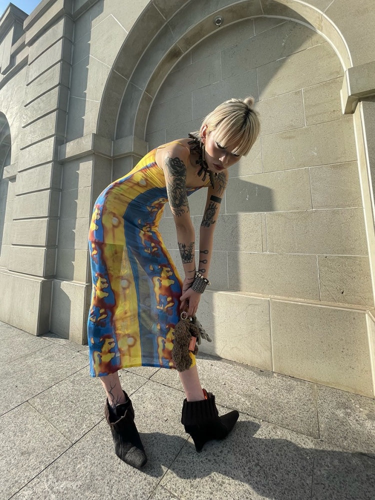 Tribal Print Mesh See-Through Sexy Backless Camisole Dress【s0000003892】