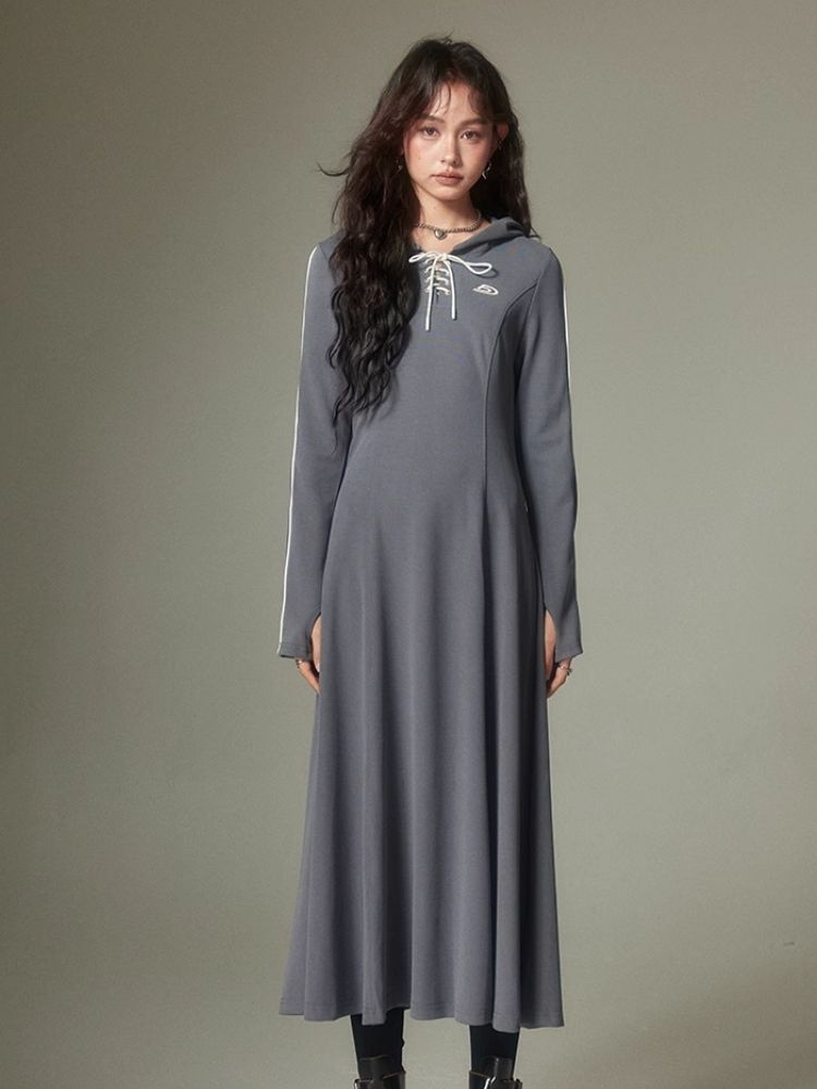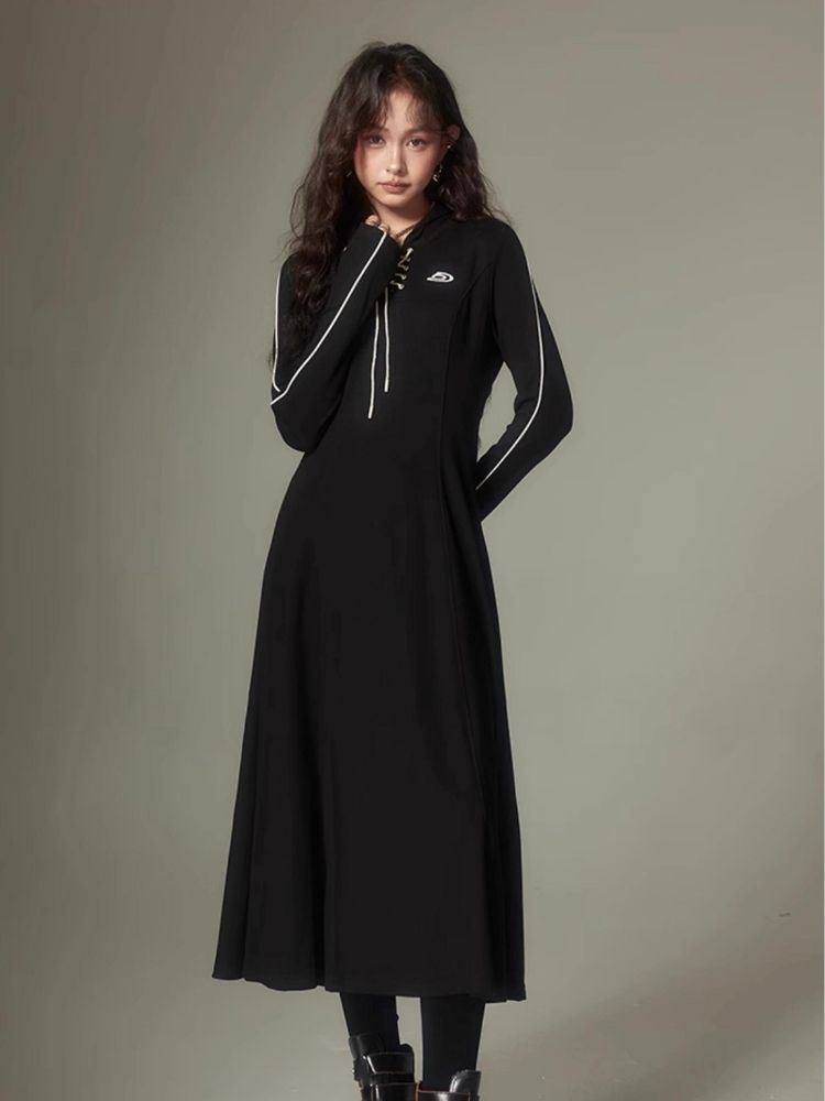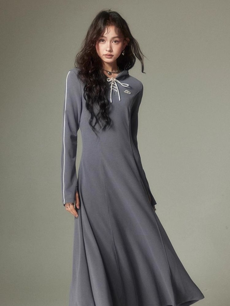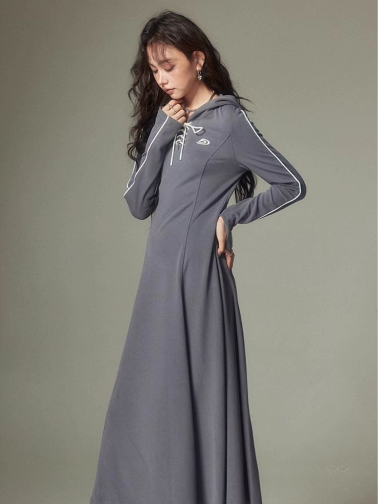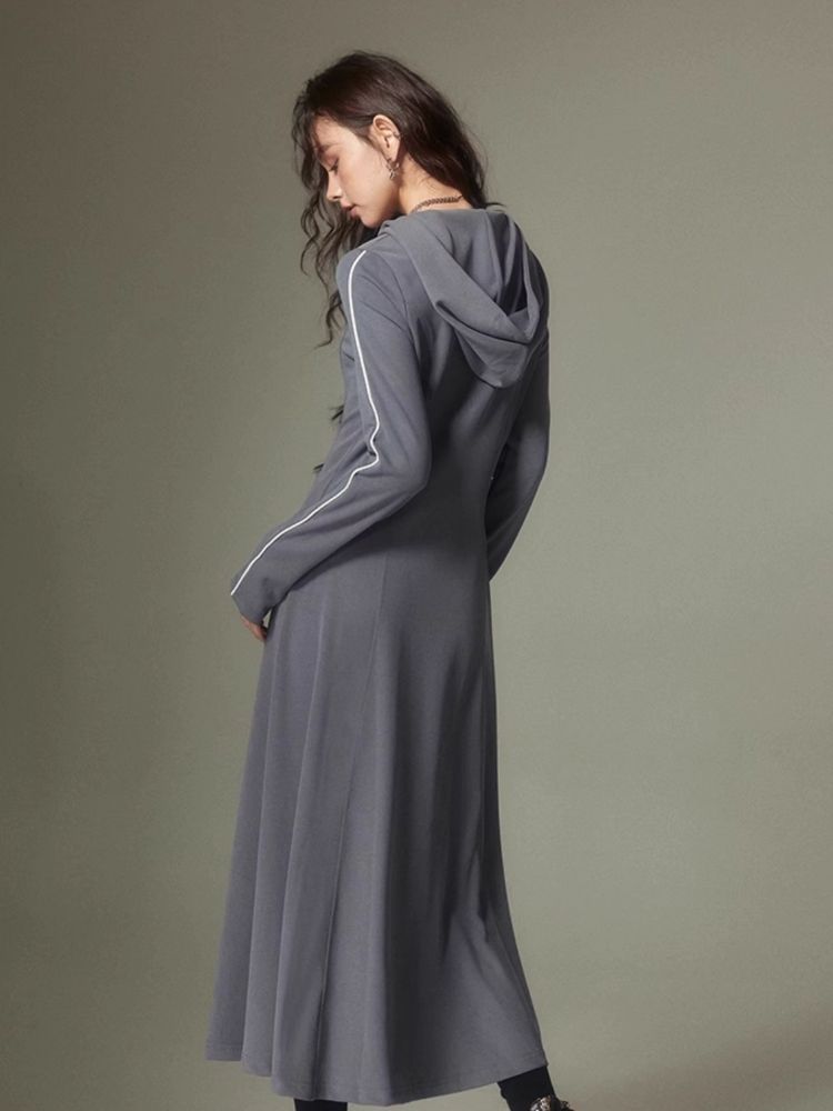 Sports Style Hooded Sweatshirt Dress【s0000003953】