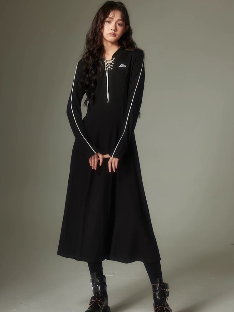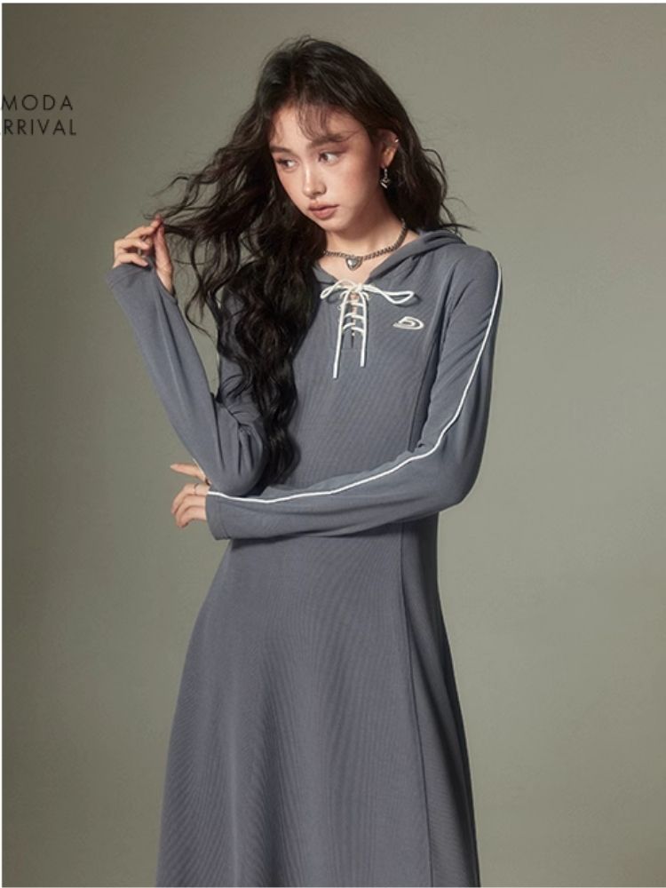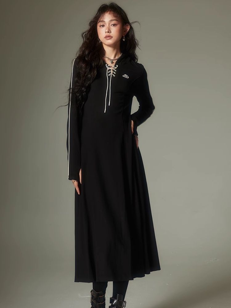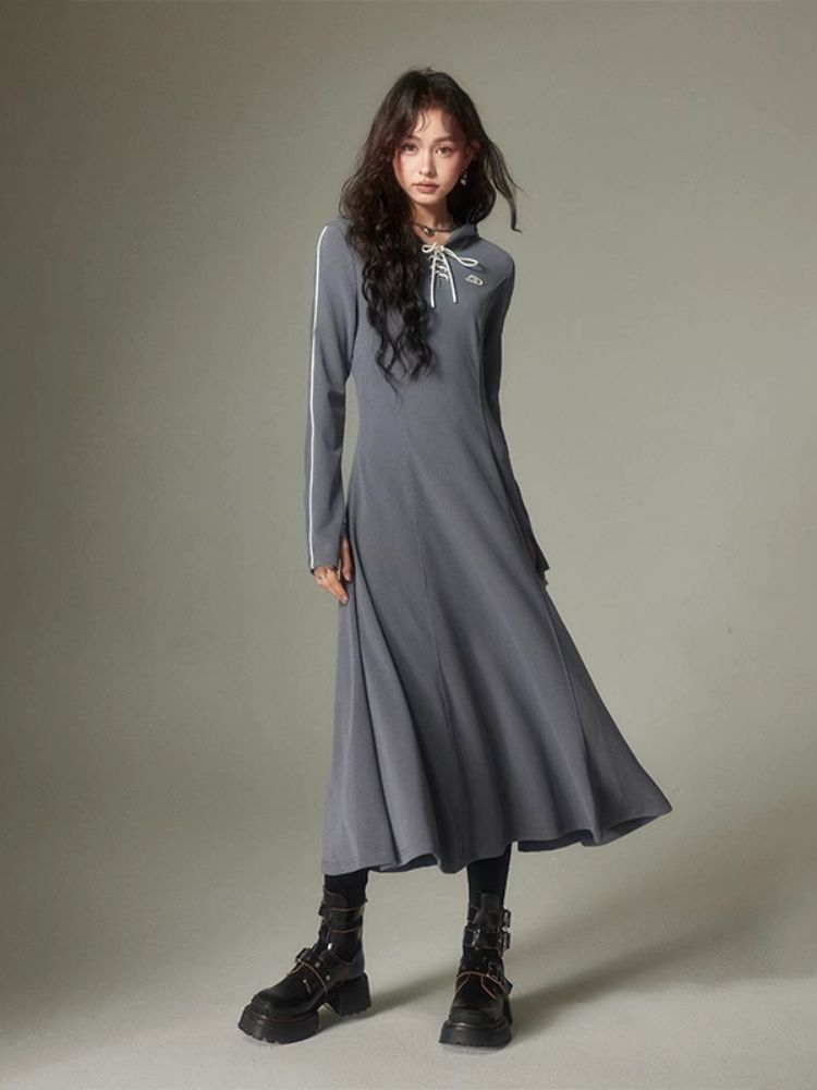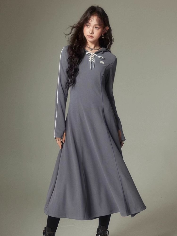 Sports Style Hooded Sweatshirt Dress【s0000003953】