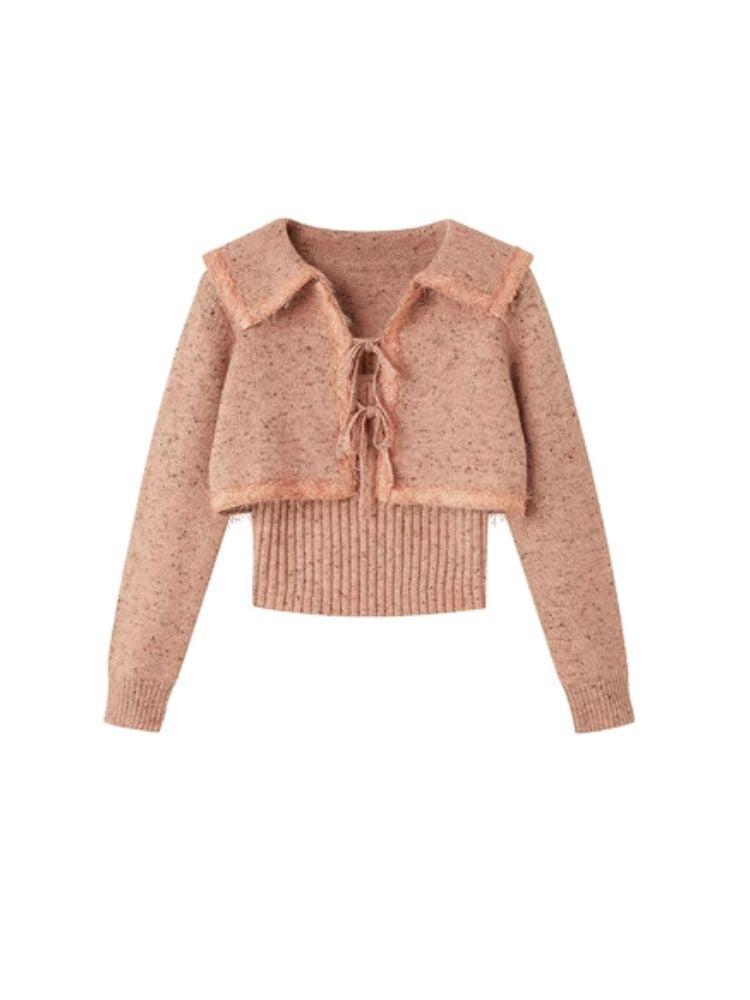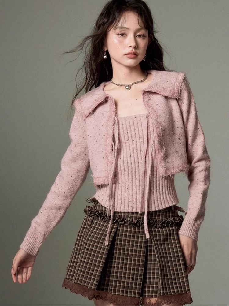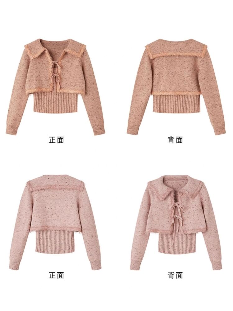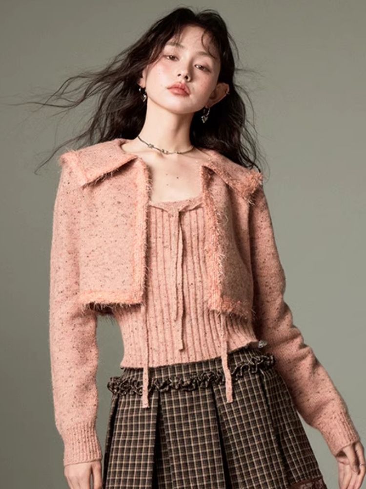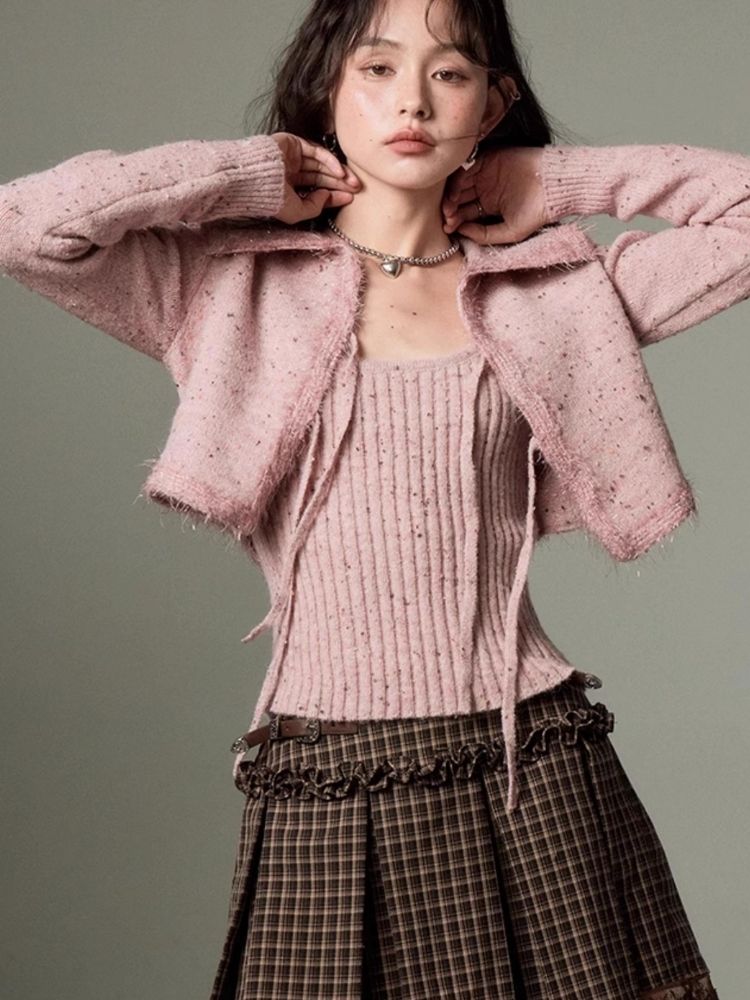 Elegant slim knit cardigan + vest 2-piece set【s0000003959】