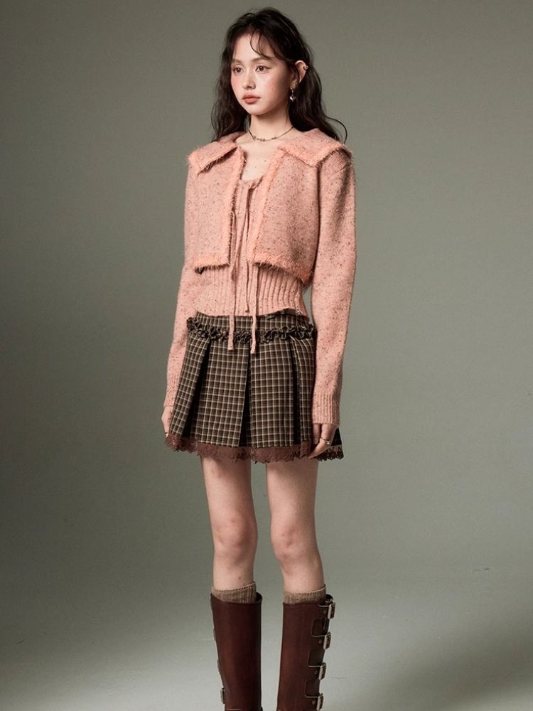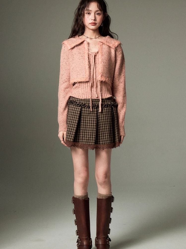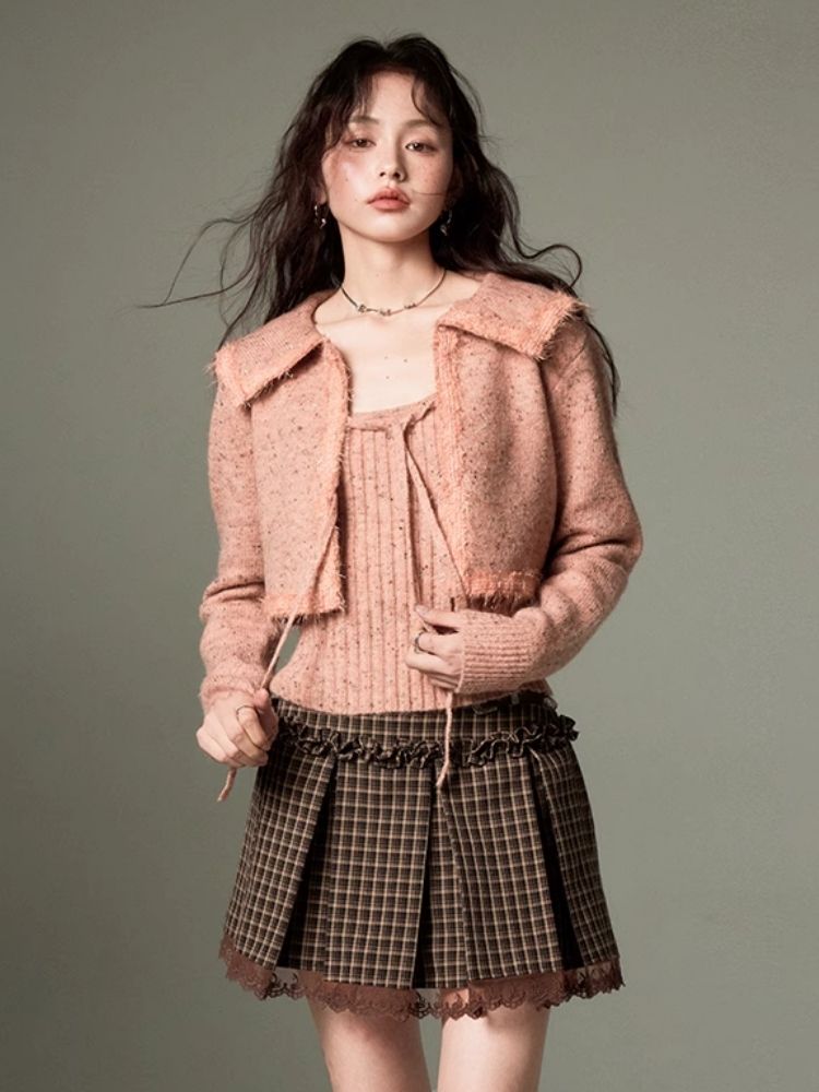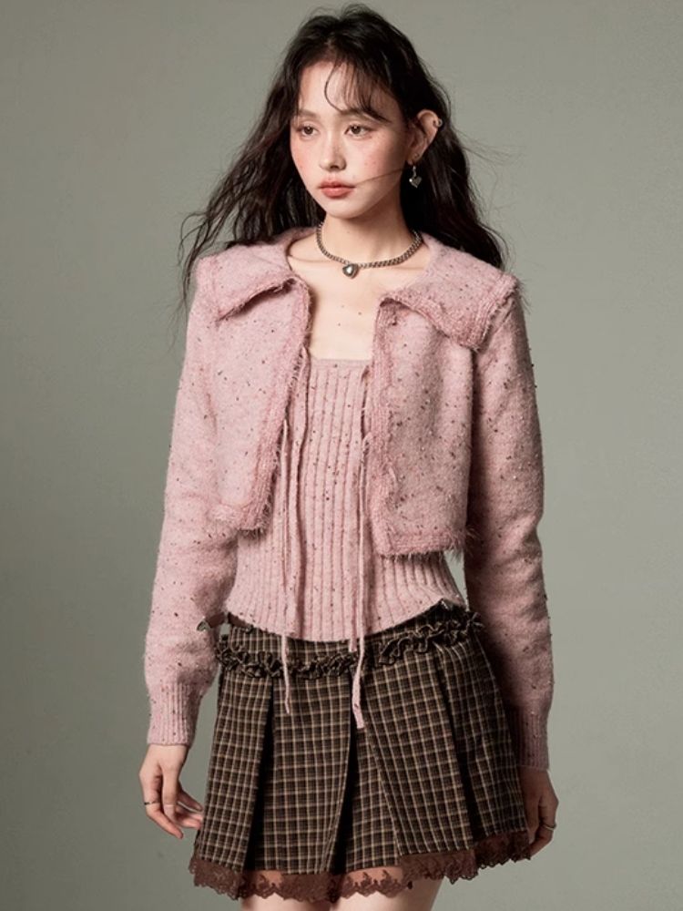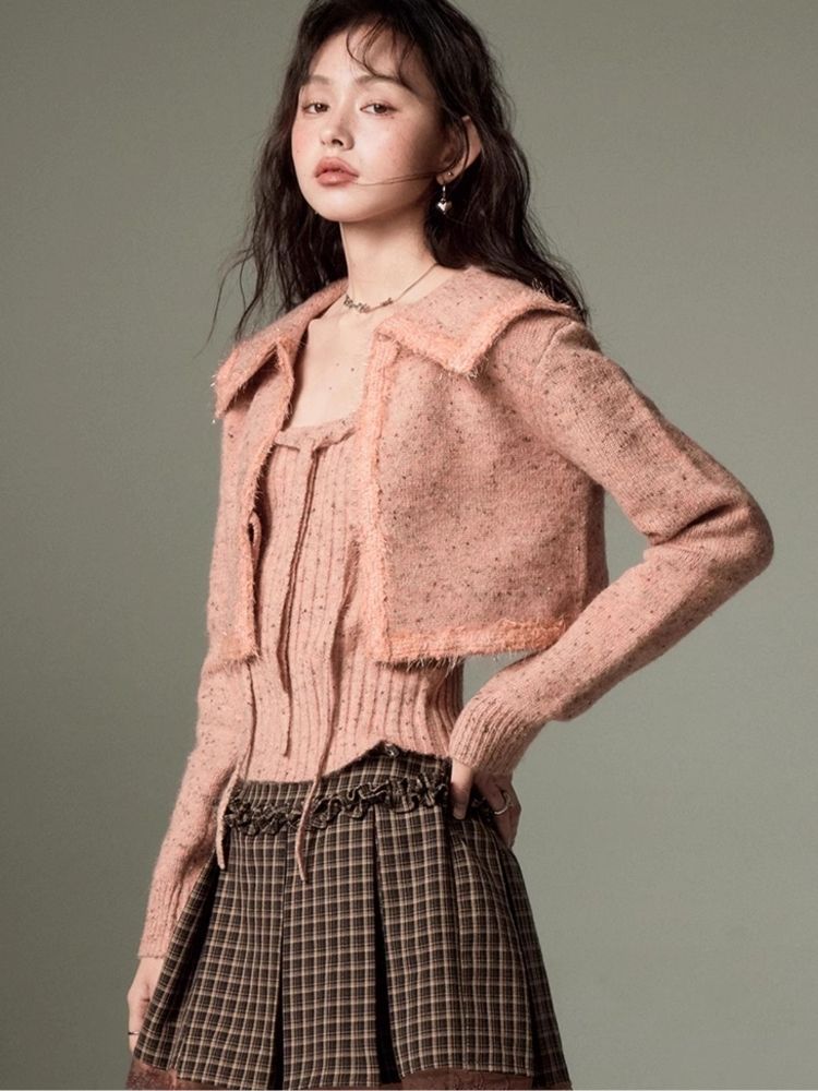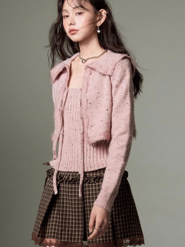 Elegant slim knit cardigan + vest 2-piece set【s0000003959】
