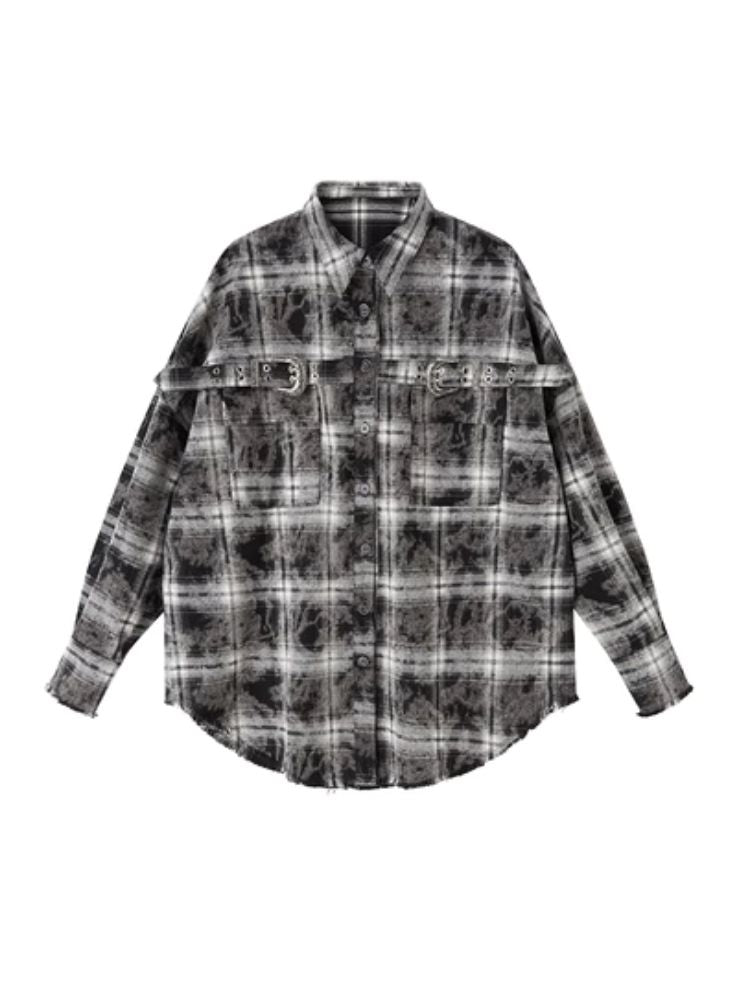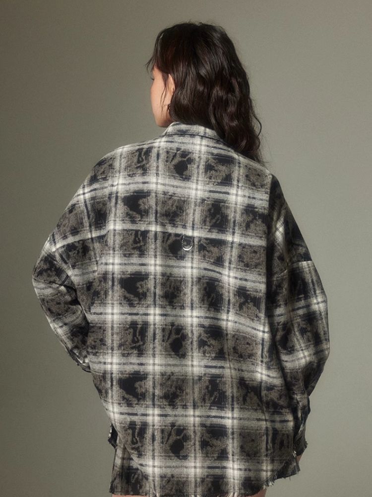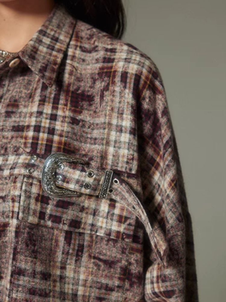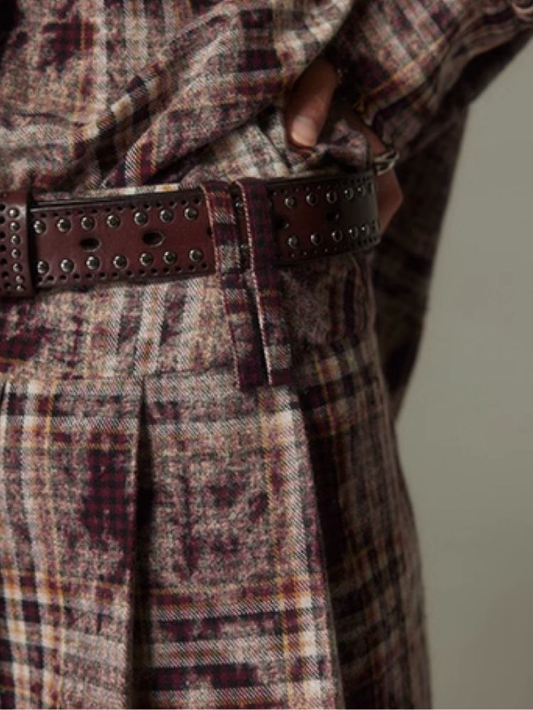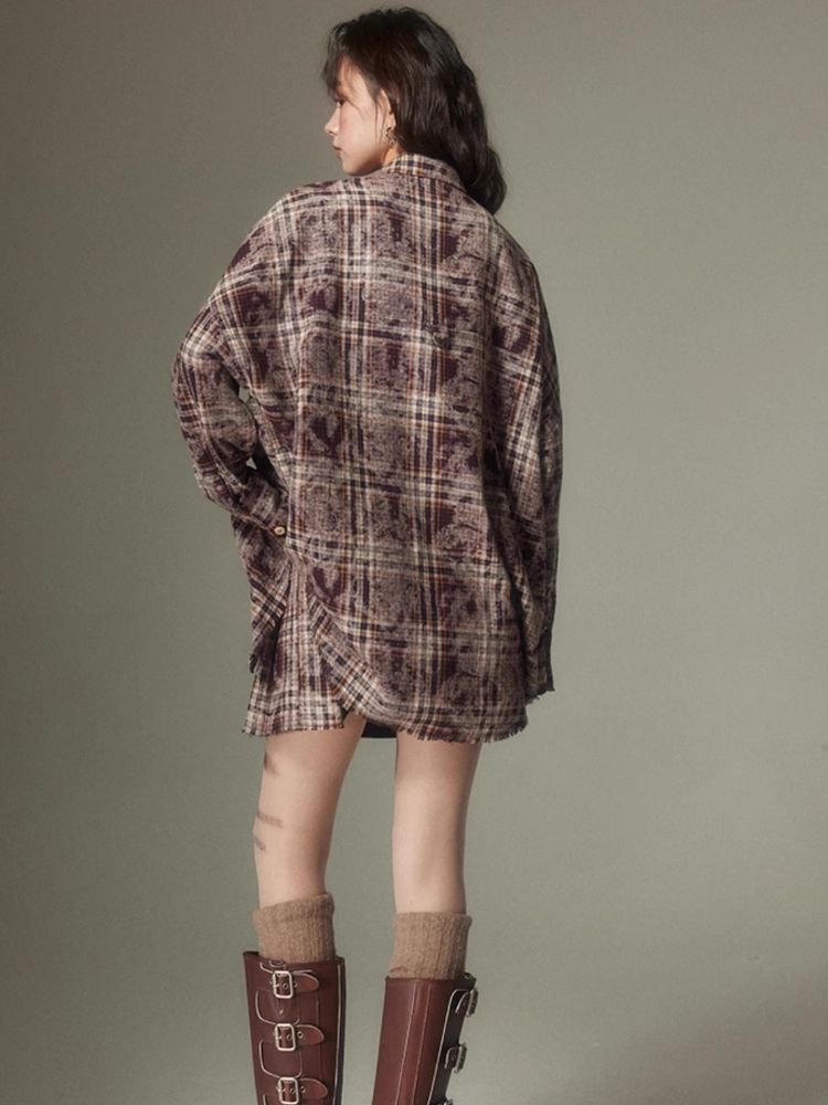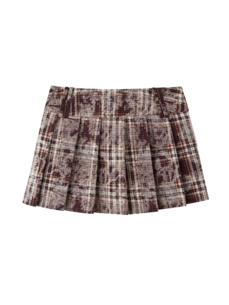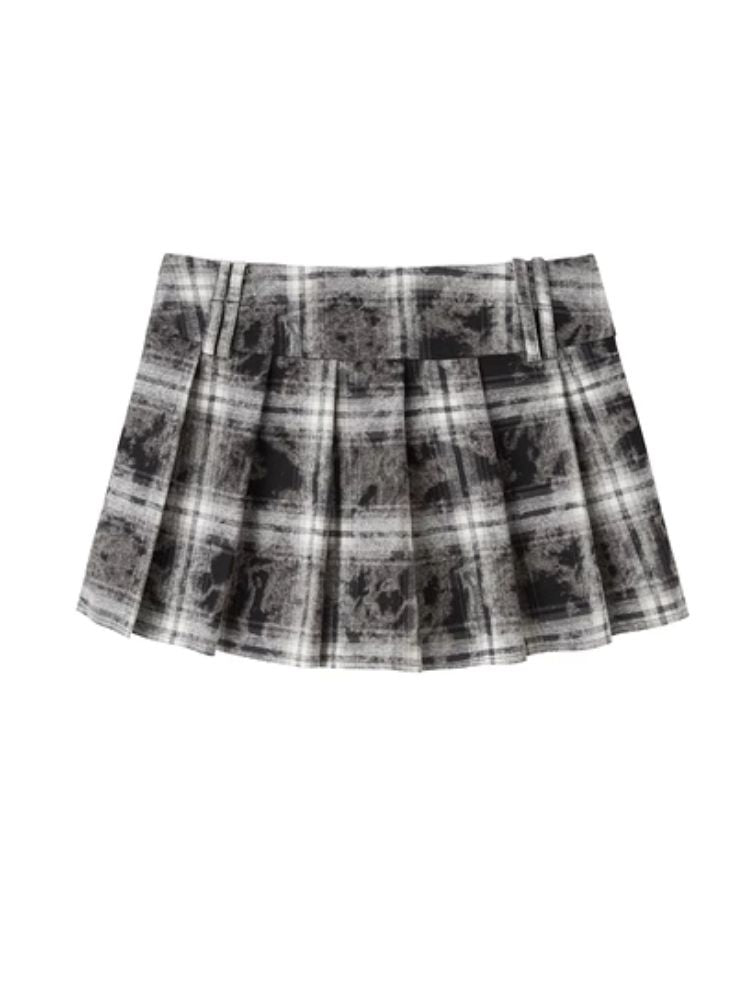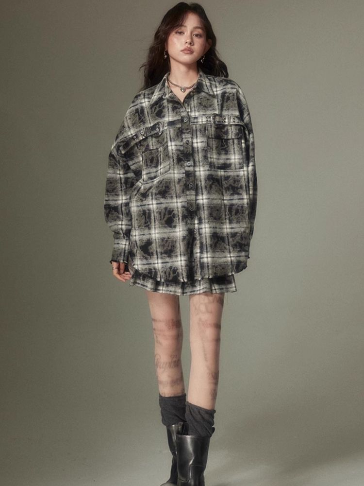 Contrast plaid shirt + pleated skirt【s0000003967】