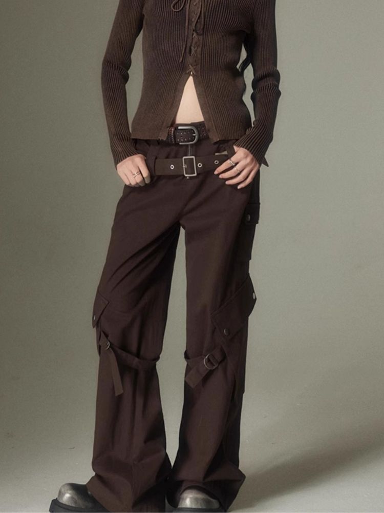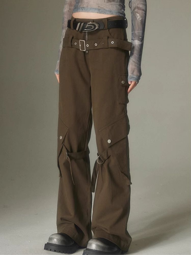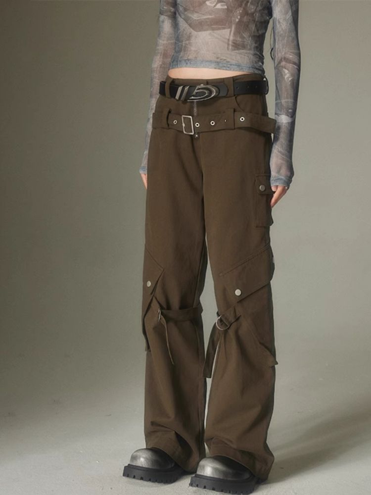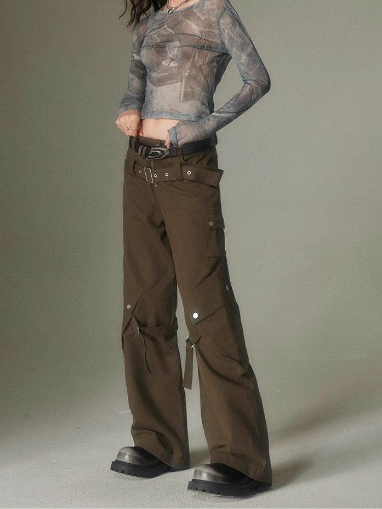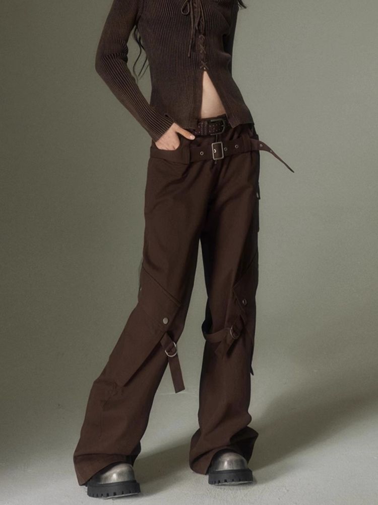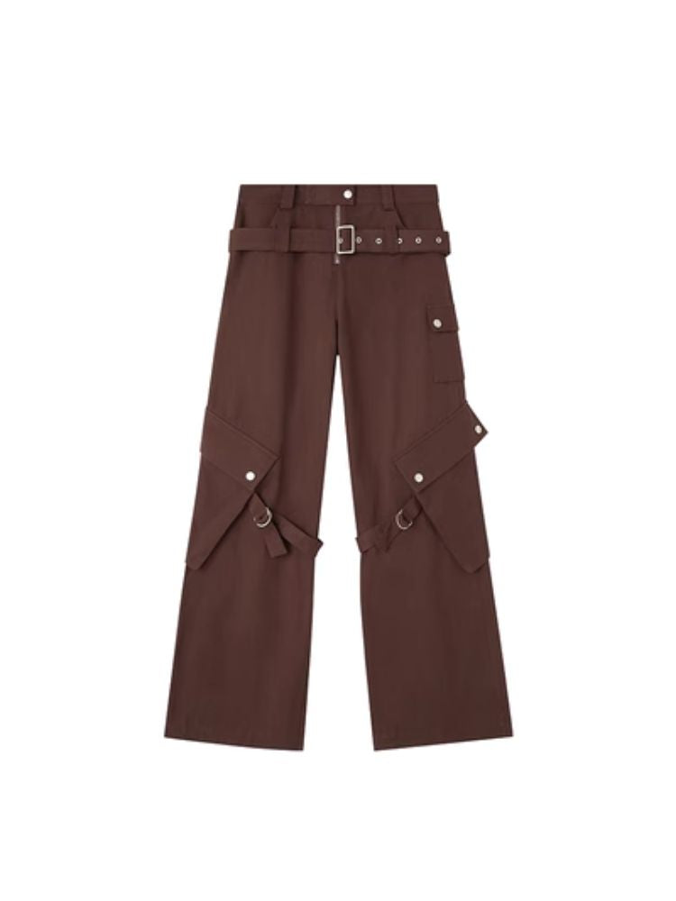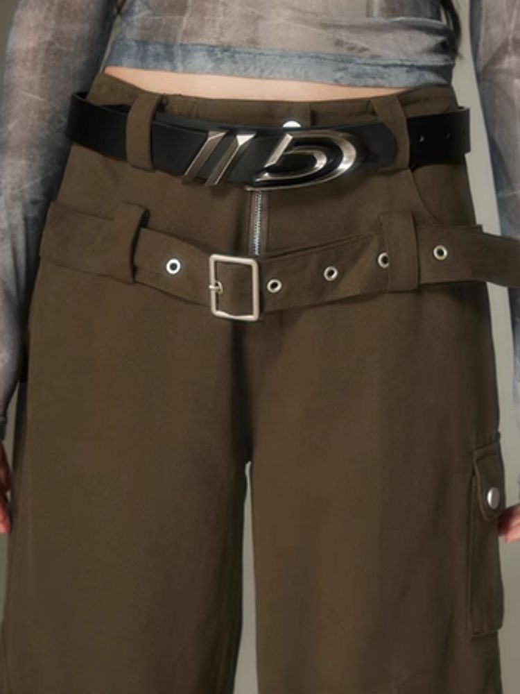 Double belt loose straight wide leg pants【s0000003975】