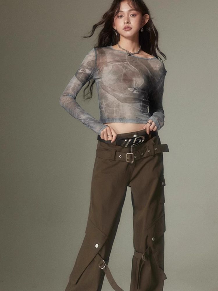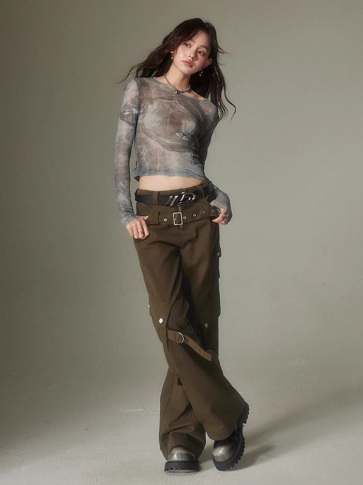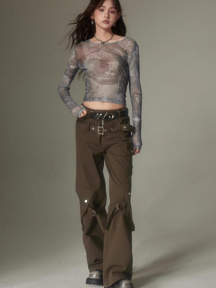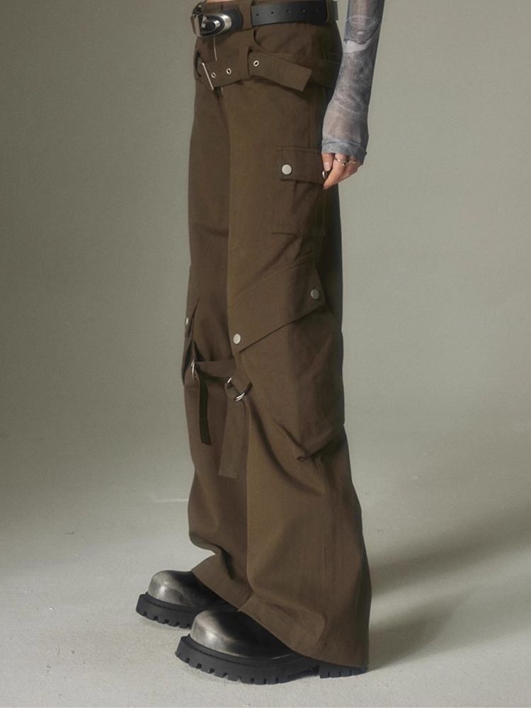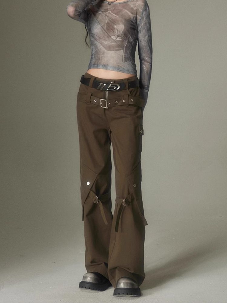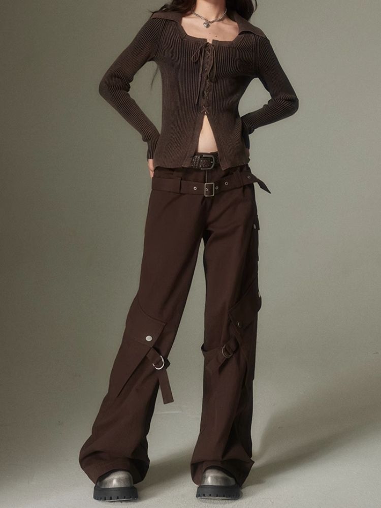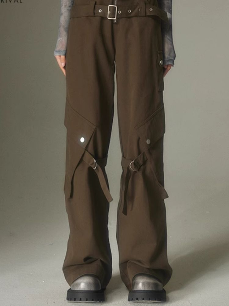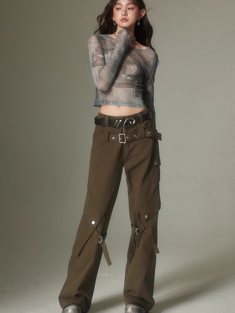Double belt loose straight wide leg pants【s0000003975】