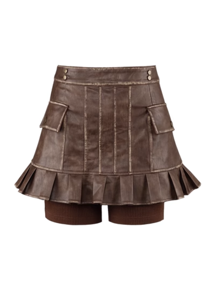 Retro Lace-Up Leather Pleats Blouse&Culottes【s0000004011】