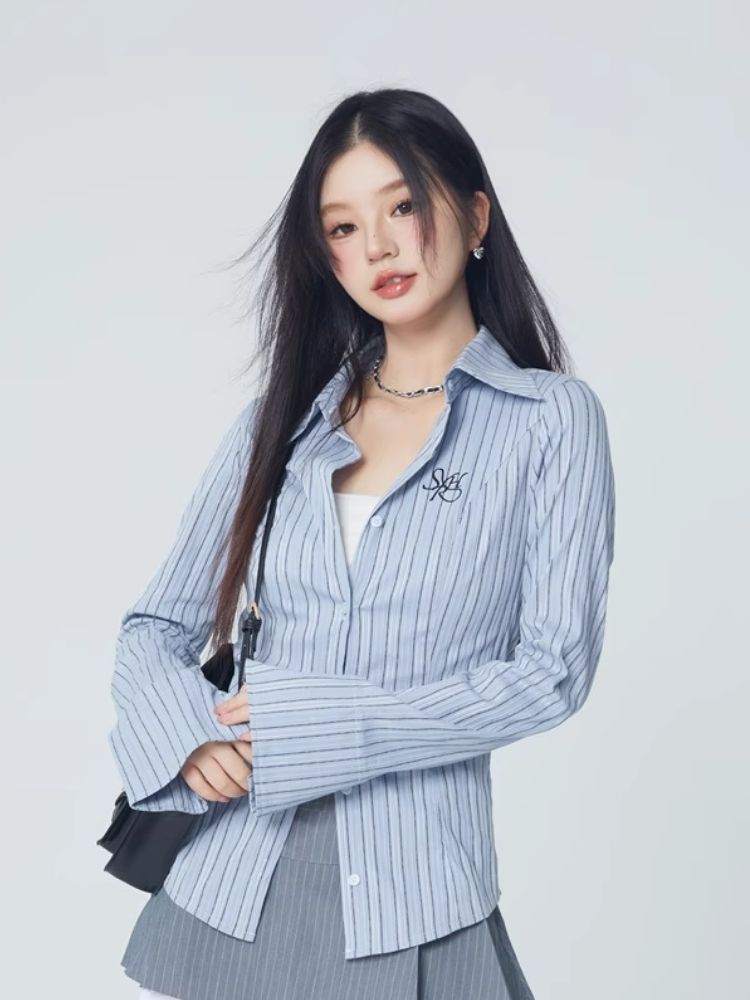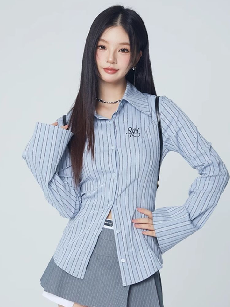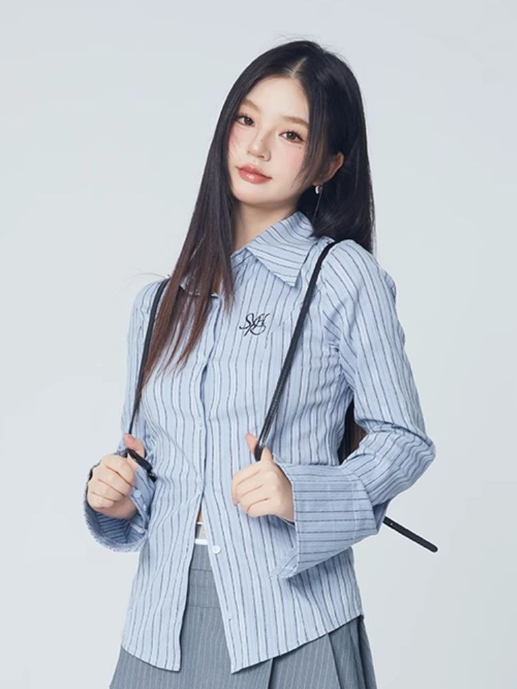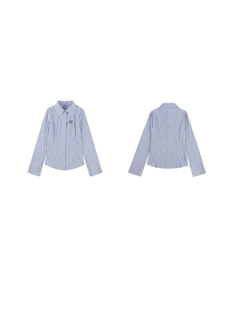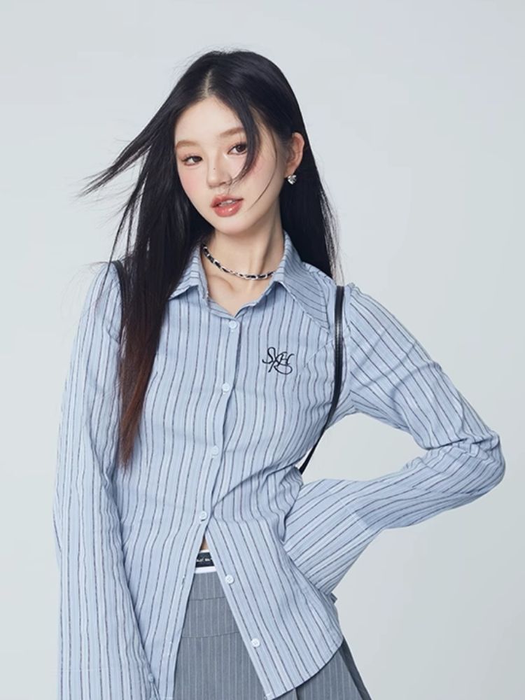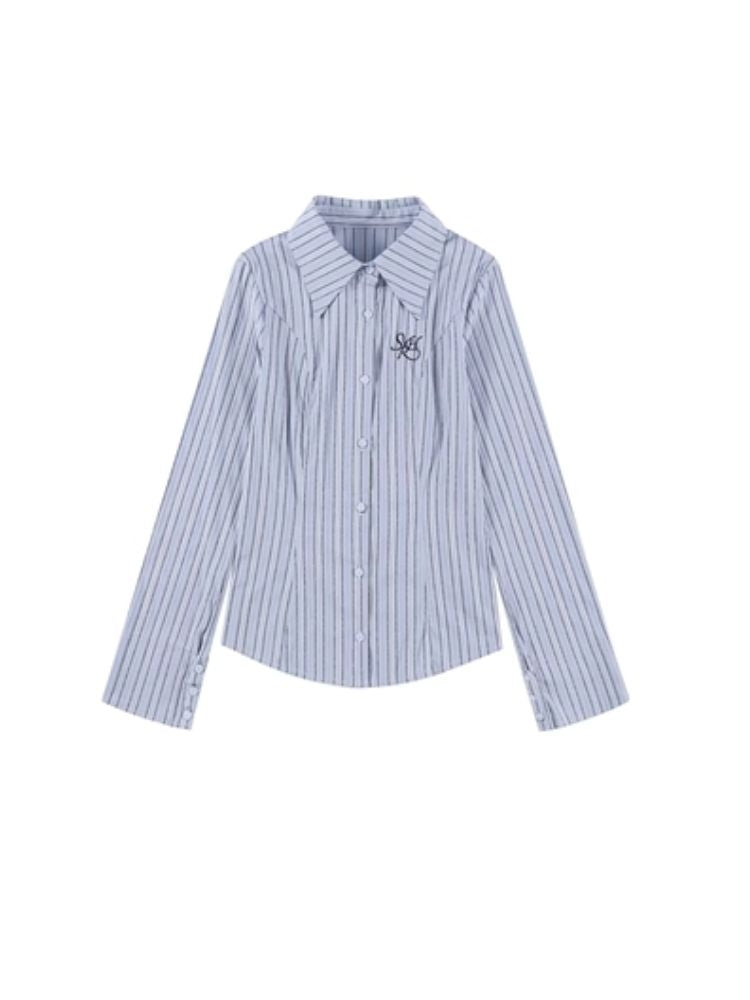 Embroidered logo stripe slim-waist shirt【s0000004074】
