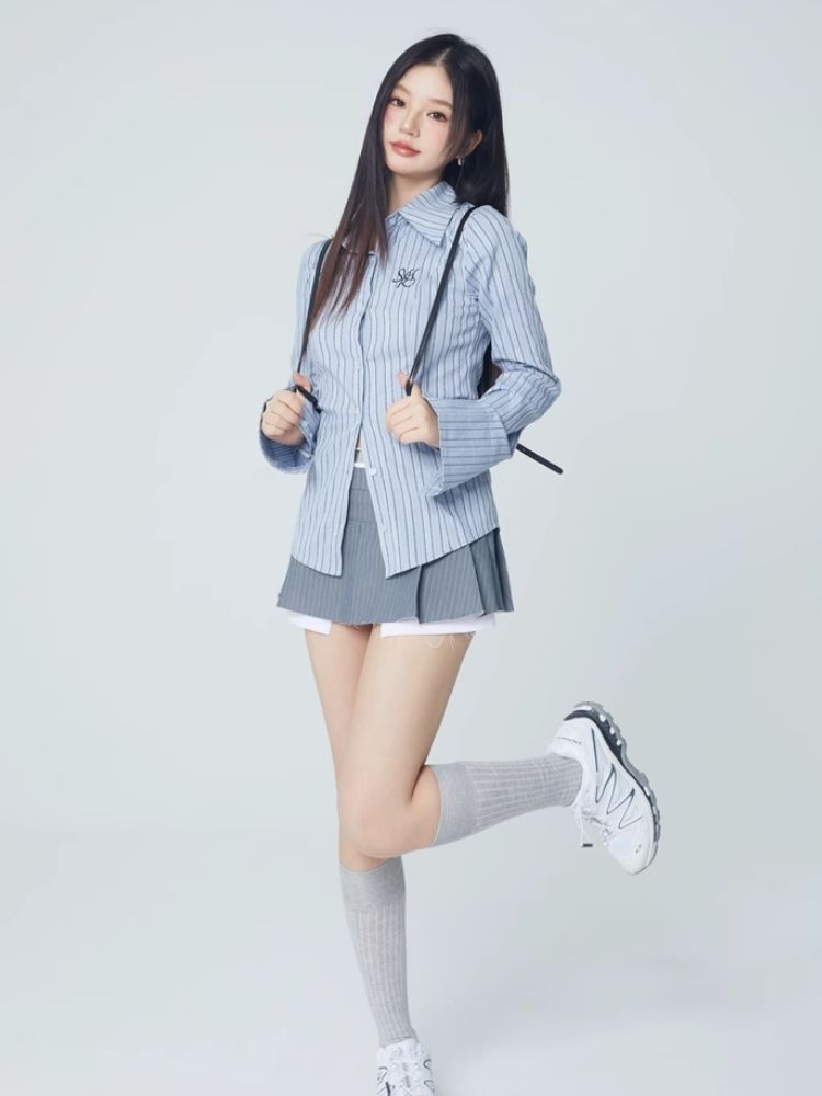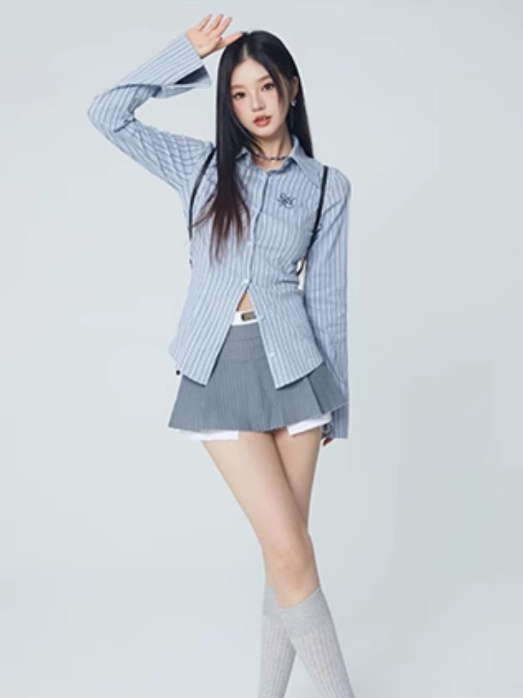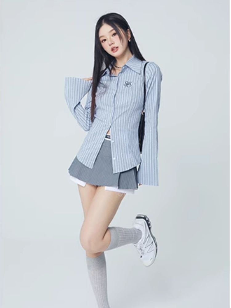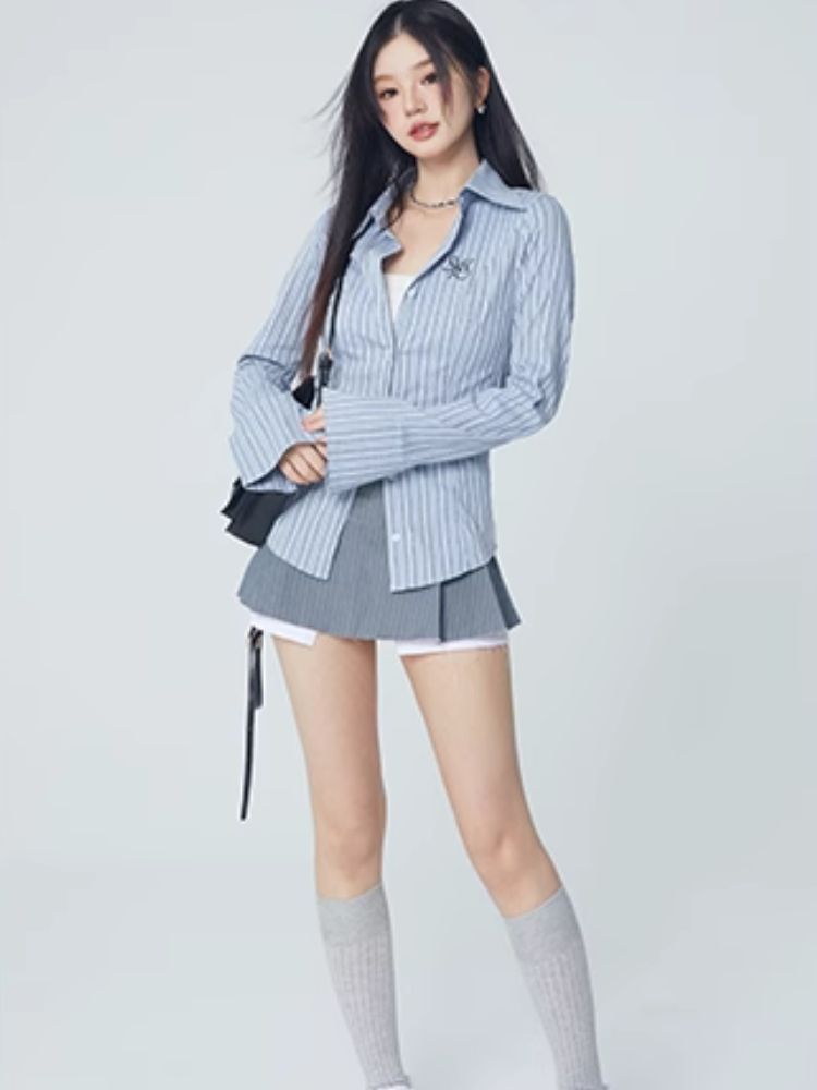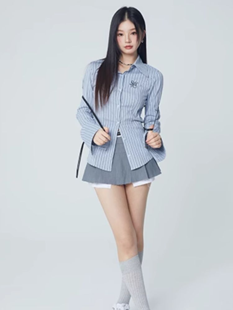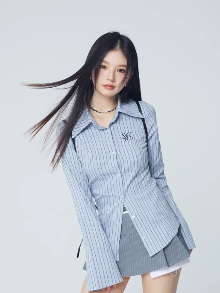 Embroidered logo stripe slim-waist shirt【s0000004074】