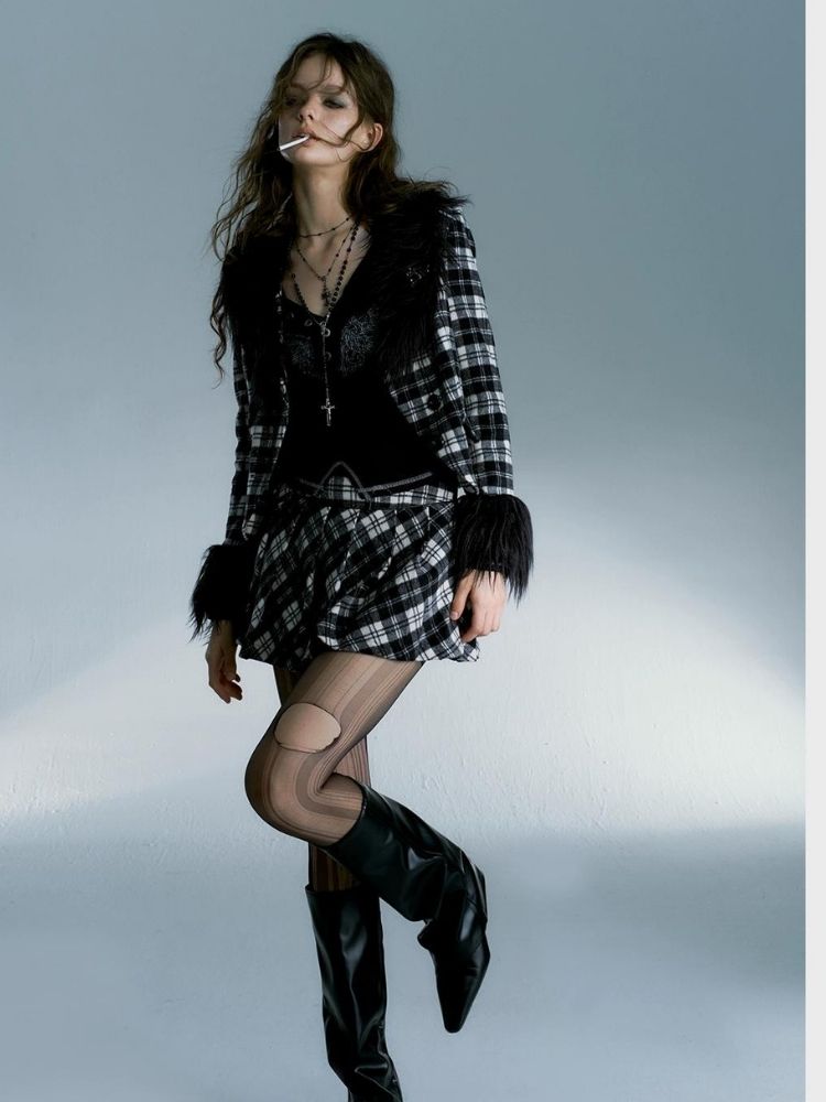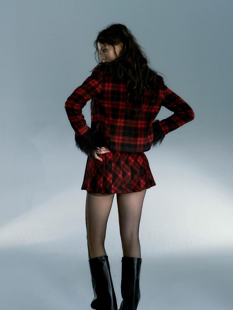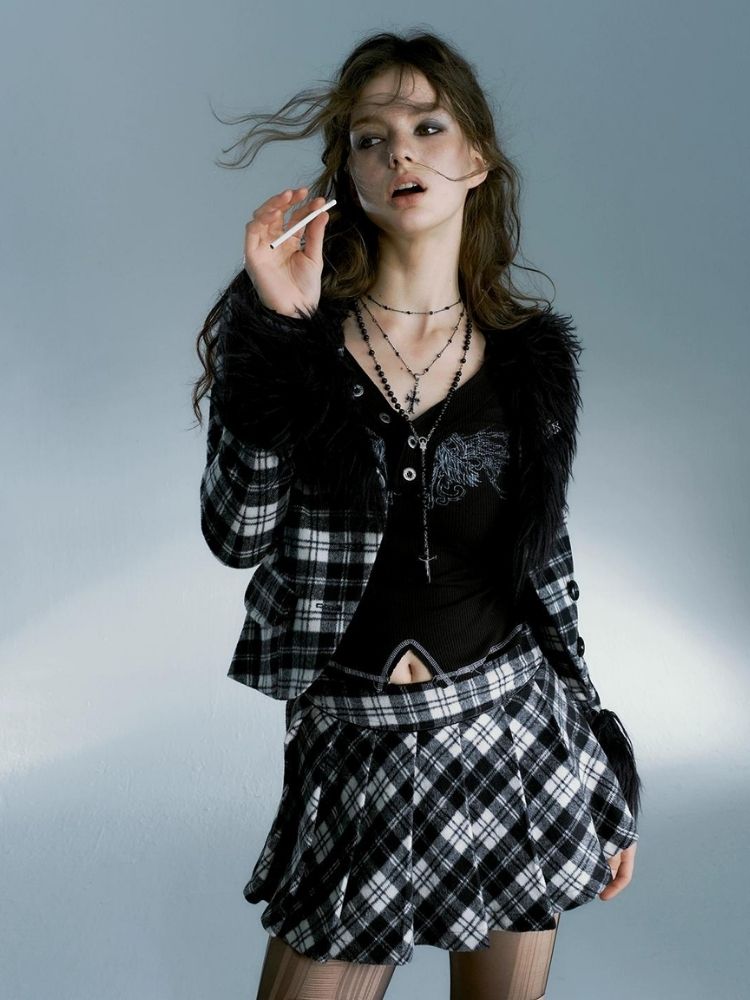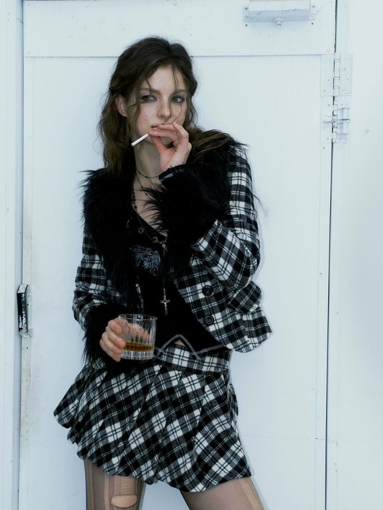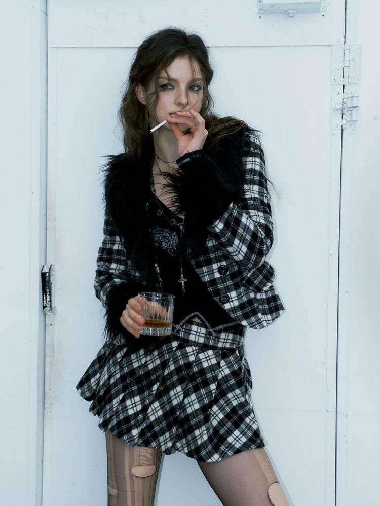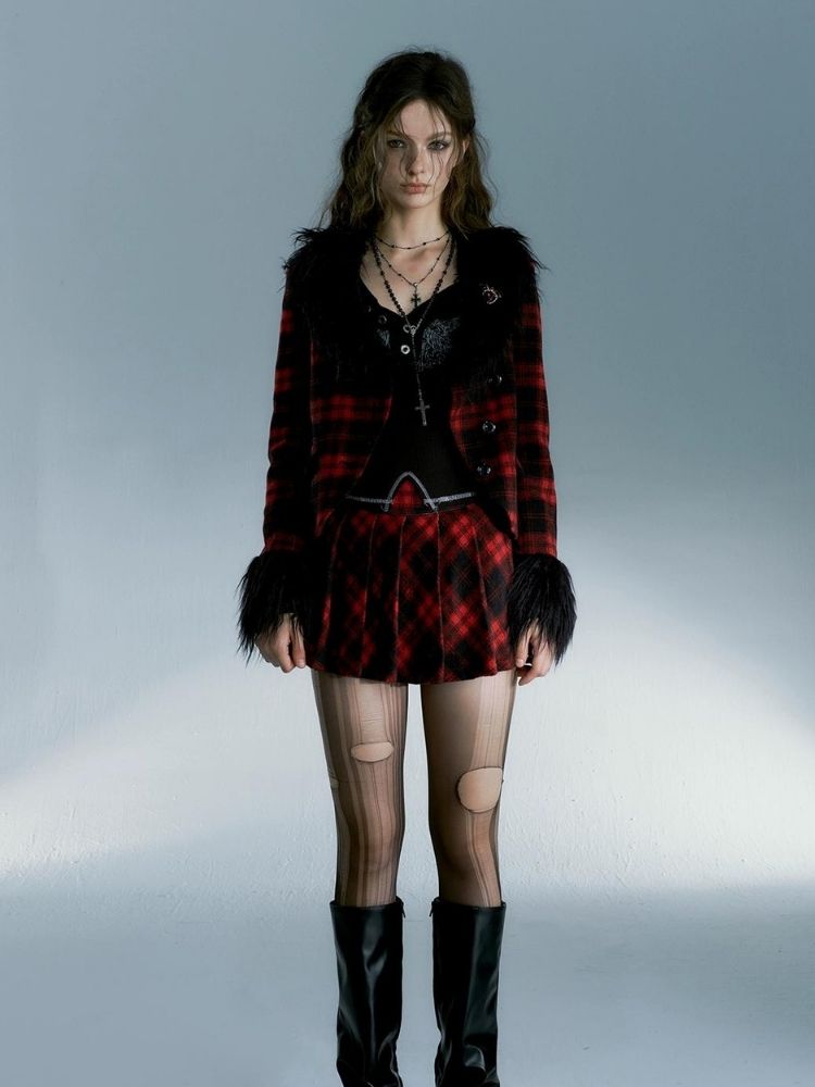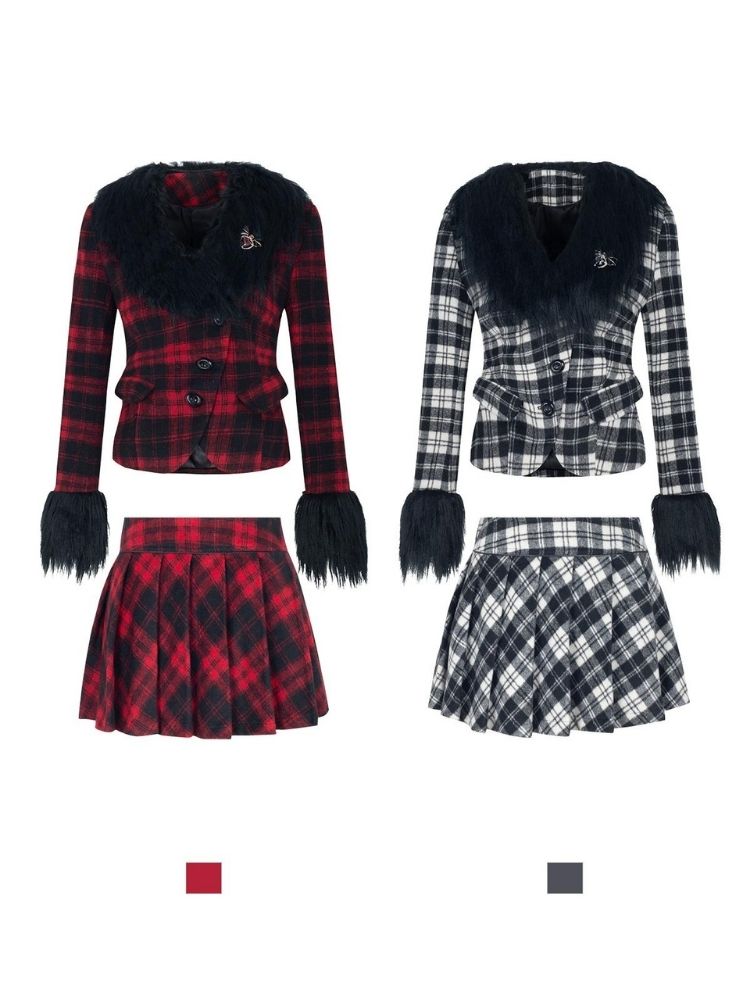 Punk night plaid jacket and pleated skirt【s0000004097】