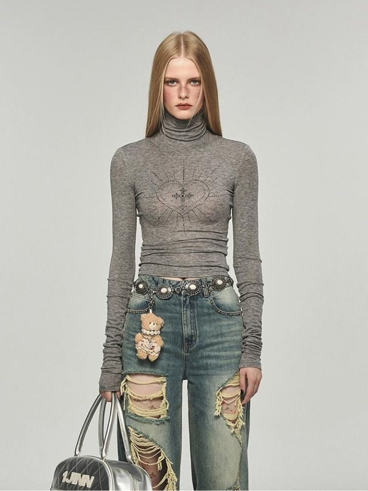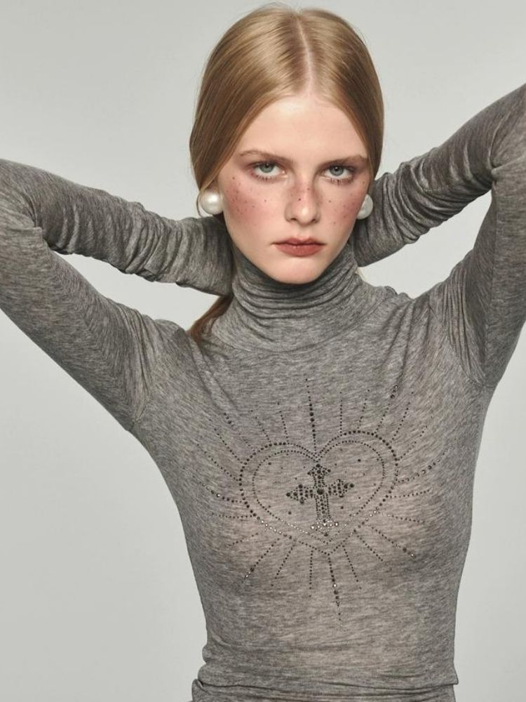 Hot diamond turtleneck shirt【s0000004143】