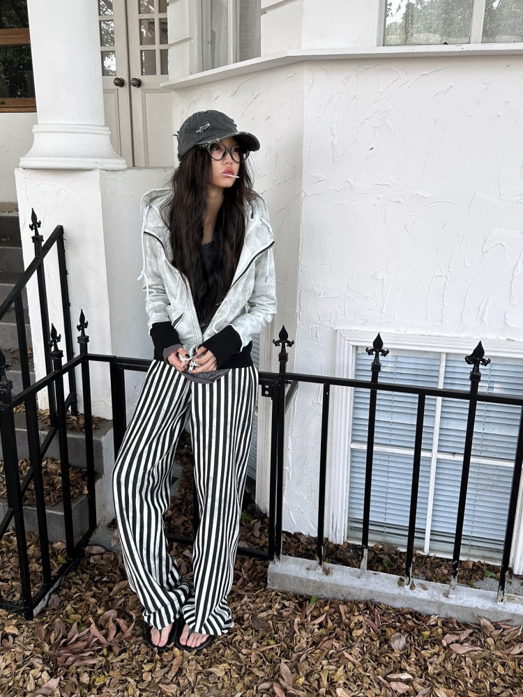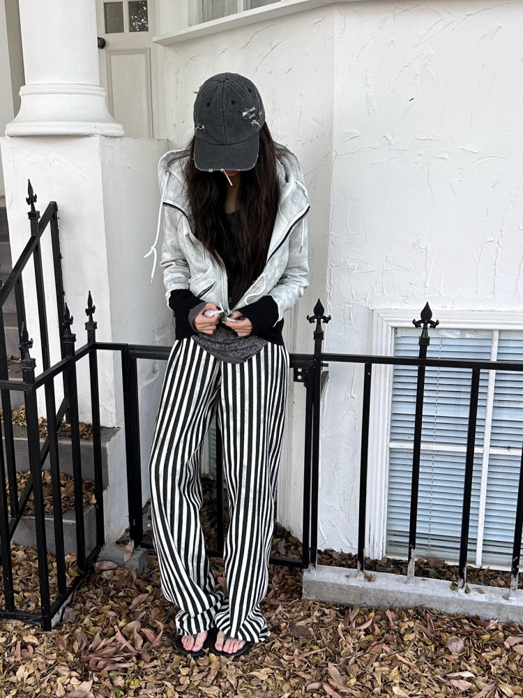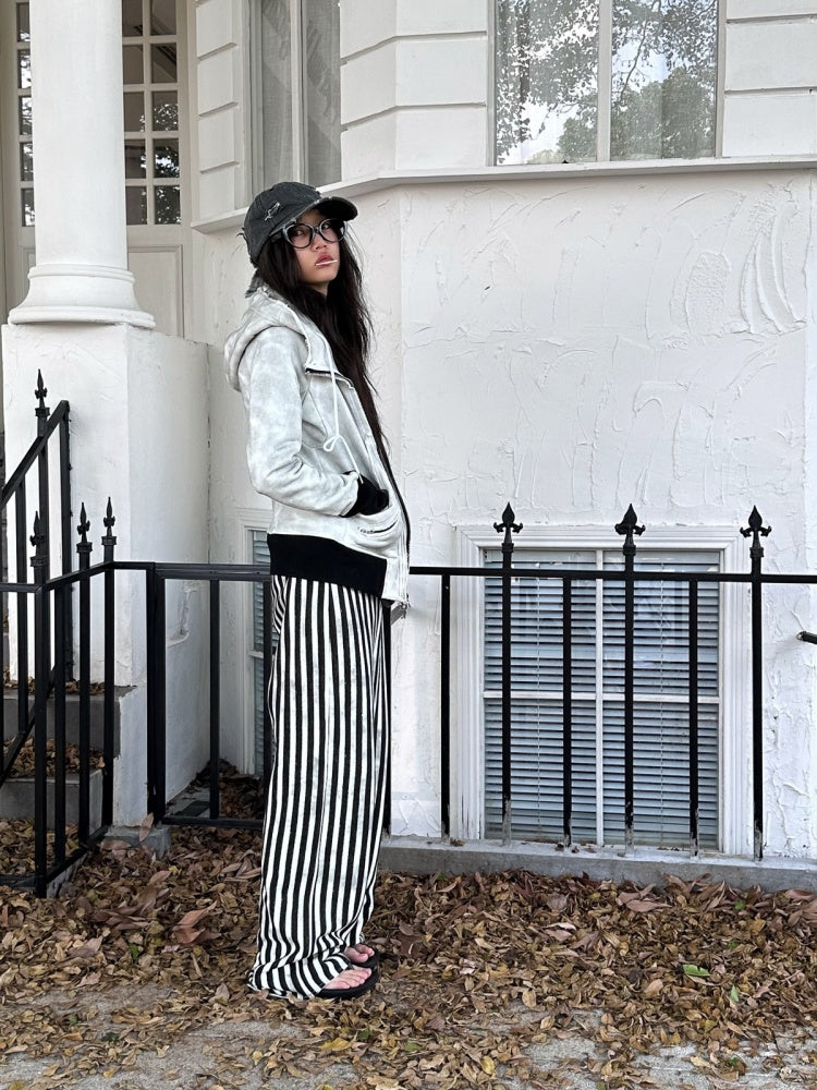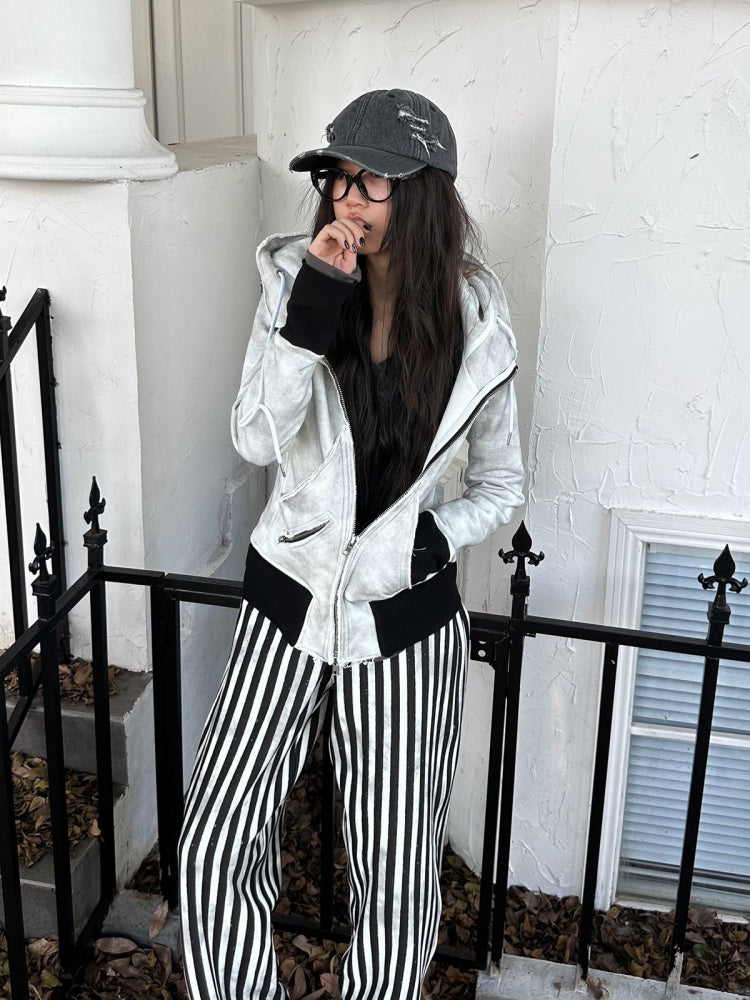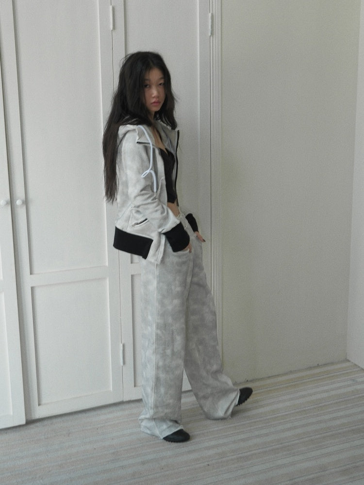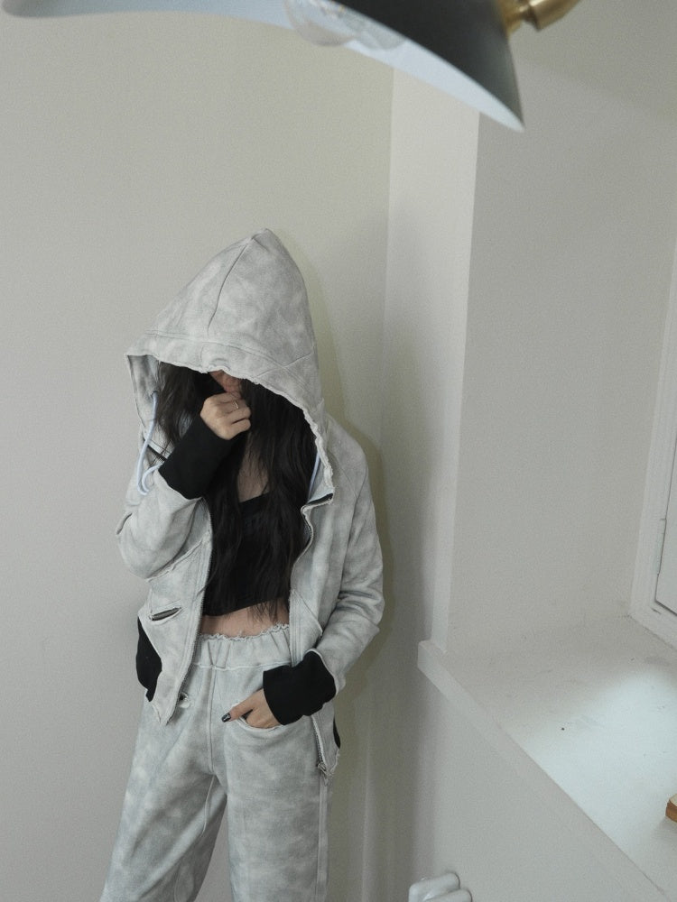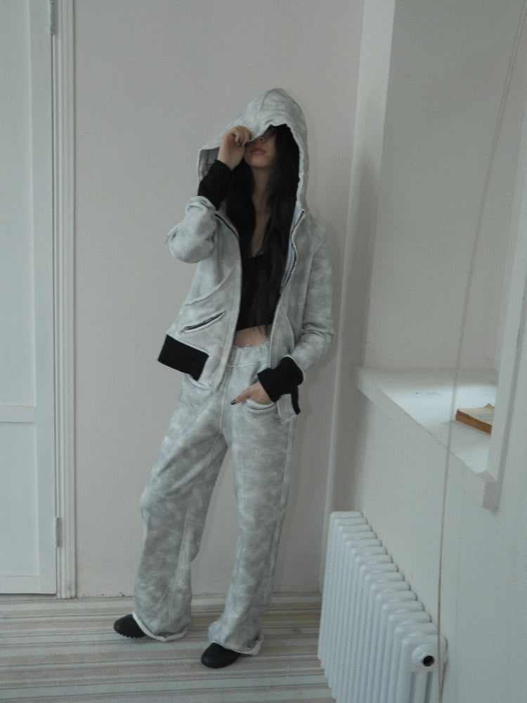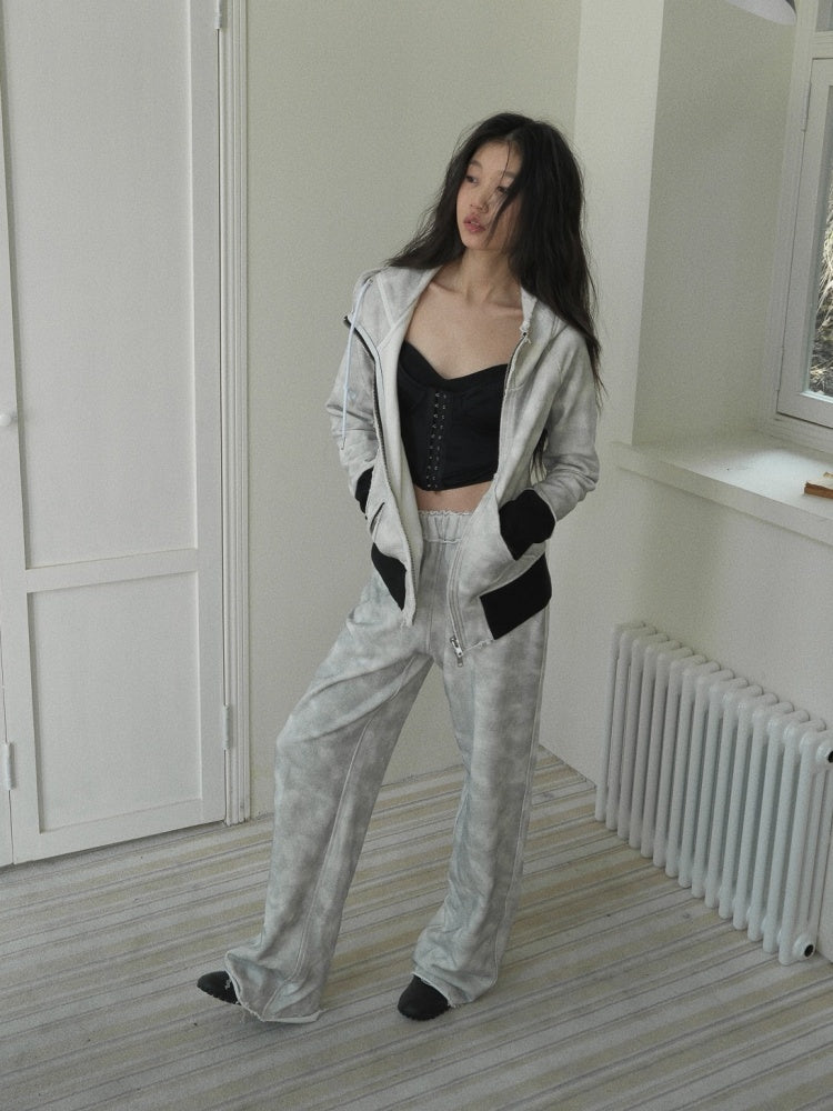 Damage Processing Dirty Stitch Contrast Color Sweat Jacket & Pants Setup【s0000004161】