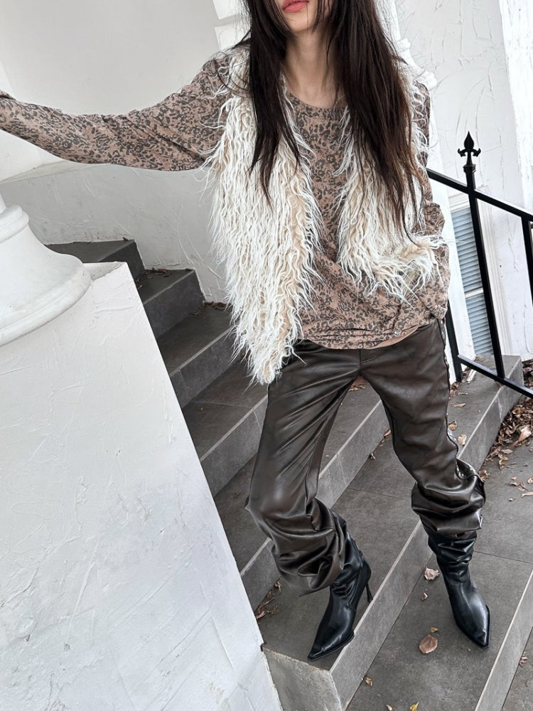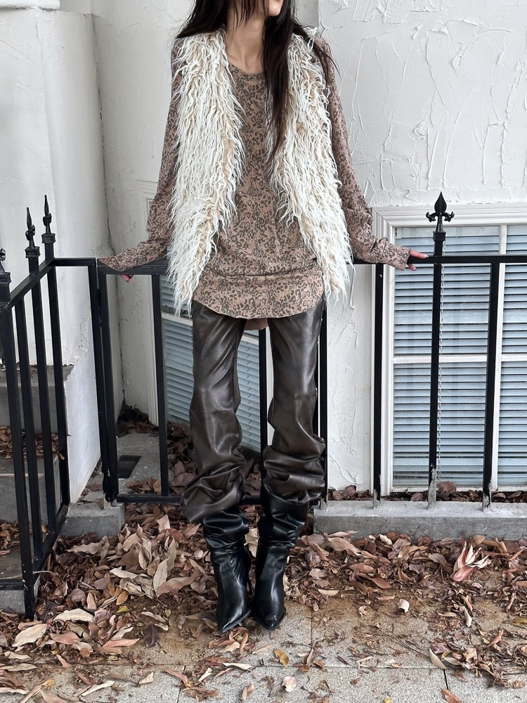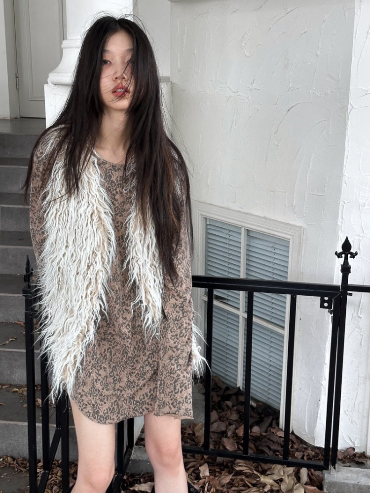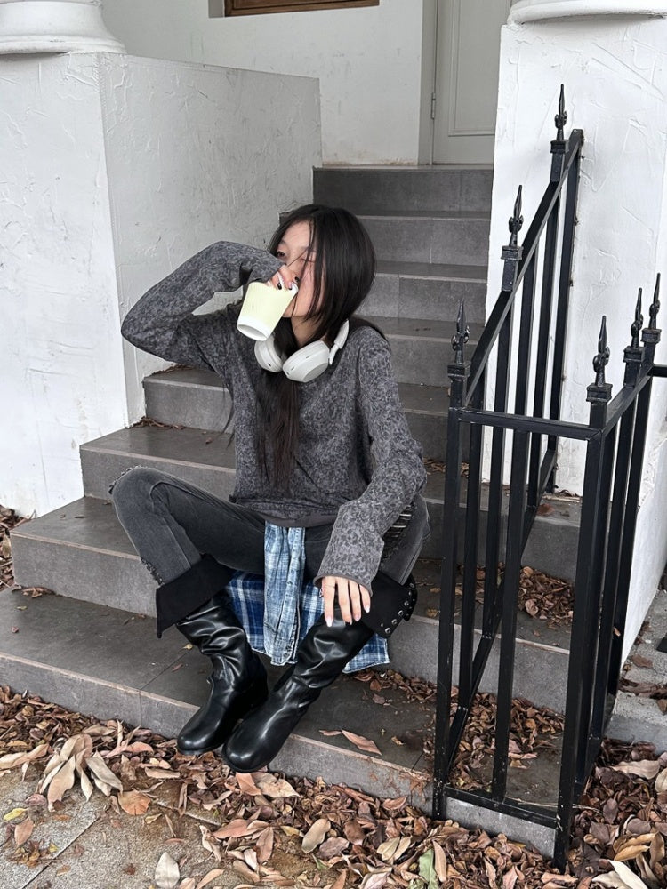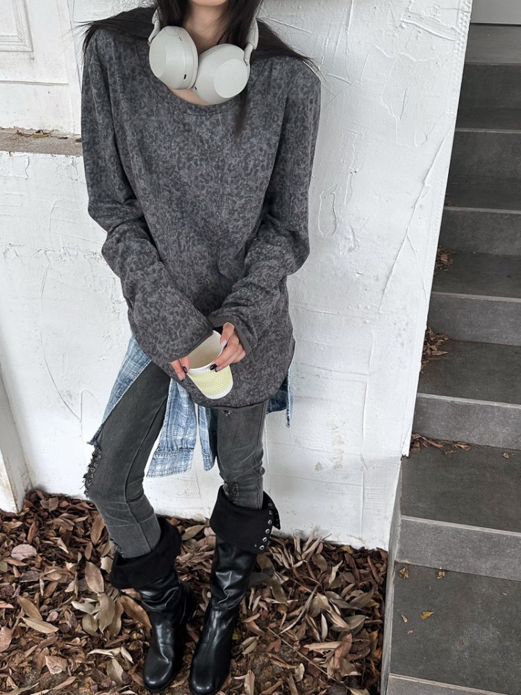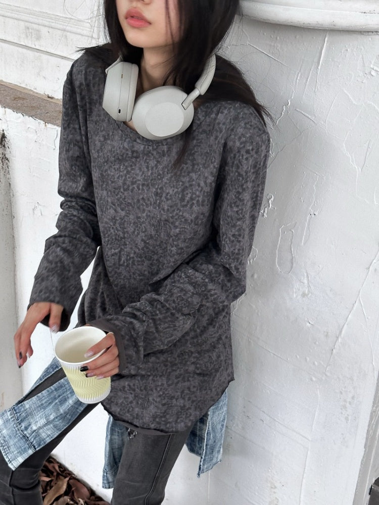 Retro Dirty Dyeing Leopard Long T-Shirt【s0000004169】