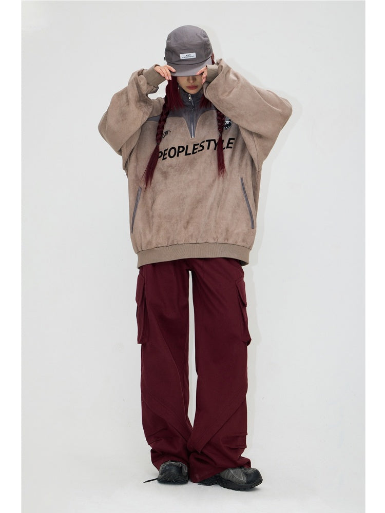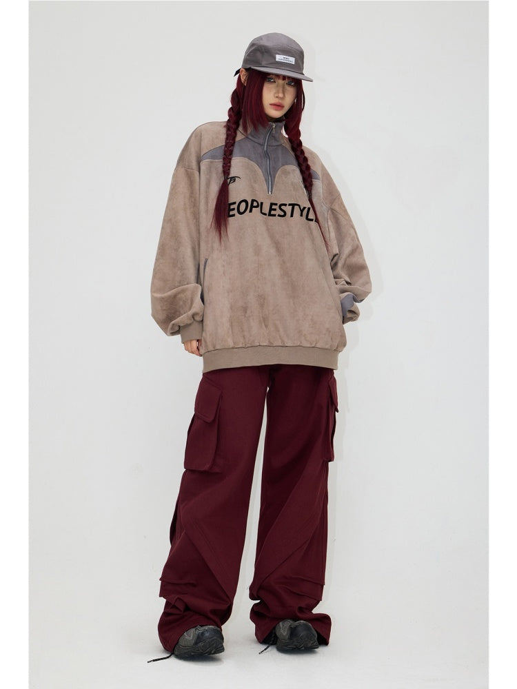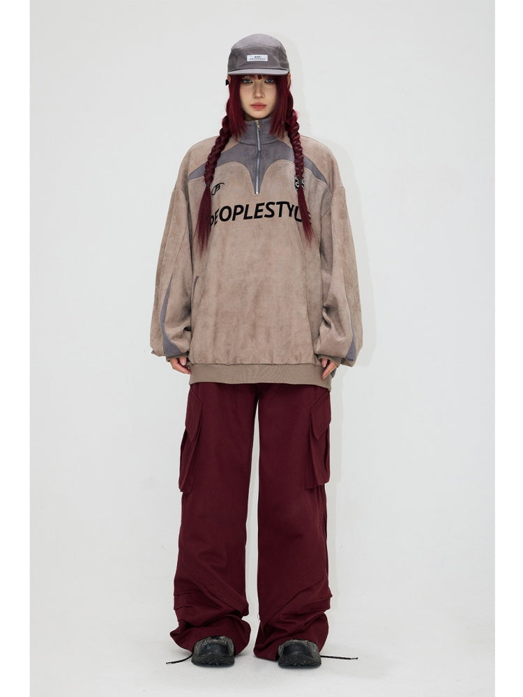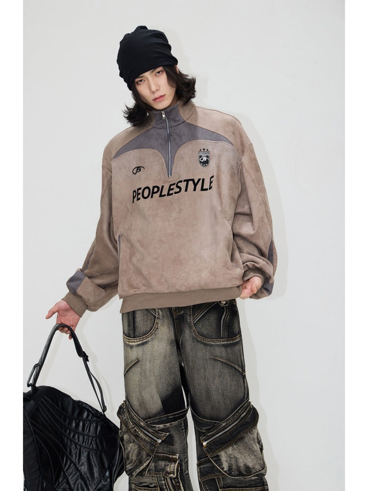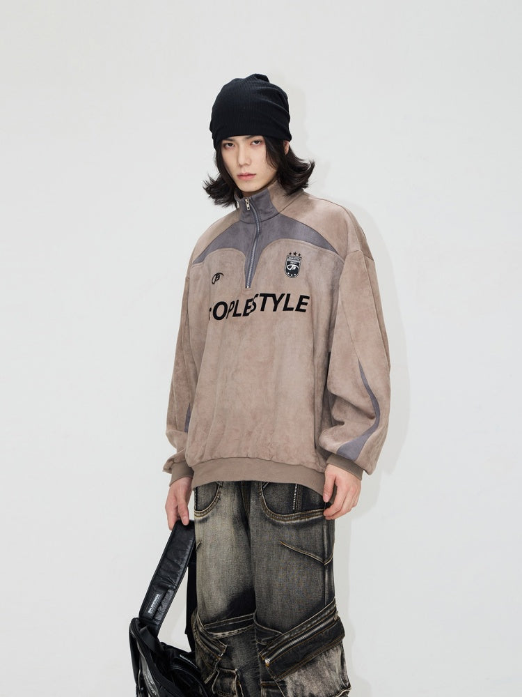 Suede Look Stand Collar Half Zip Sweat【s0000004187】