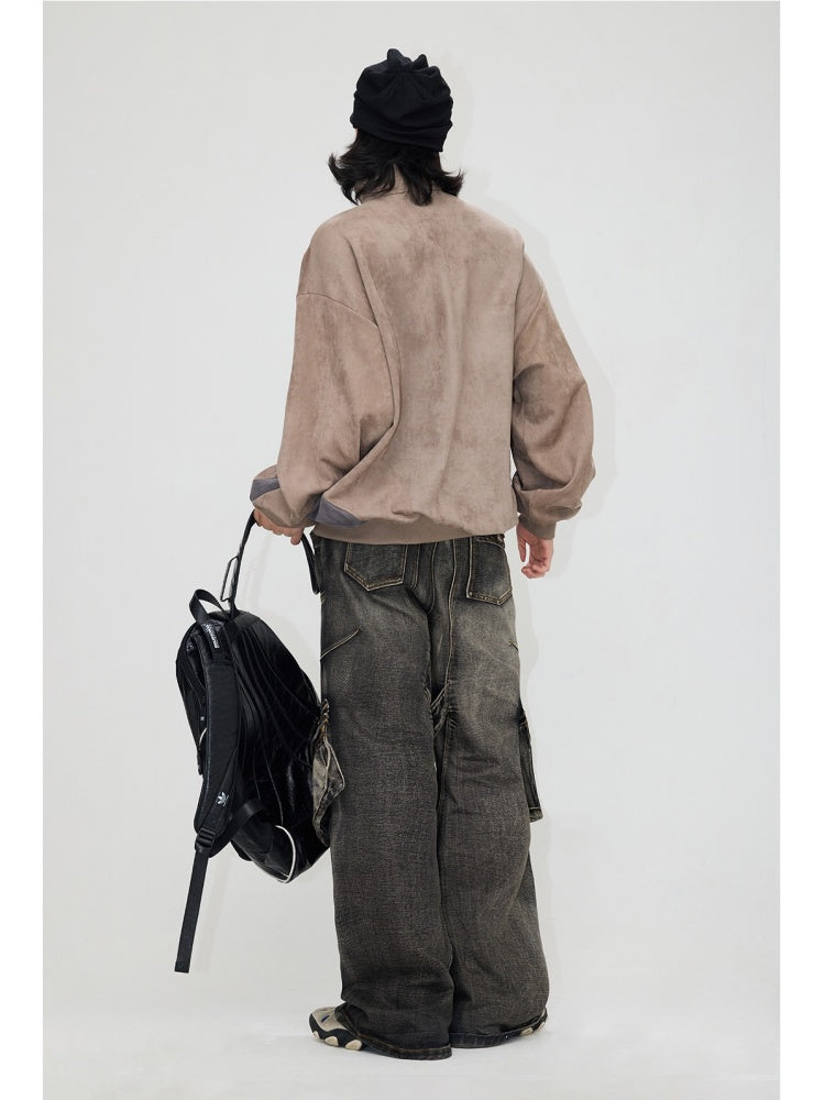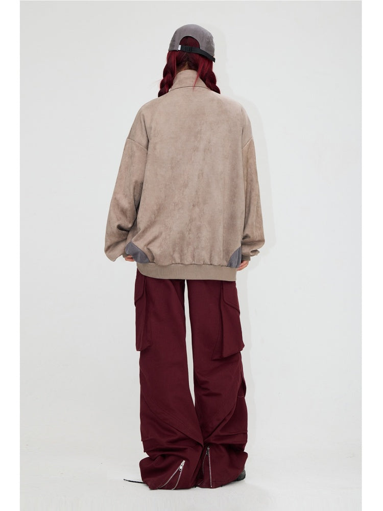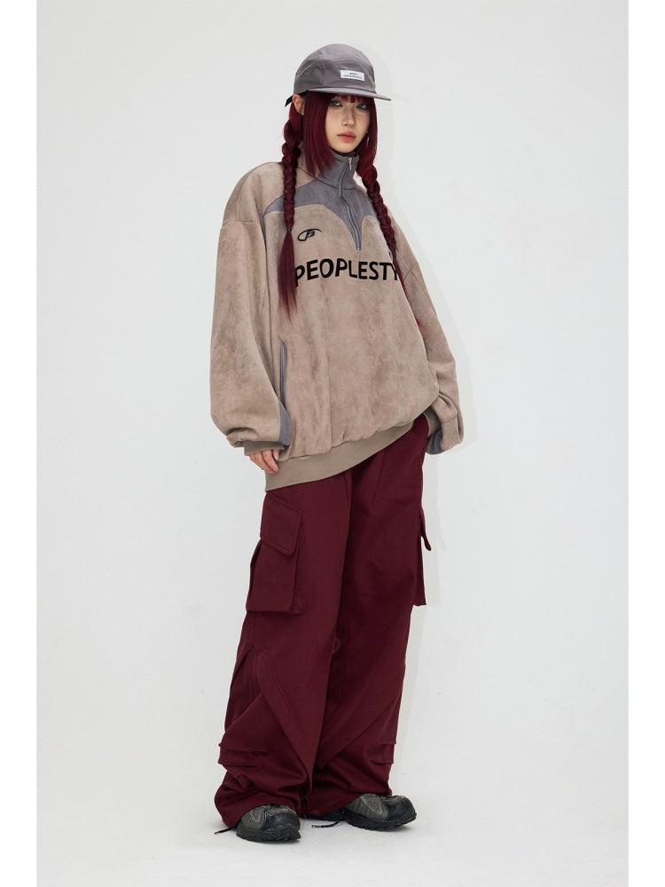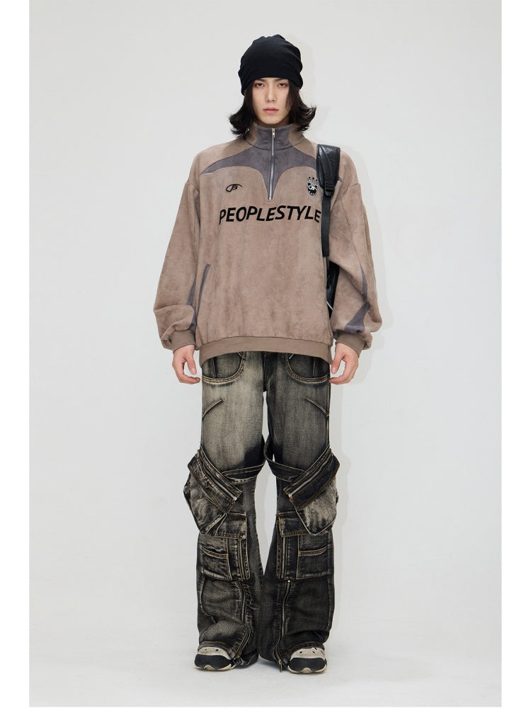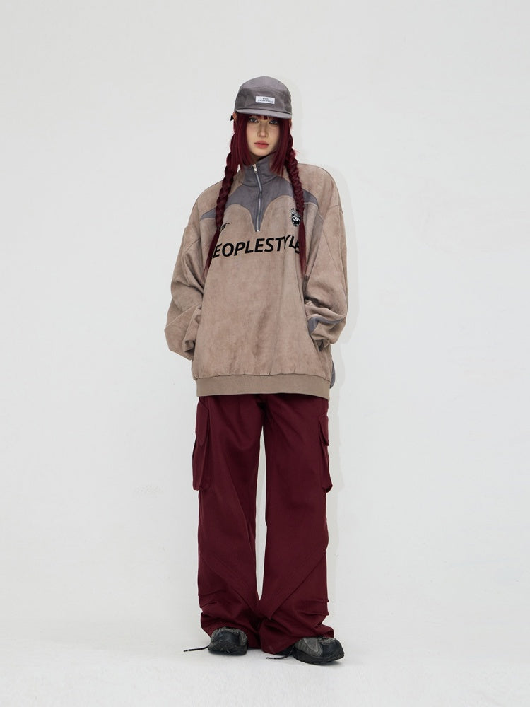 Suede Look Stand Collar Half Zip Sweat【s0000004187】