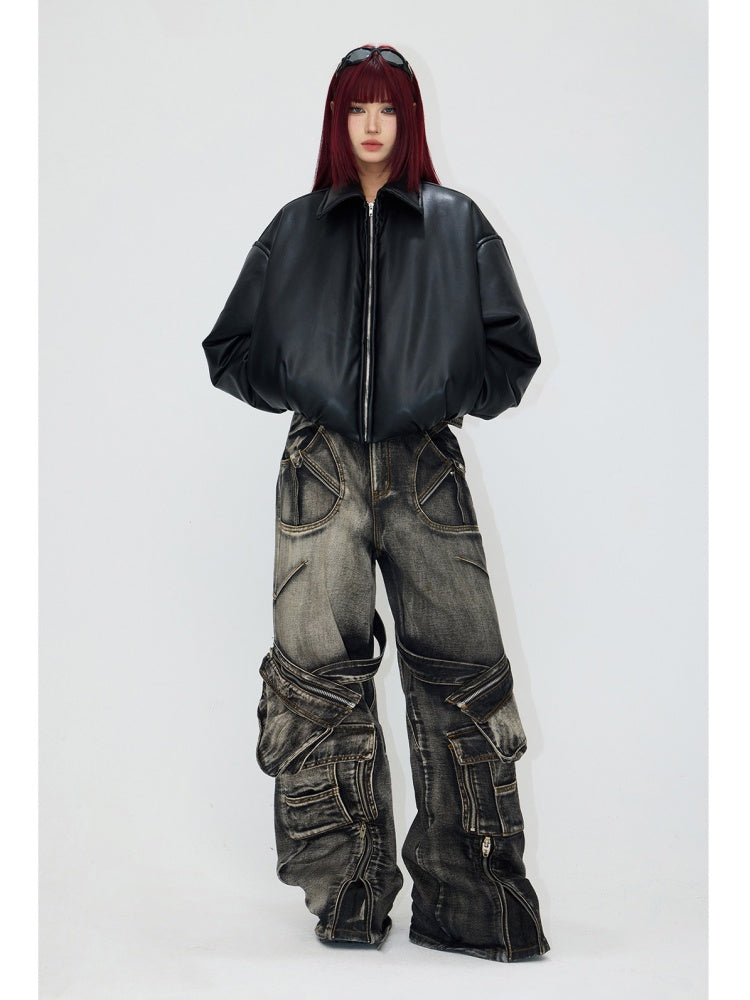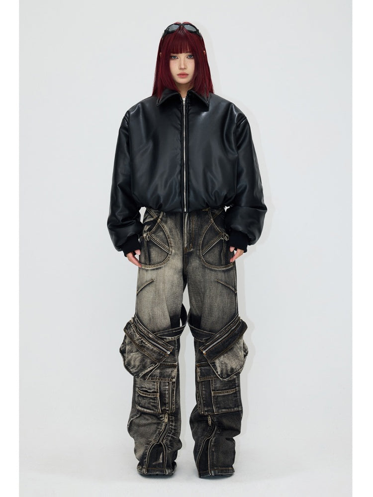 Retro Color Zip Leather Style Jacket【s0000004190】
