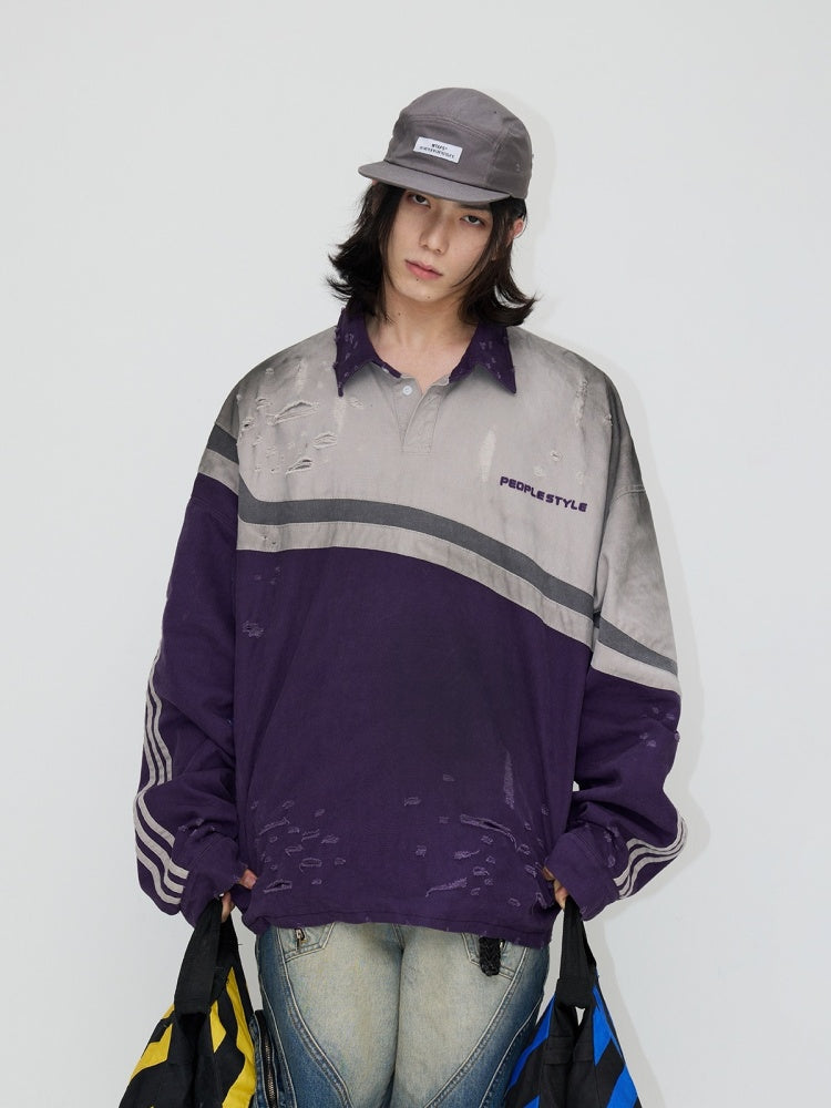 Dirty Vintage Damage Distressed Design Polo Sweat【s0000004191】