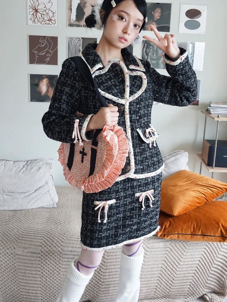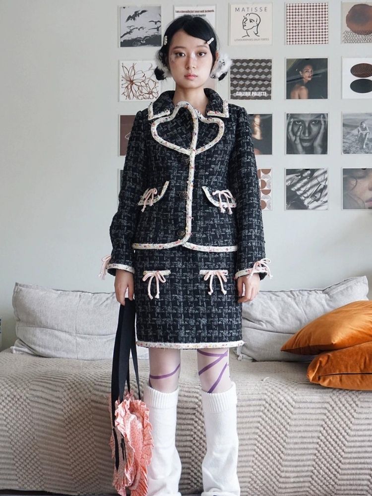 Niche Design Cute Girl Suit Top Japanese Retro Black Small Fragrance Jacke【s0000004268】