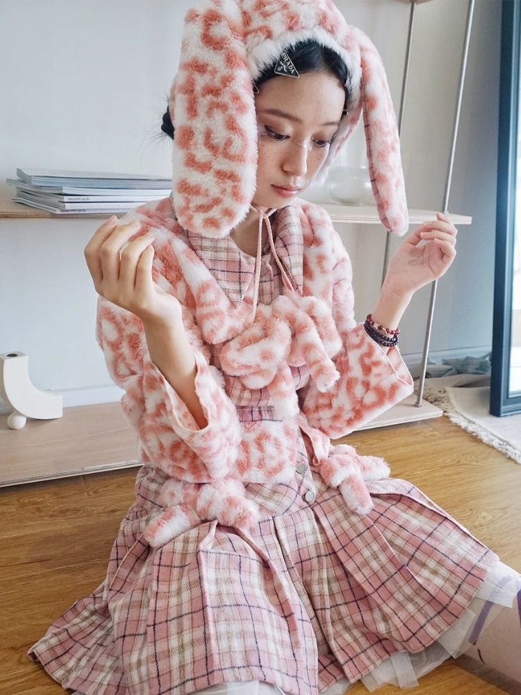 Cute furry warm ear protection hat niche design rabbit ears hat【s0000004271】