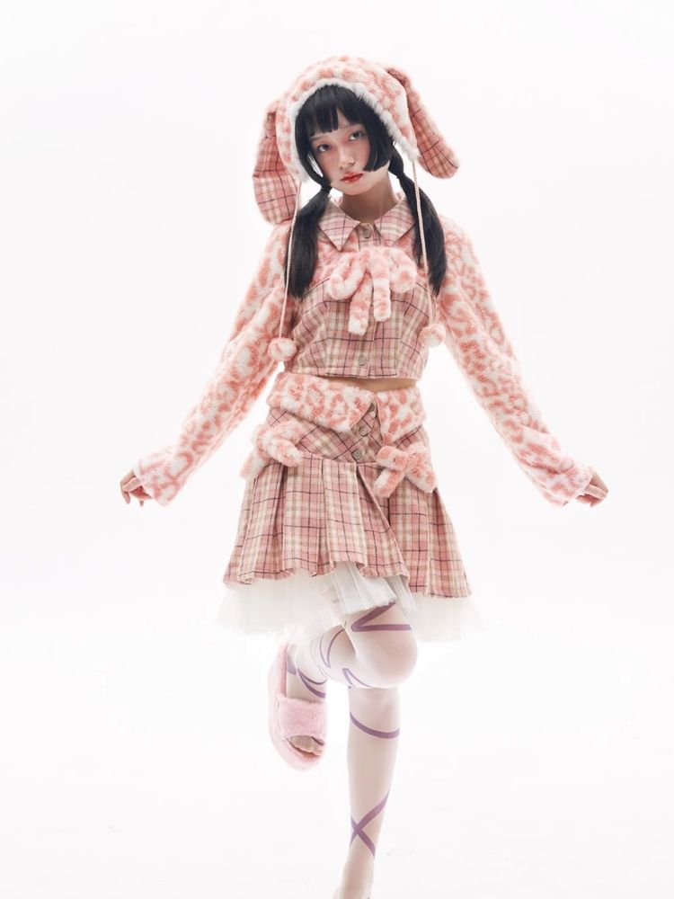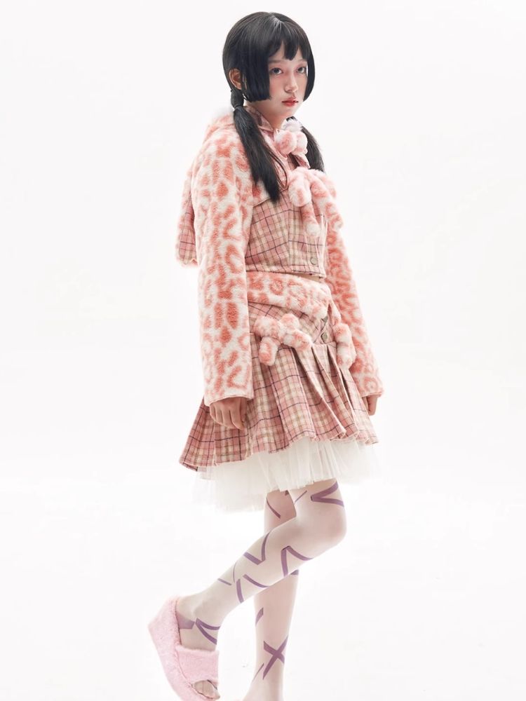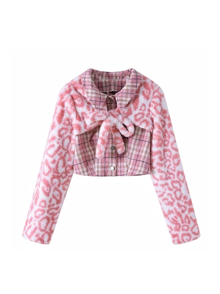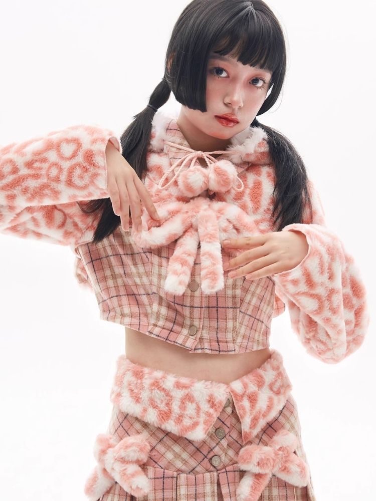 Niche Design Pink Cute Short Top Sweet Cool Spice Girl Plush Jacket【s0000004272】