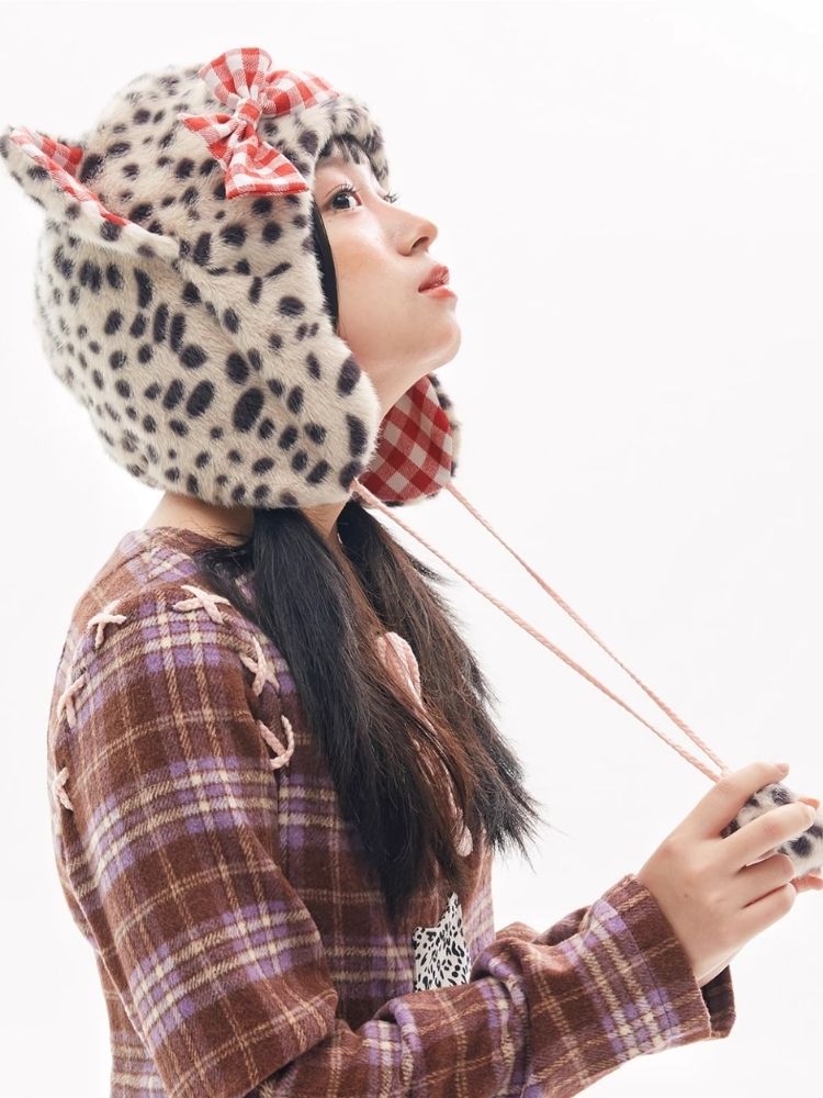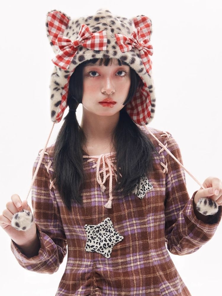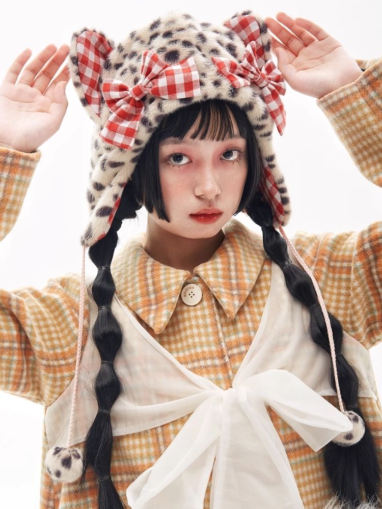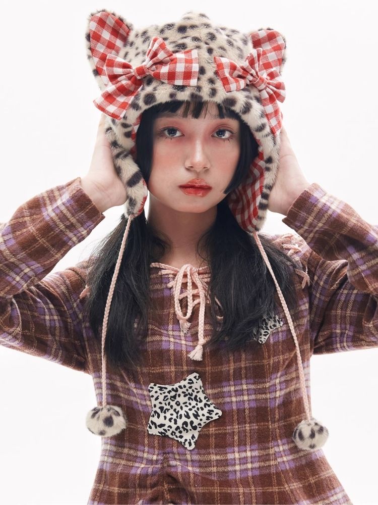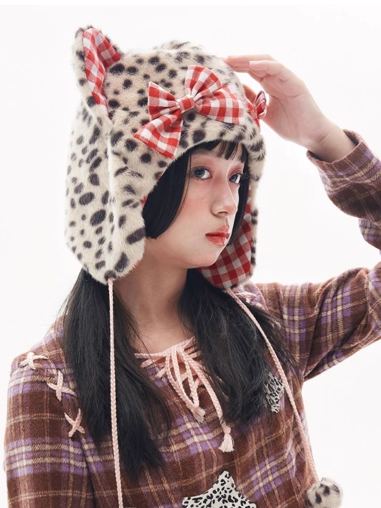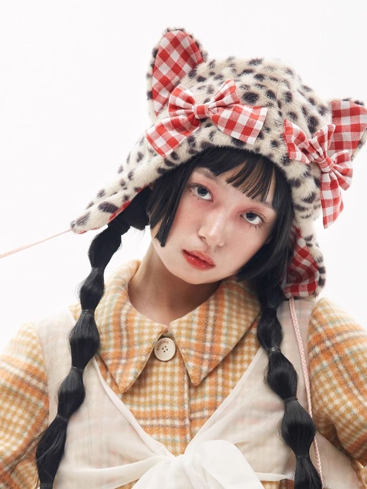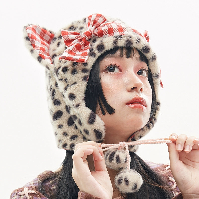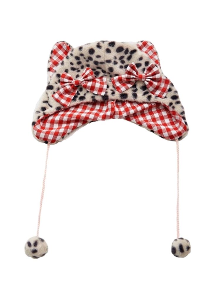 Niche design cute ear protection hat plush bow cat ears【s0000004275】