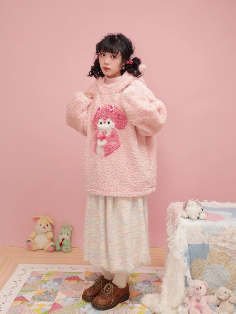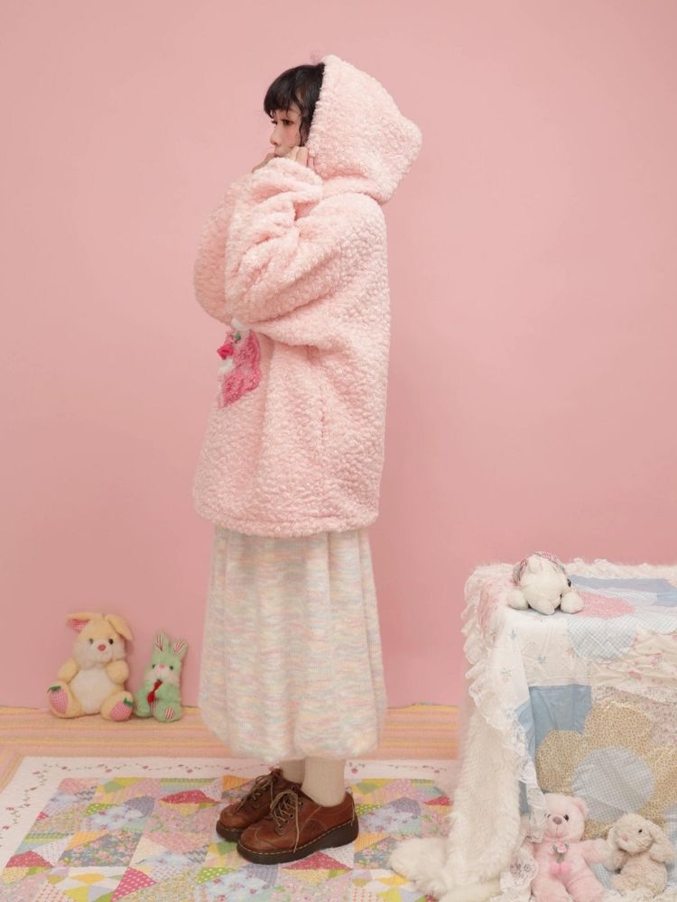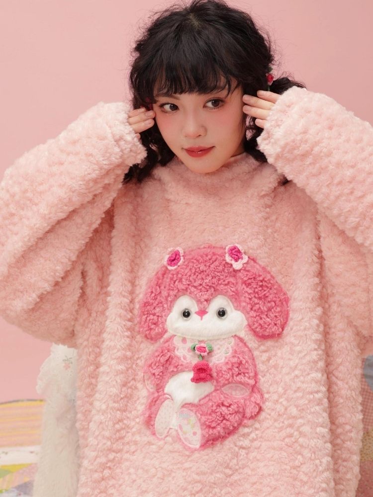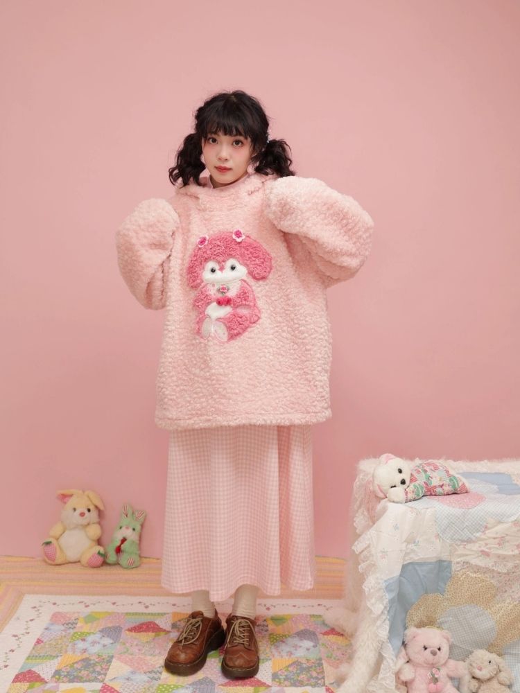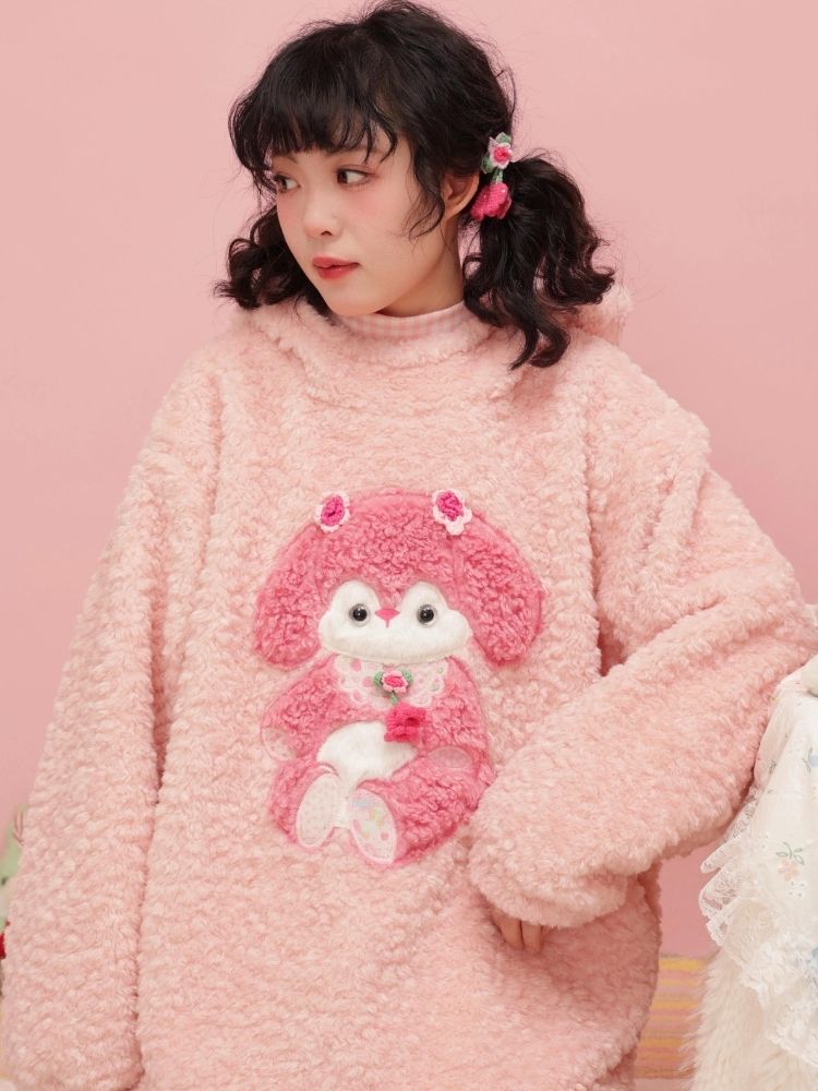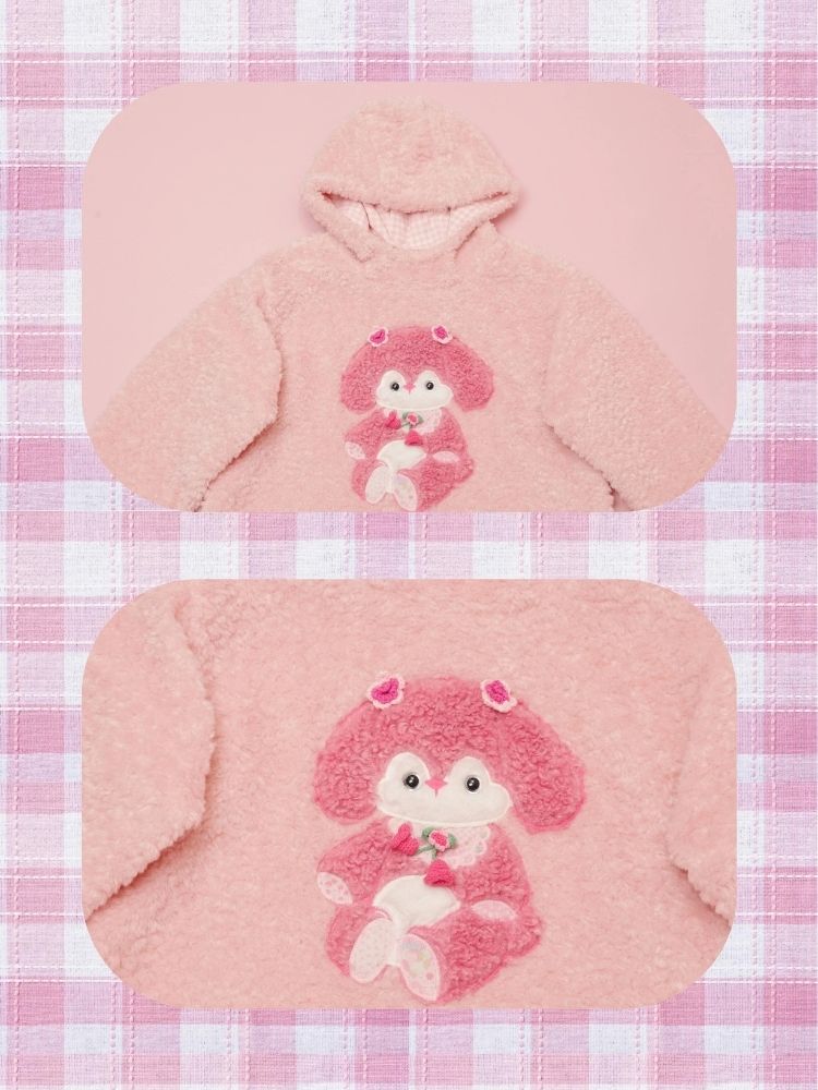 Puppy Dolls Stereoscopic Applique Pink Hooded Plush Jacket【s0000004290】