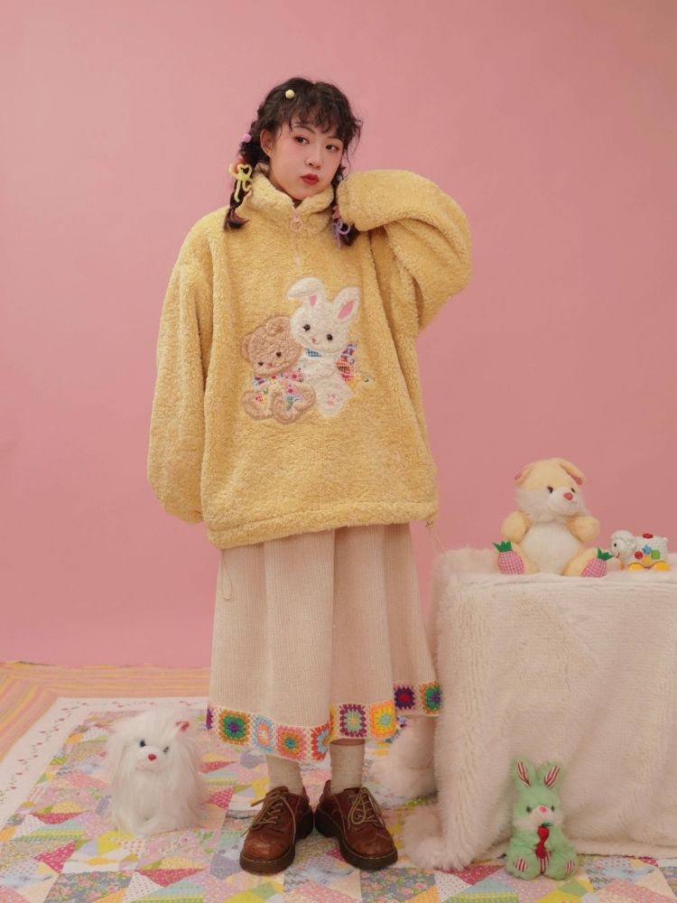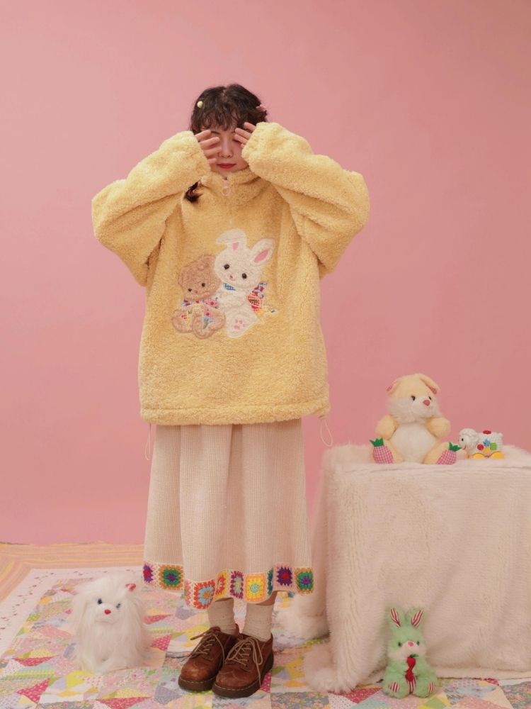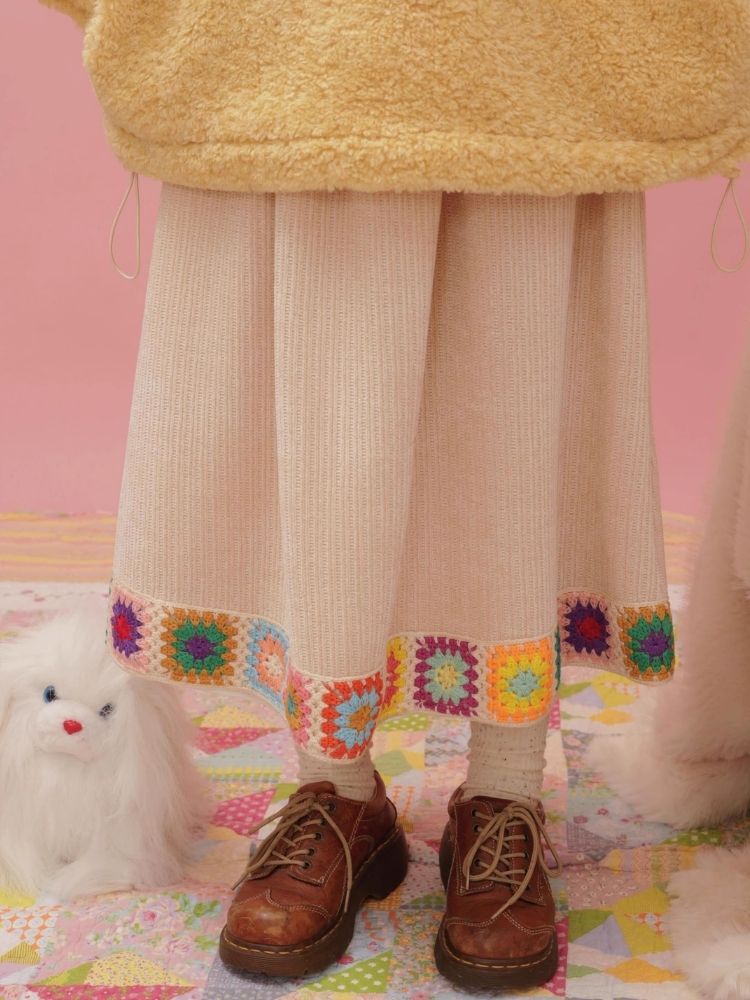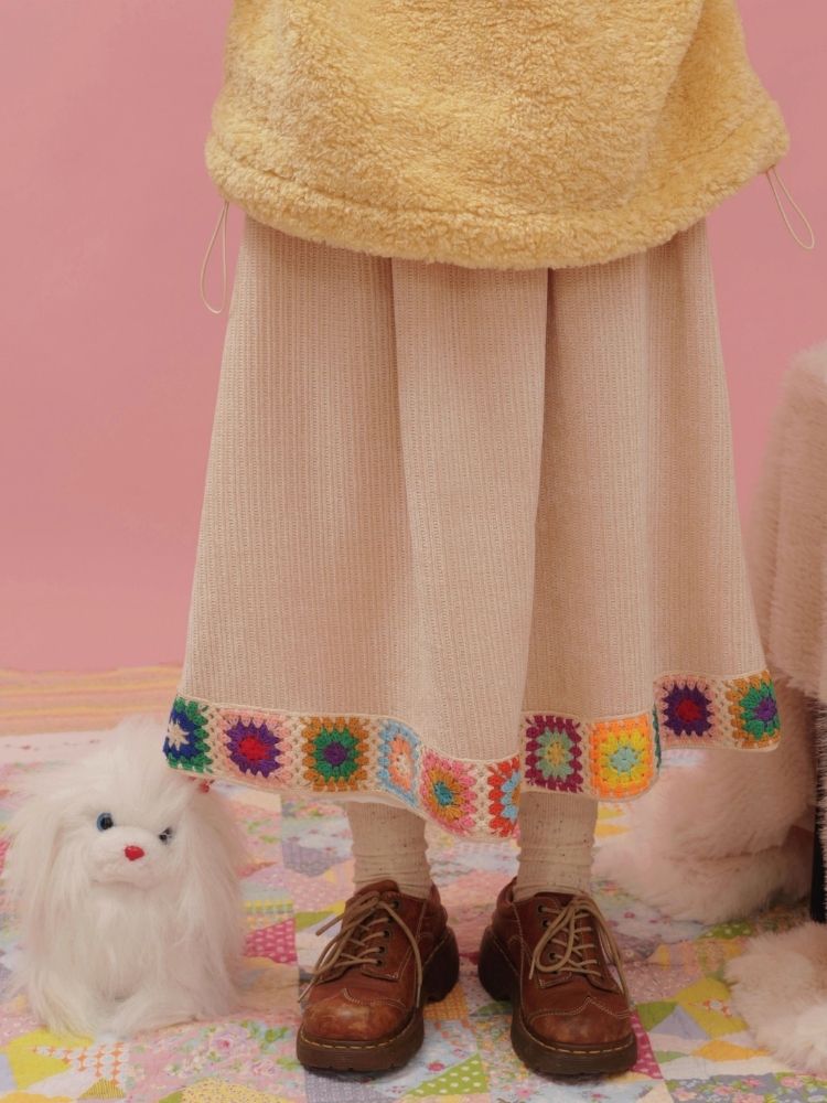 Retro Girl Beige Crochet Soft Wool Feeling Half Skirt【s0000004300】