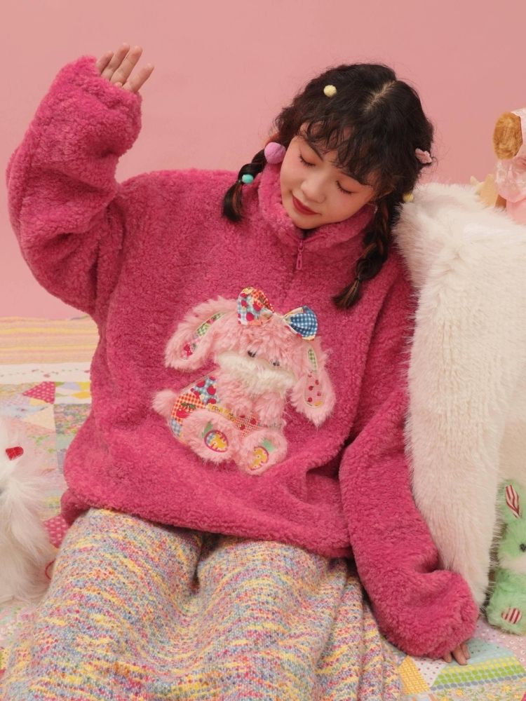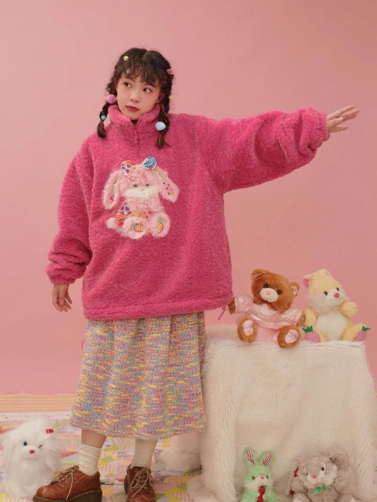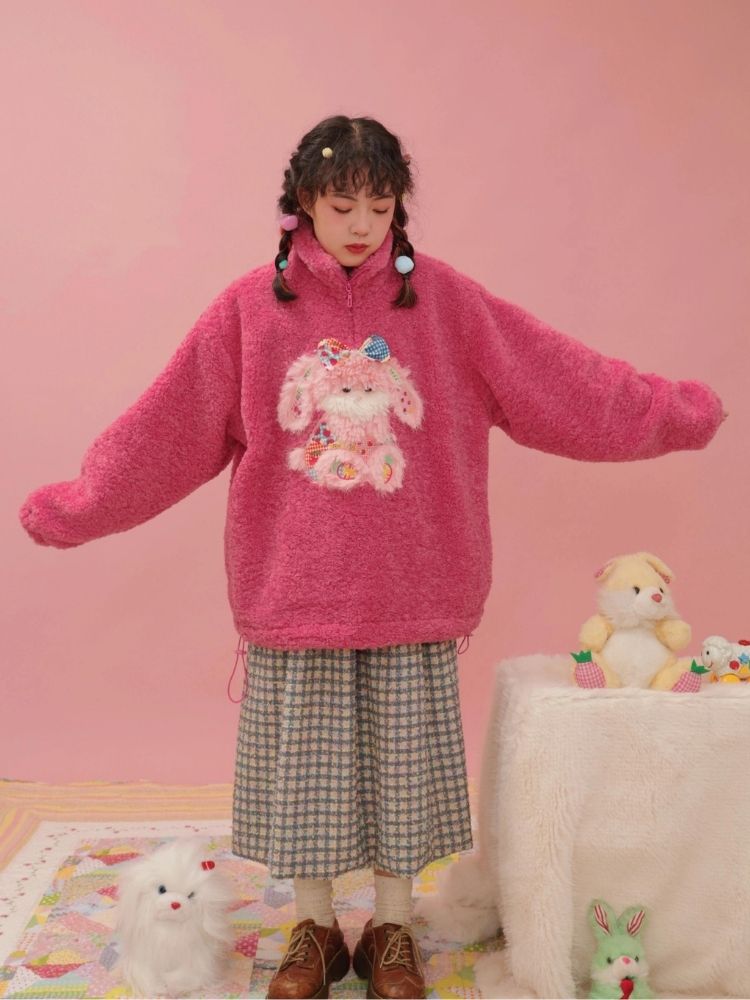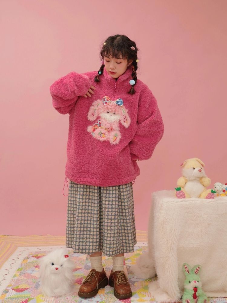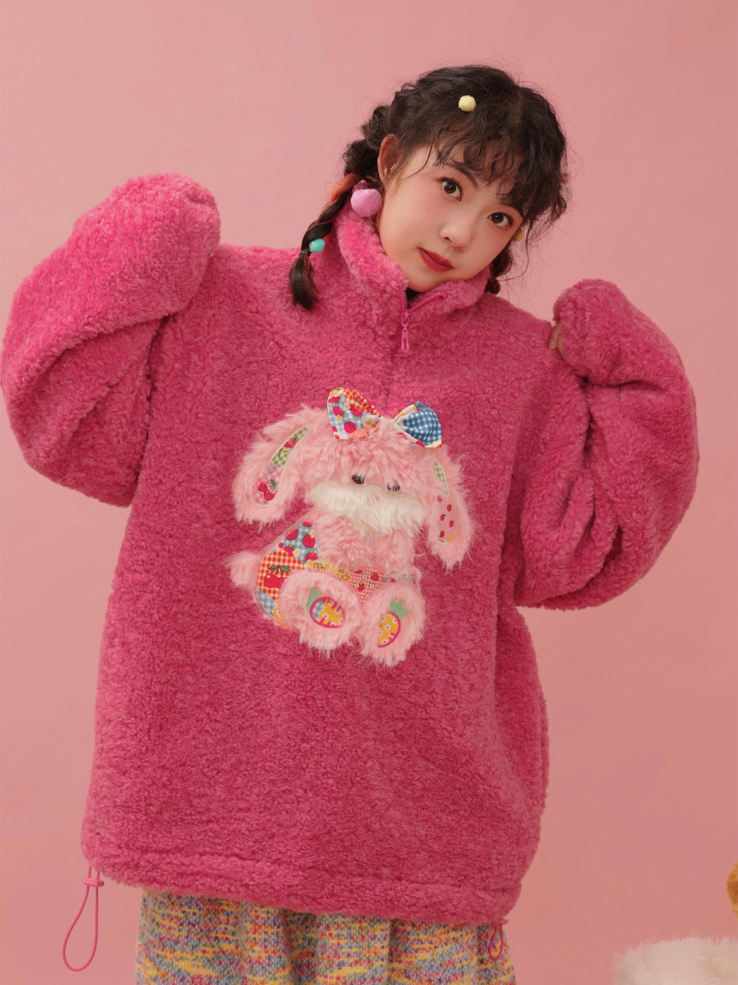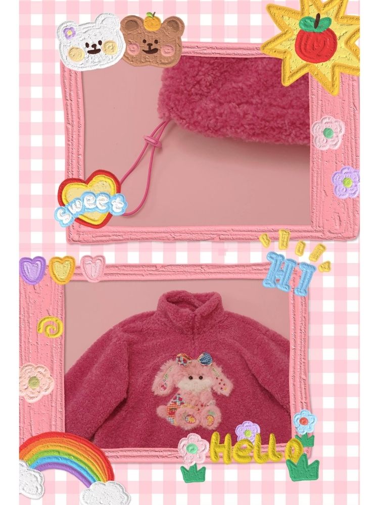 Puppy Doll Embroidered Raspberry Pink Plush Jacket【s0000004302】