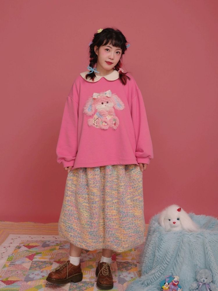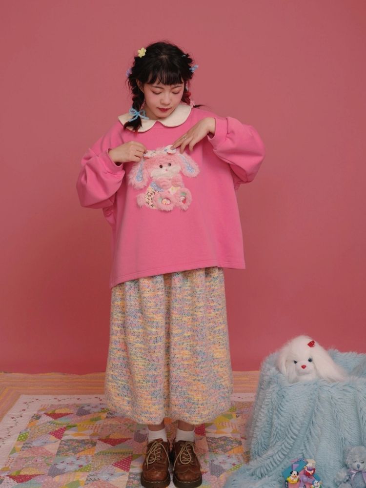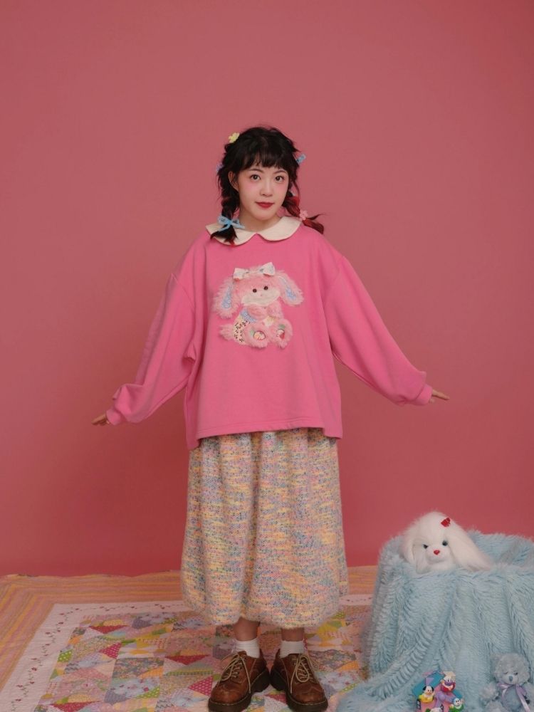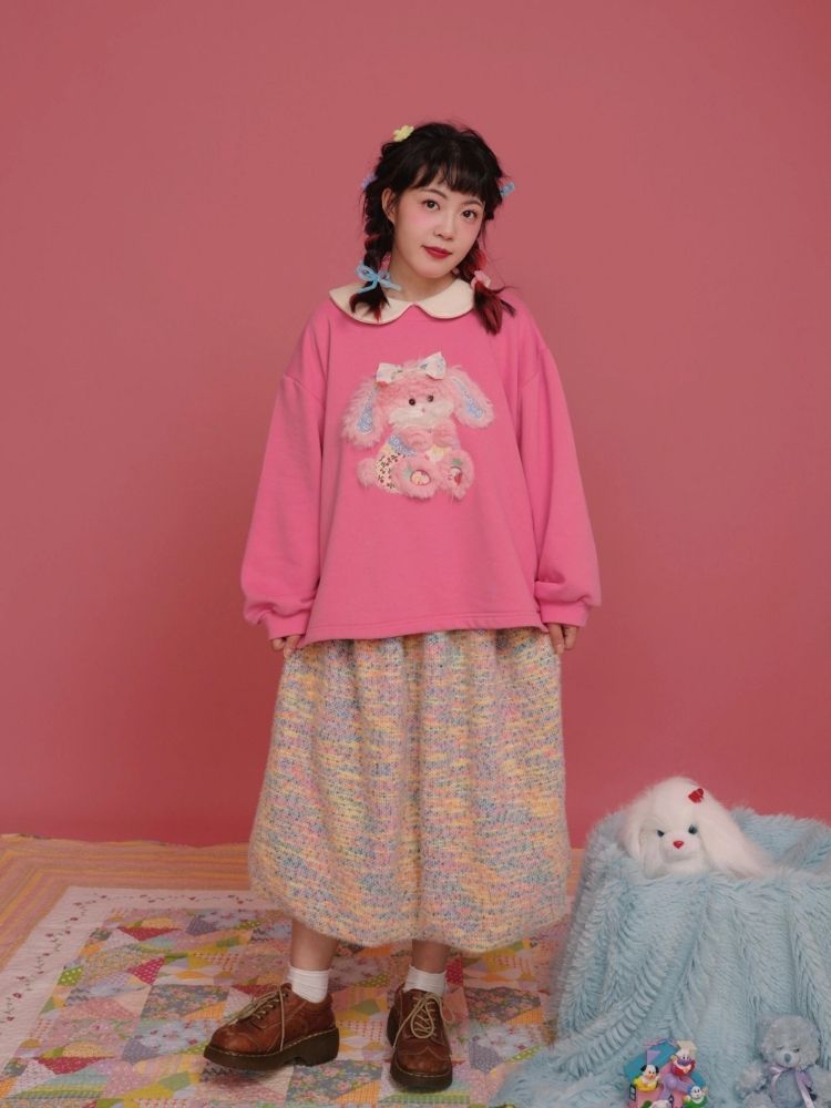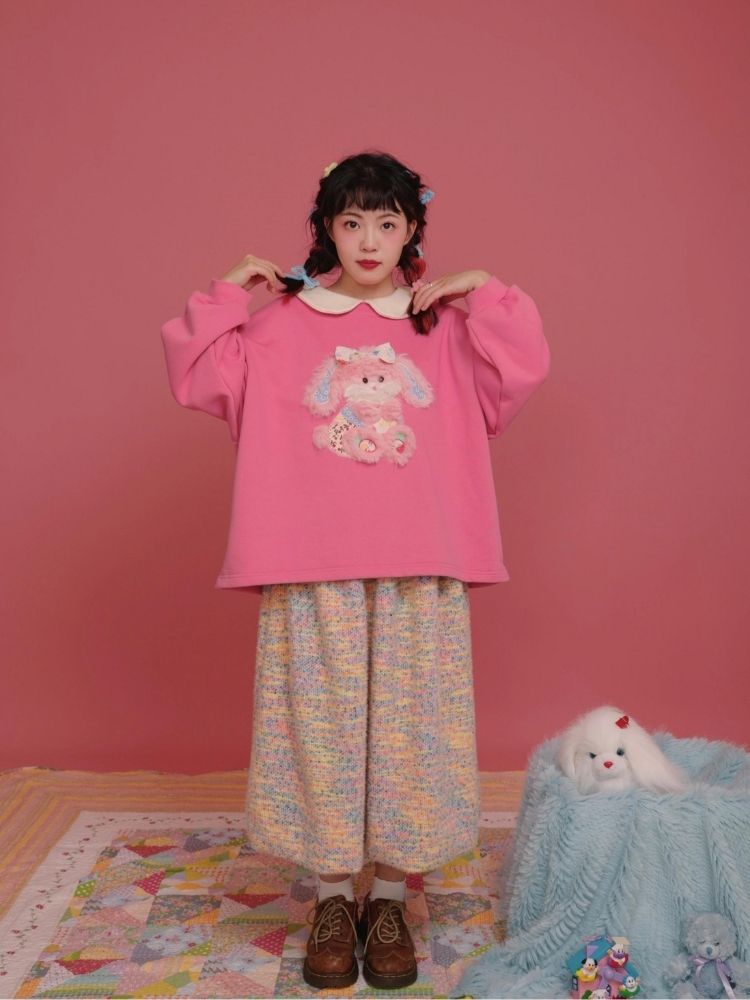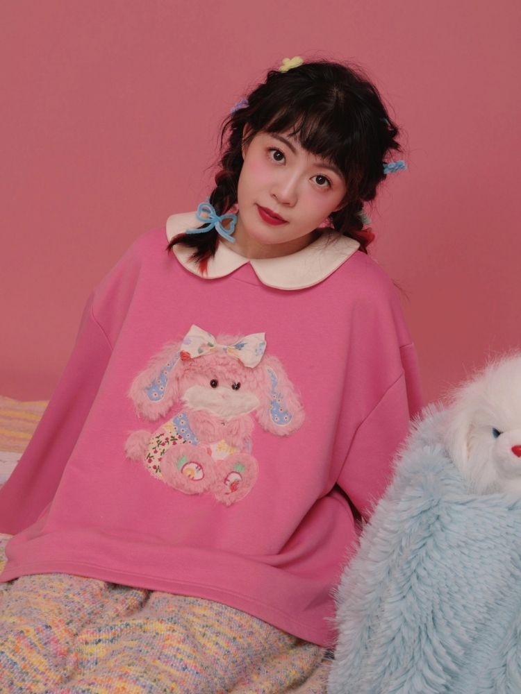 Plush Puppy Doll Collar Padded Pink Sweatshirt【s0000004307】