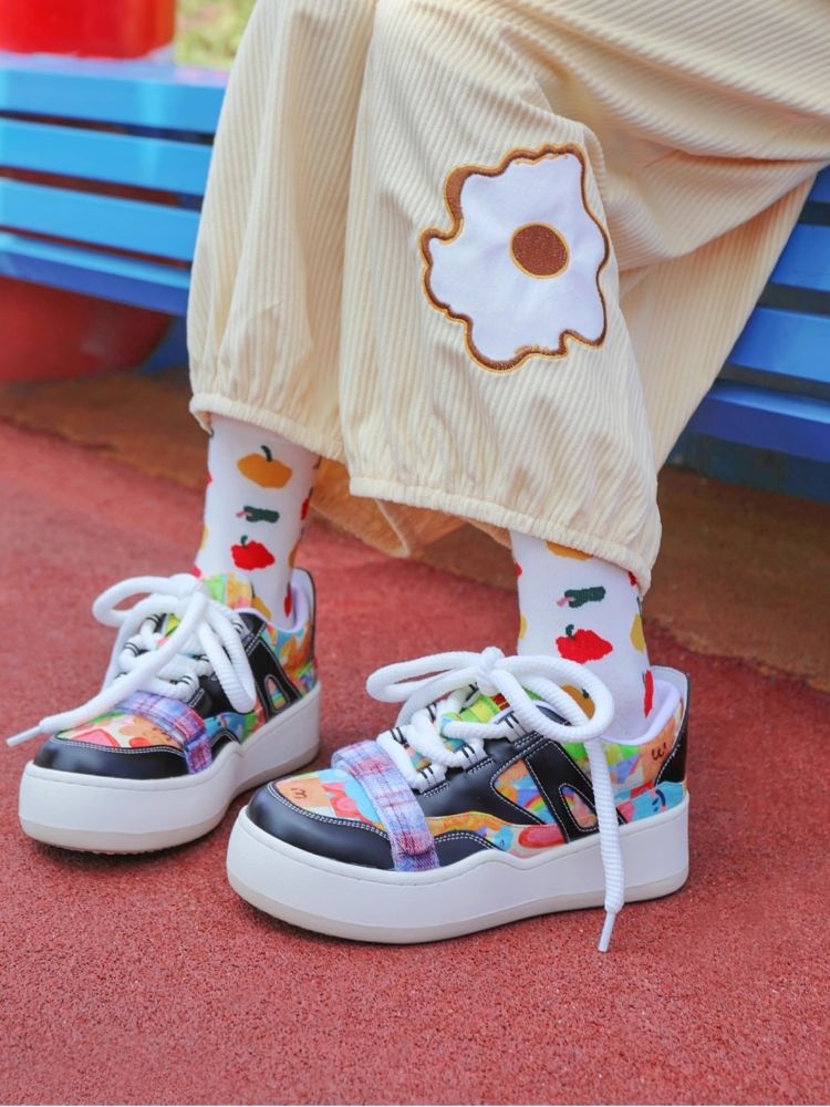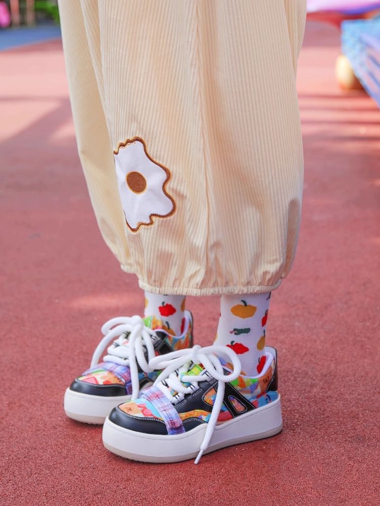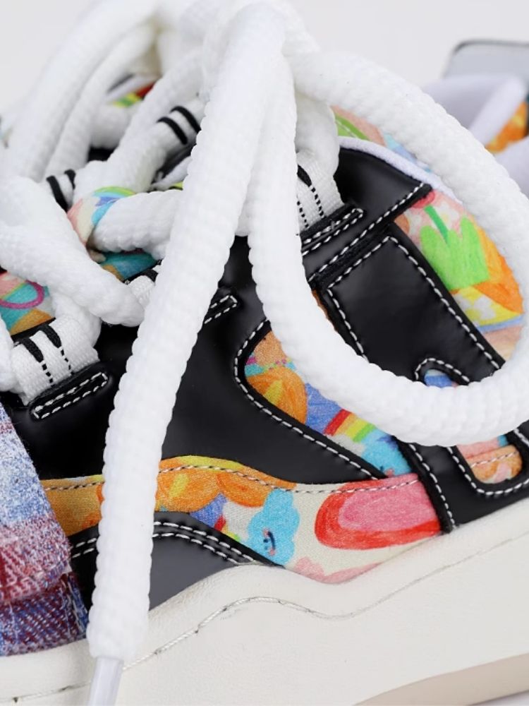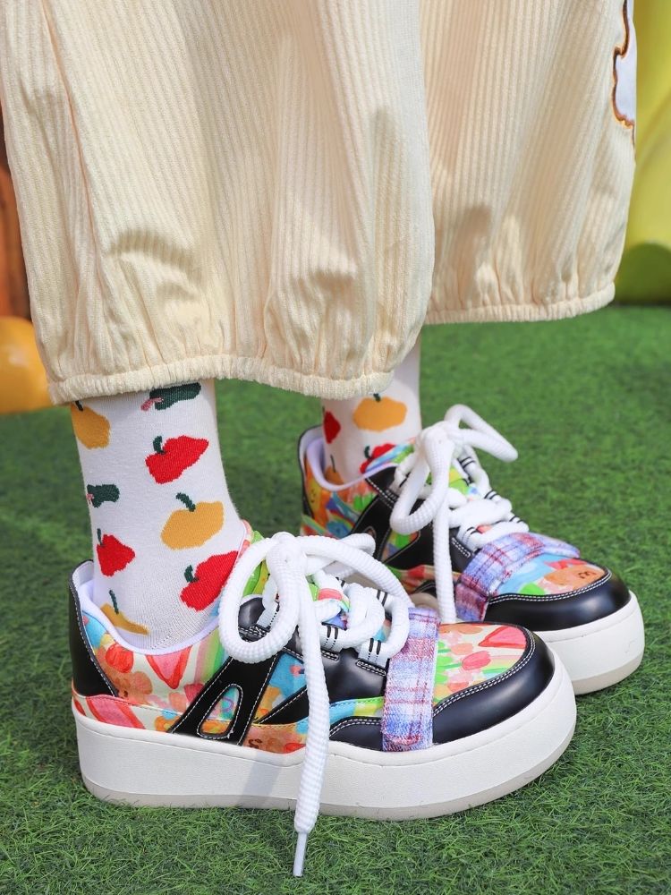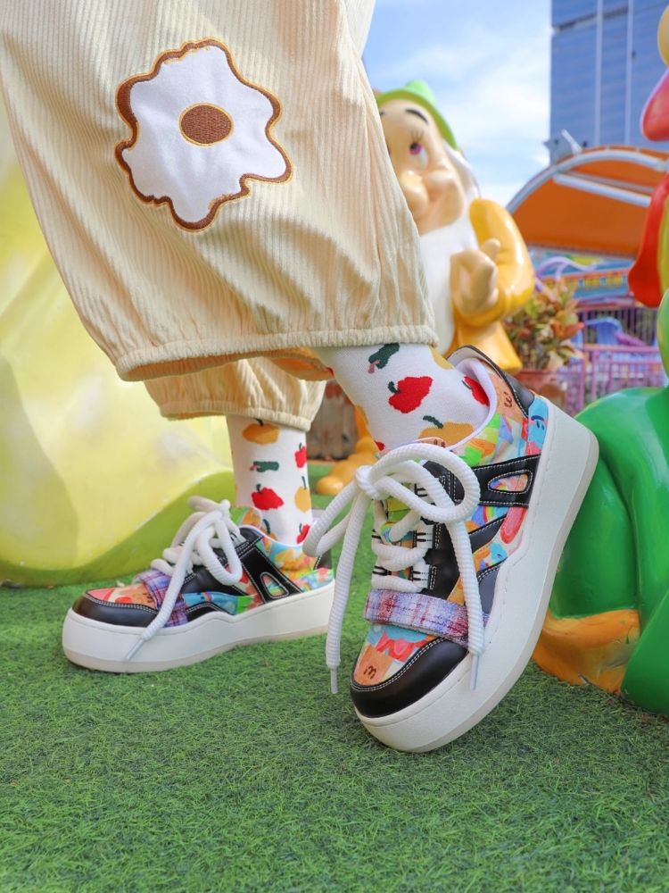 デザインが気に入って購入しました。届いてみると思っていたより軽くて、歩く日でも履けそうな厚底スニーカーです。これからどんな服に合わせて履こうか楽しみ❢