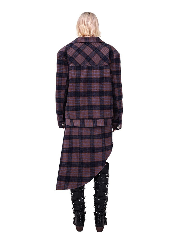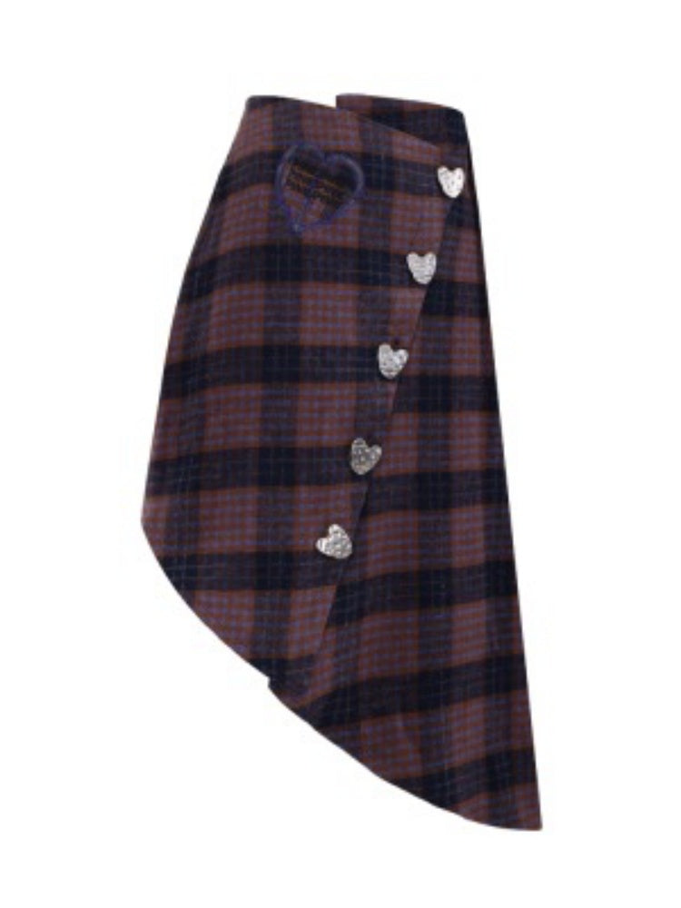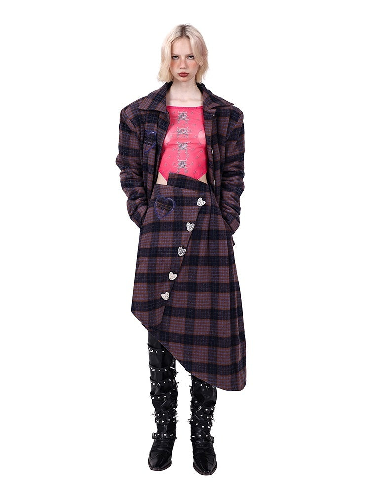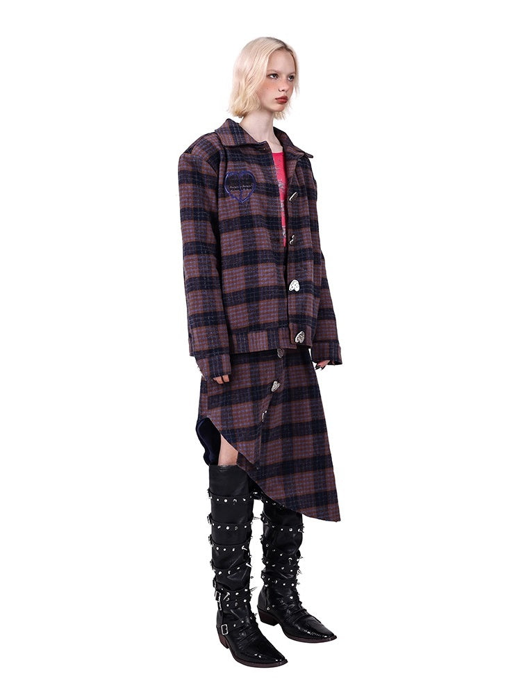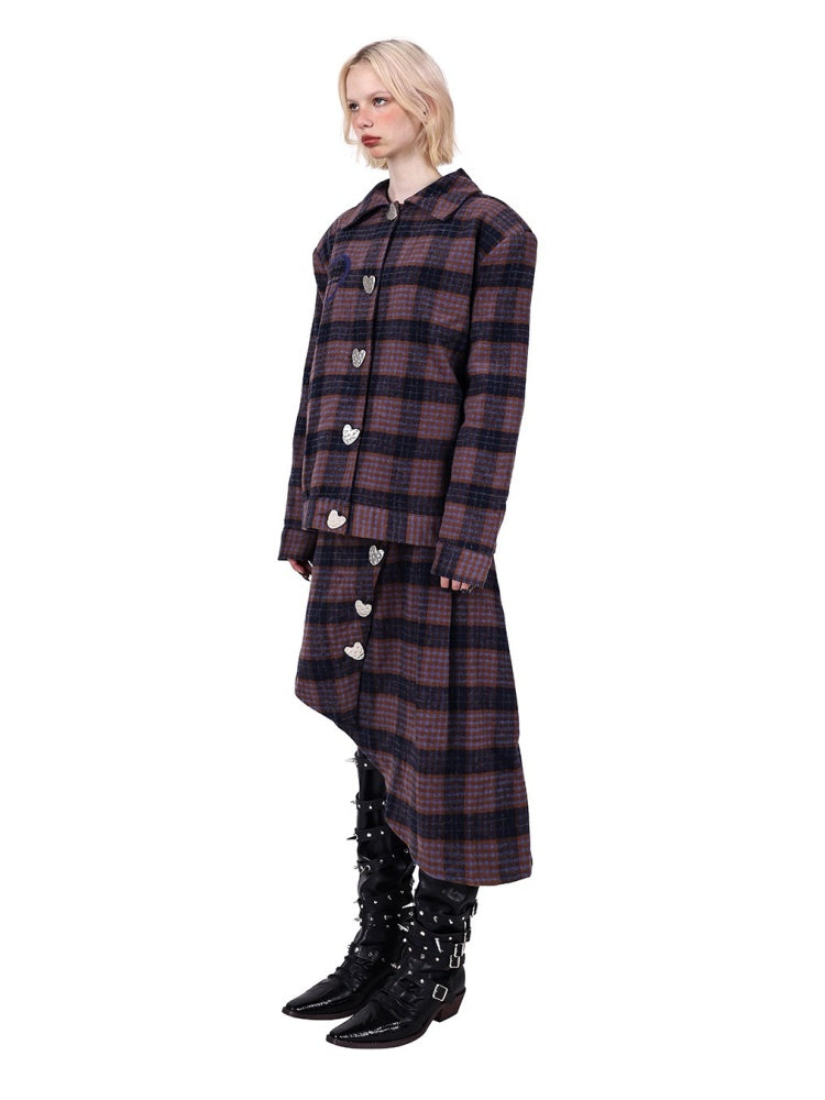 Plaid Metal Heart Jacket & Asymmetric Skirt Setup【s0000004350】