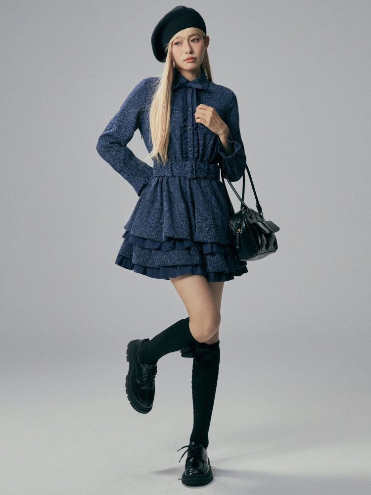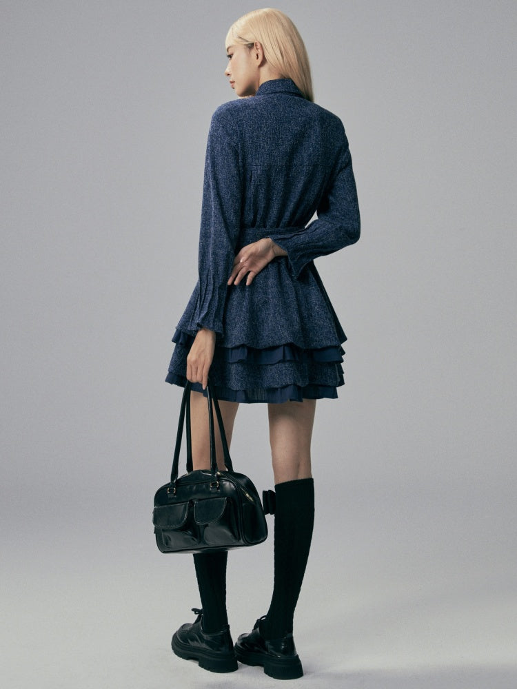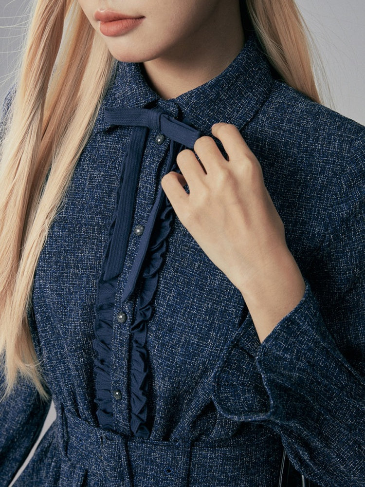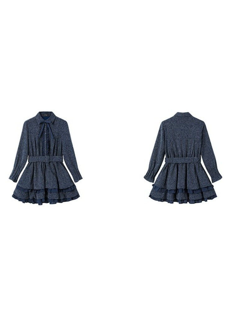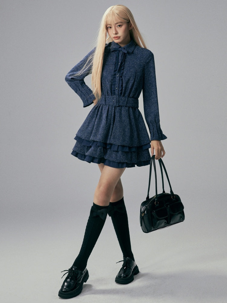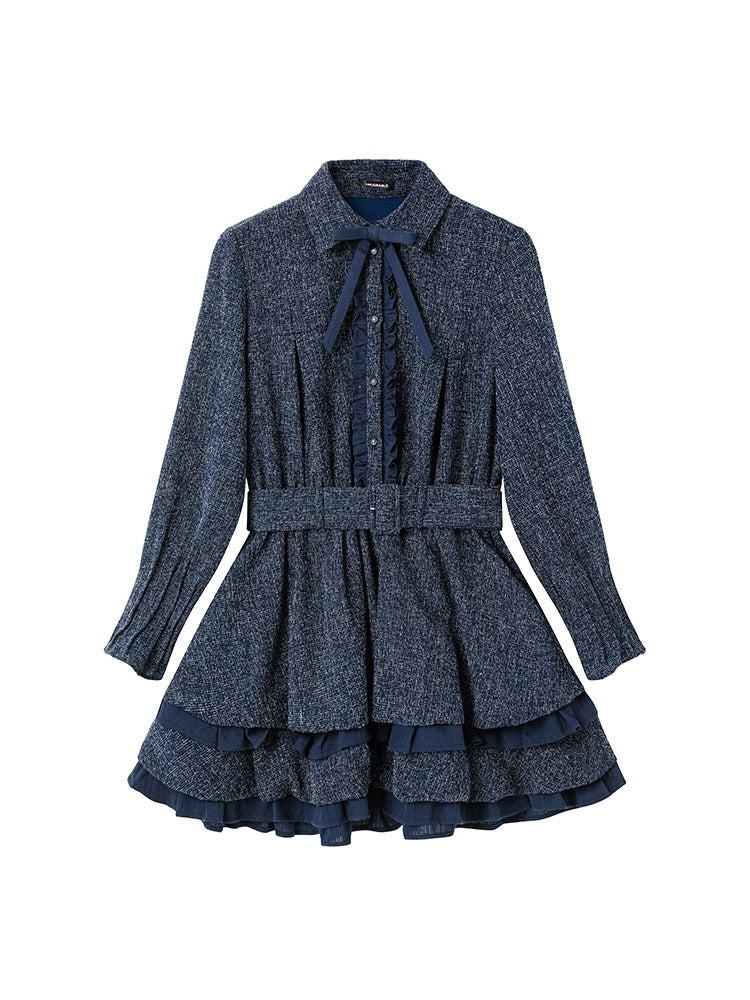 Elegant Bowtie Ruffle Pleated Dress【s0000004363】