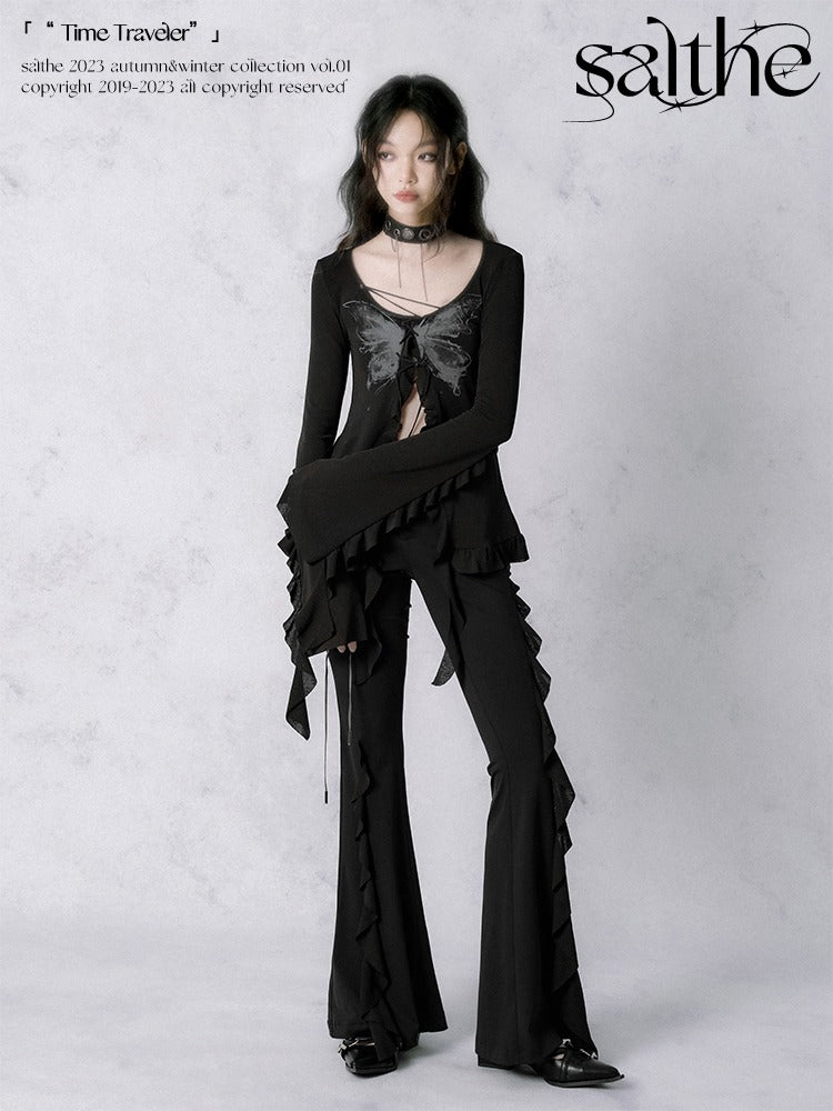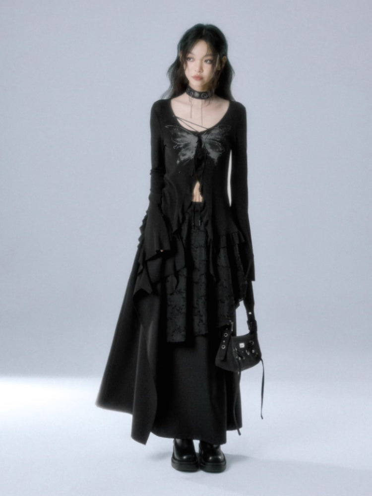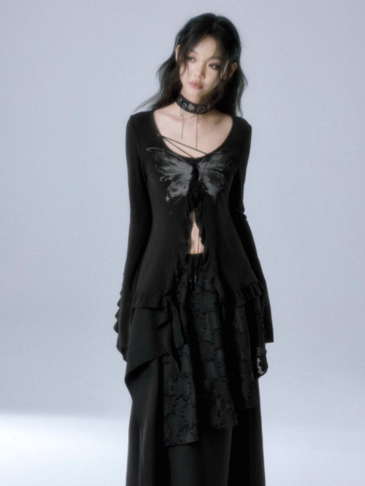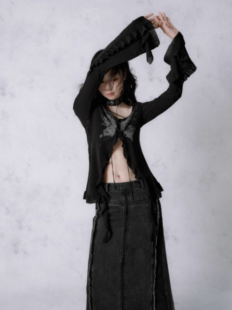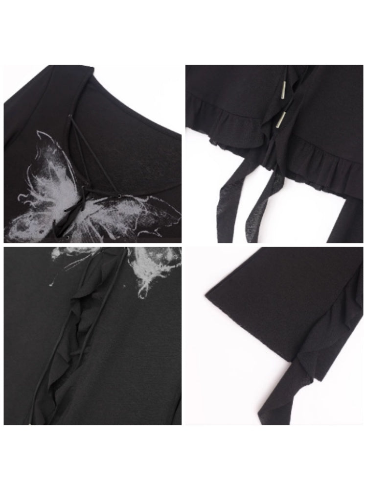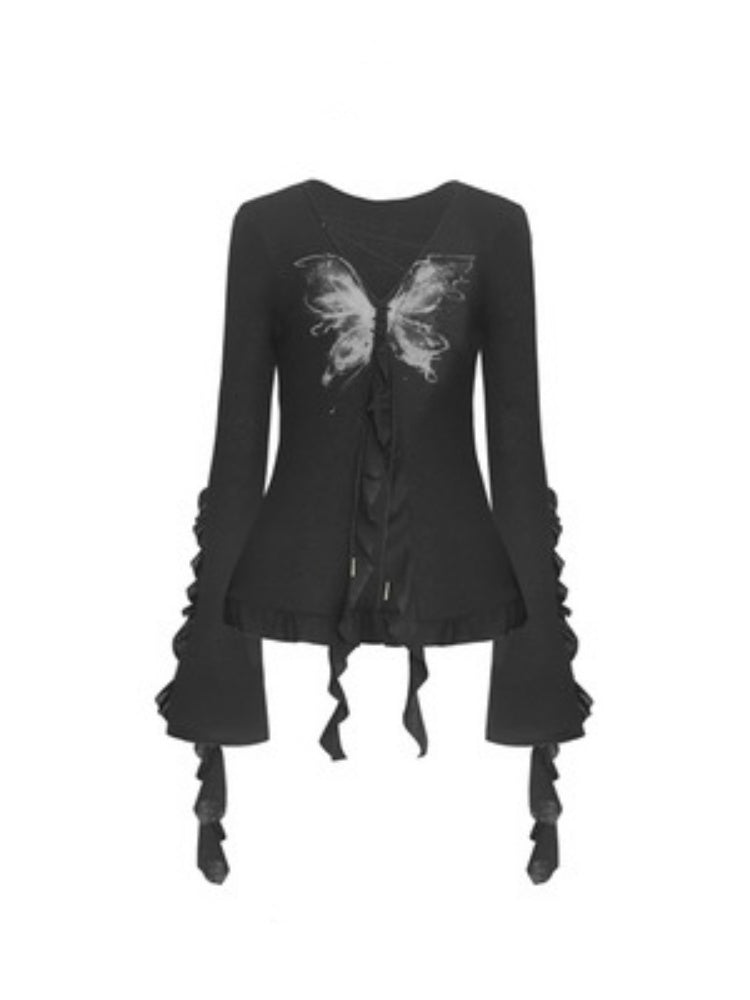 Butterfly Print Fungus Ruffle Knitted Cardigan【s0000004366】