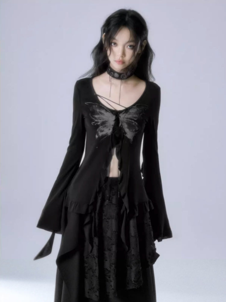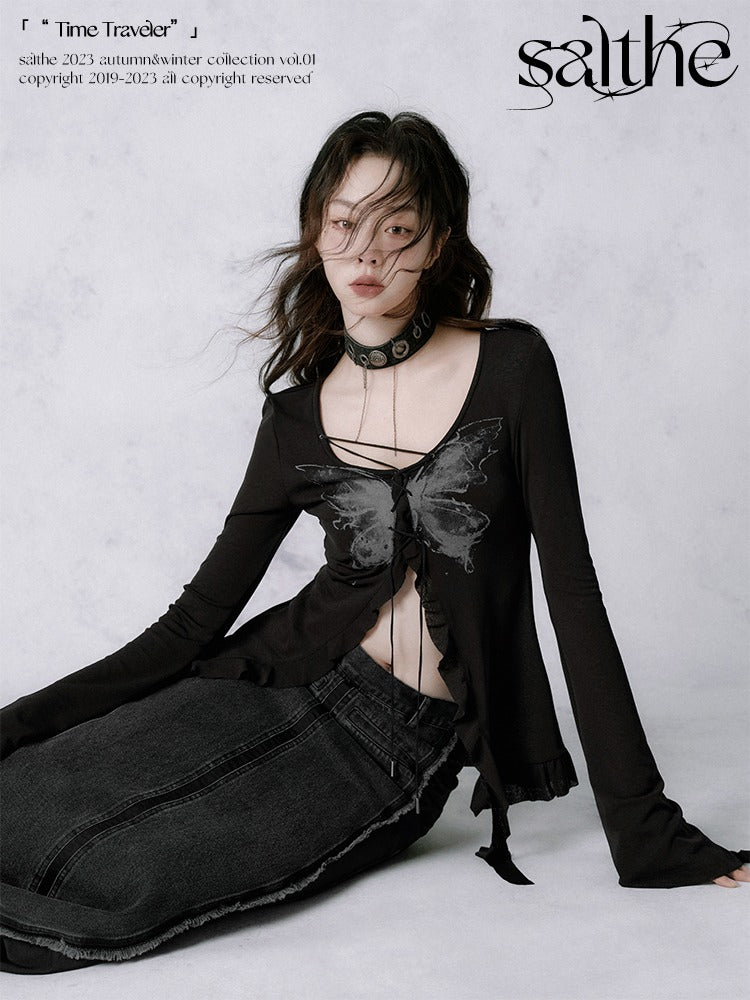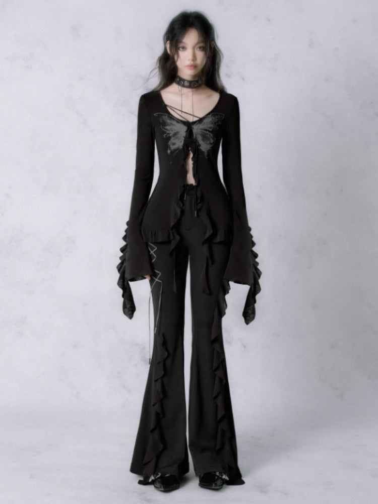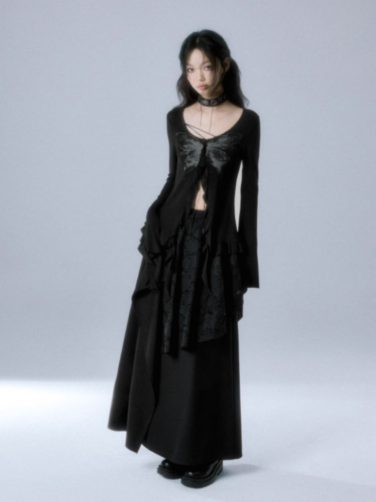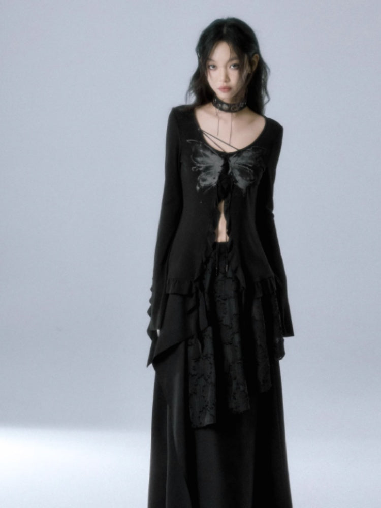 Butterfly Print Fungus Ruffle Knitted Cardigan【s0000004366】