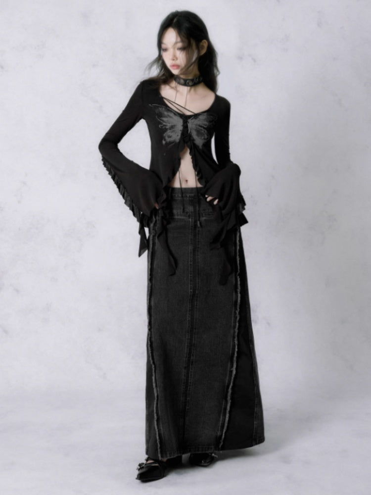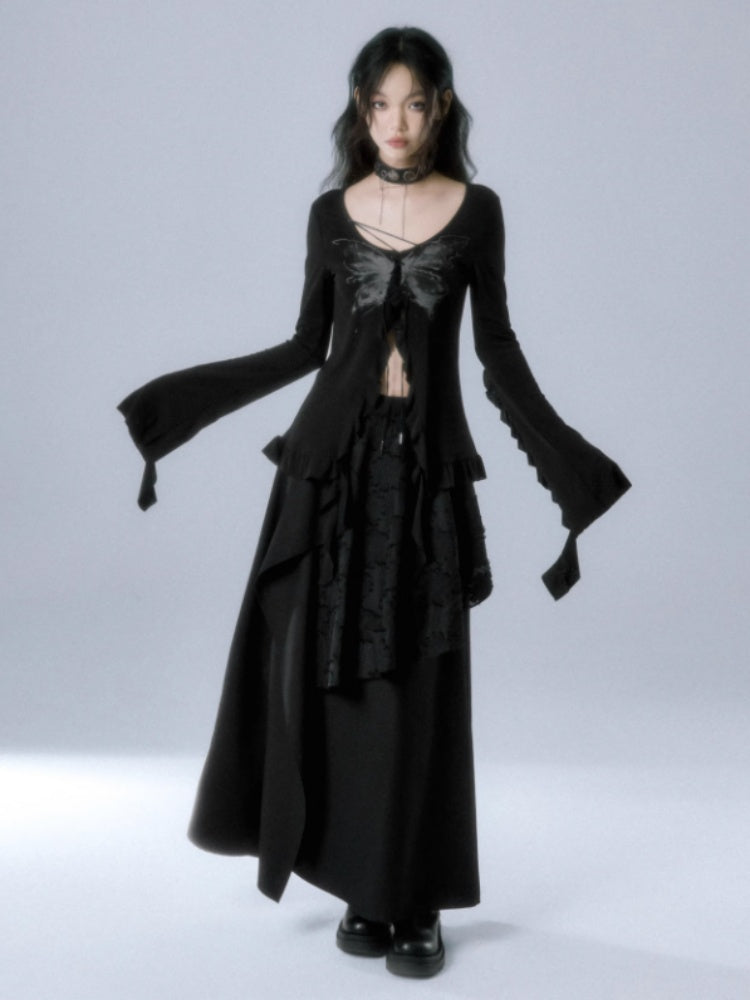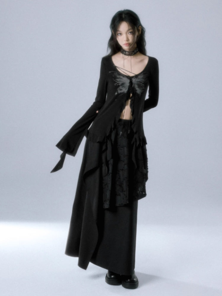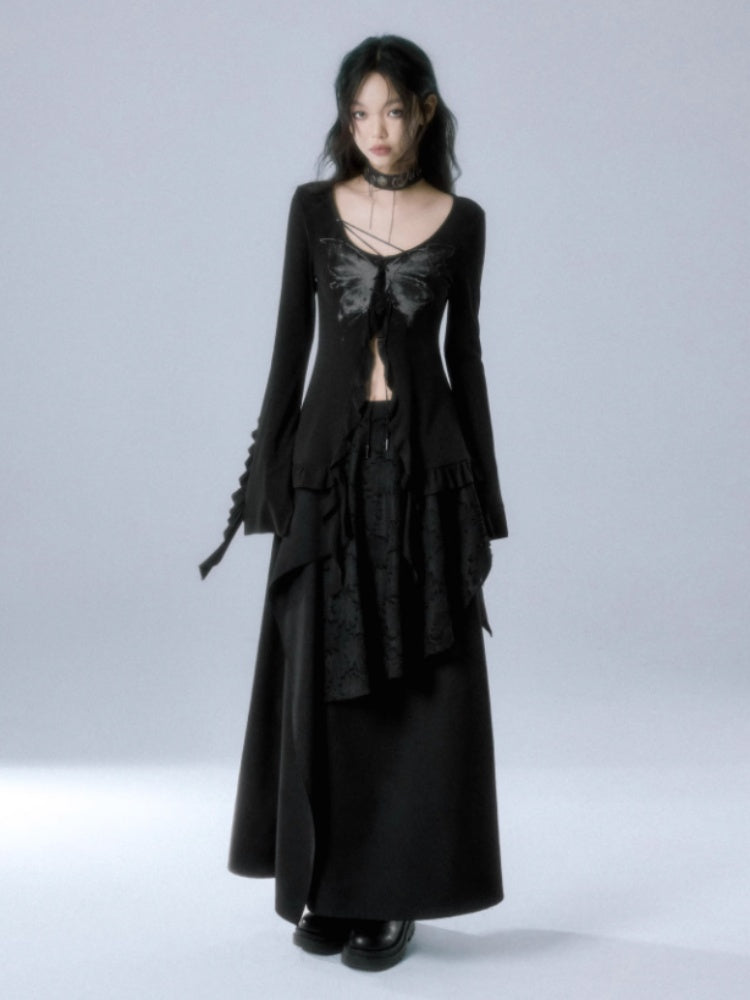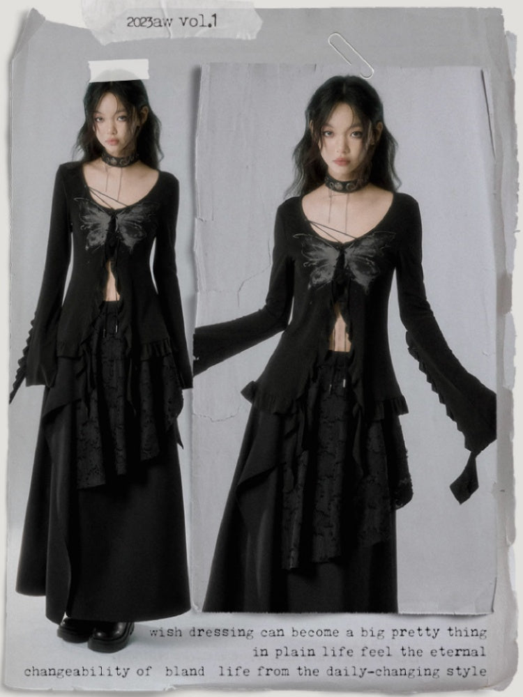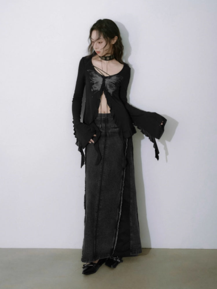 Butterfly Print Fungus Ruffle Knitted Cardigan【s0000004366】