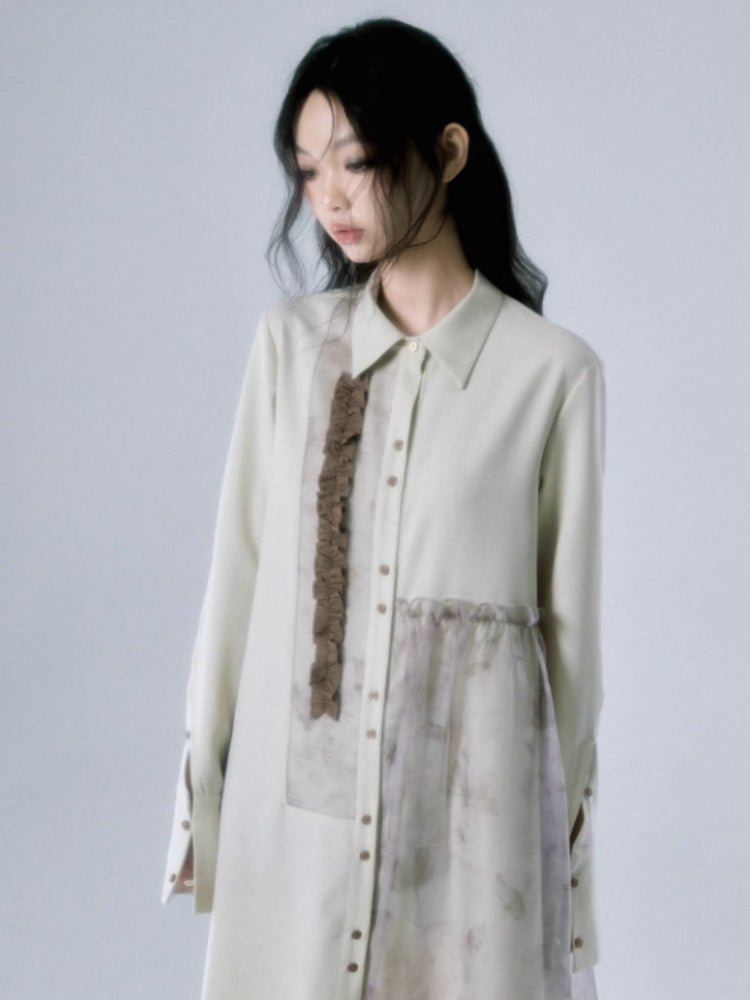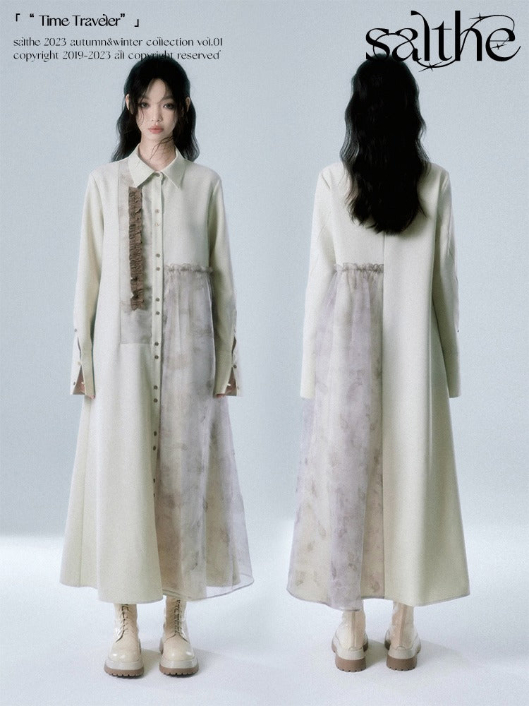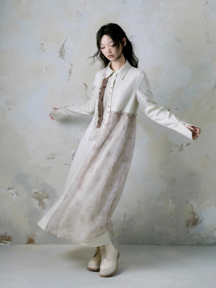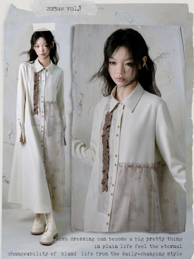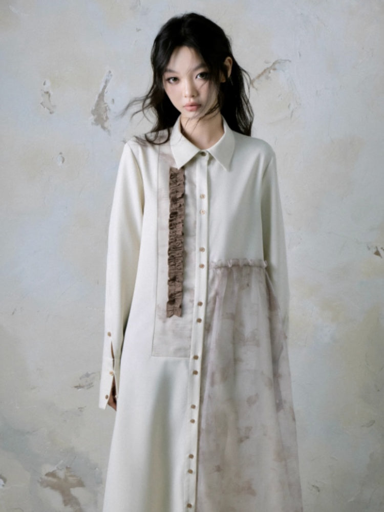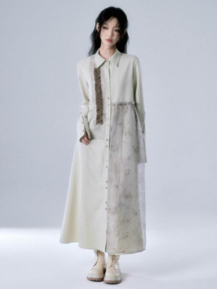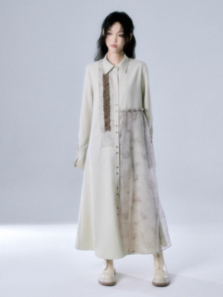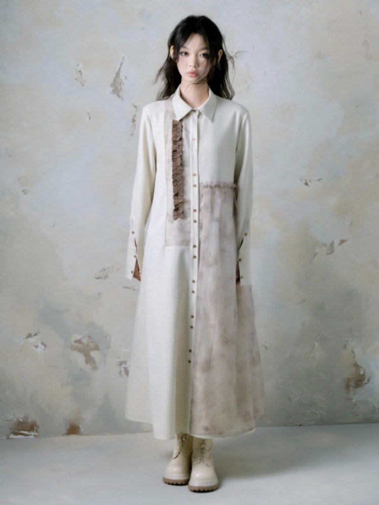Drape Stitch Long Sleeve Shirt Dress【s0000004368】