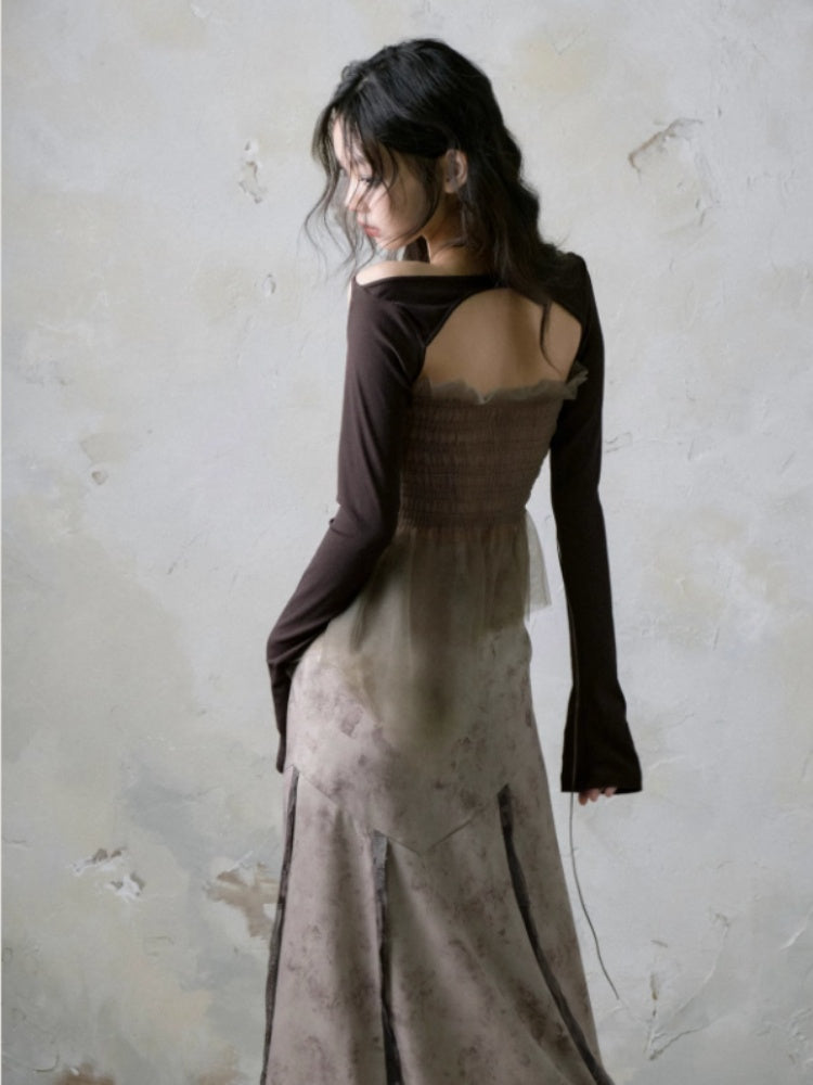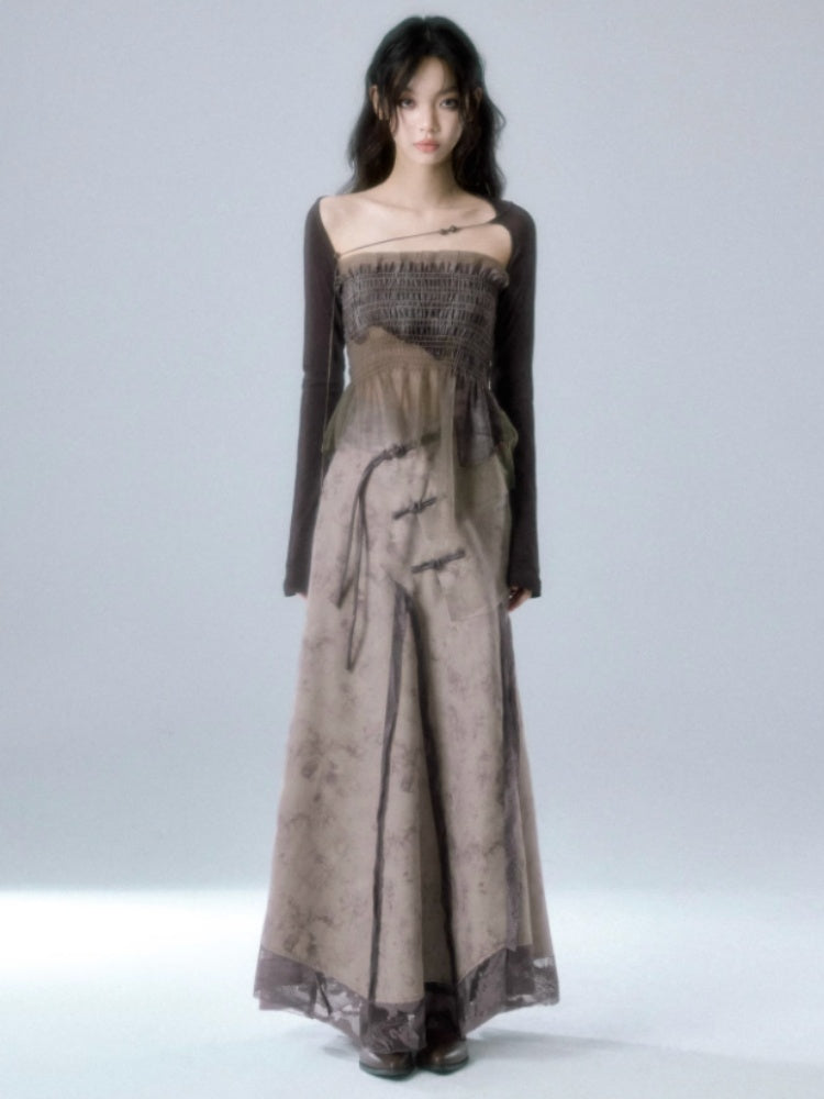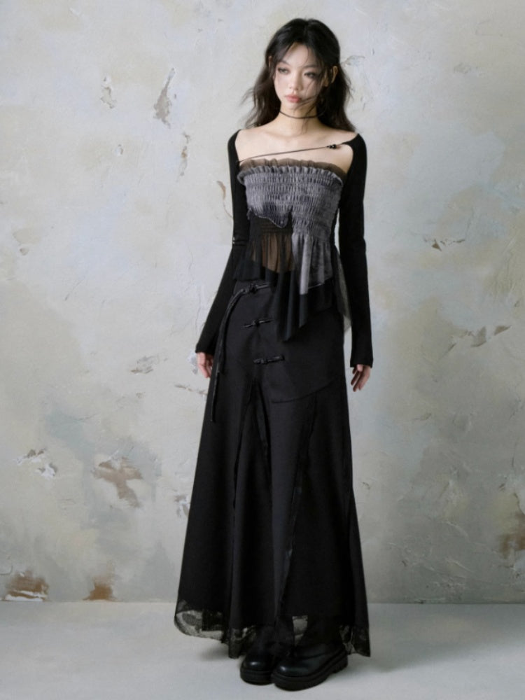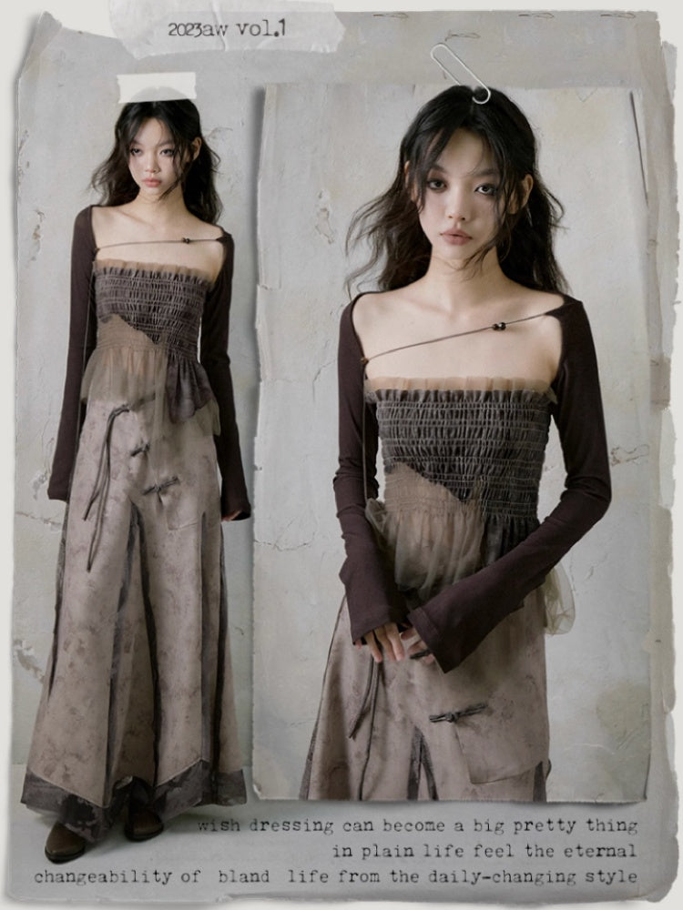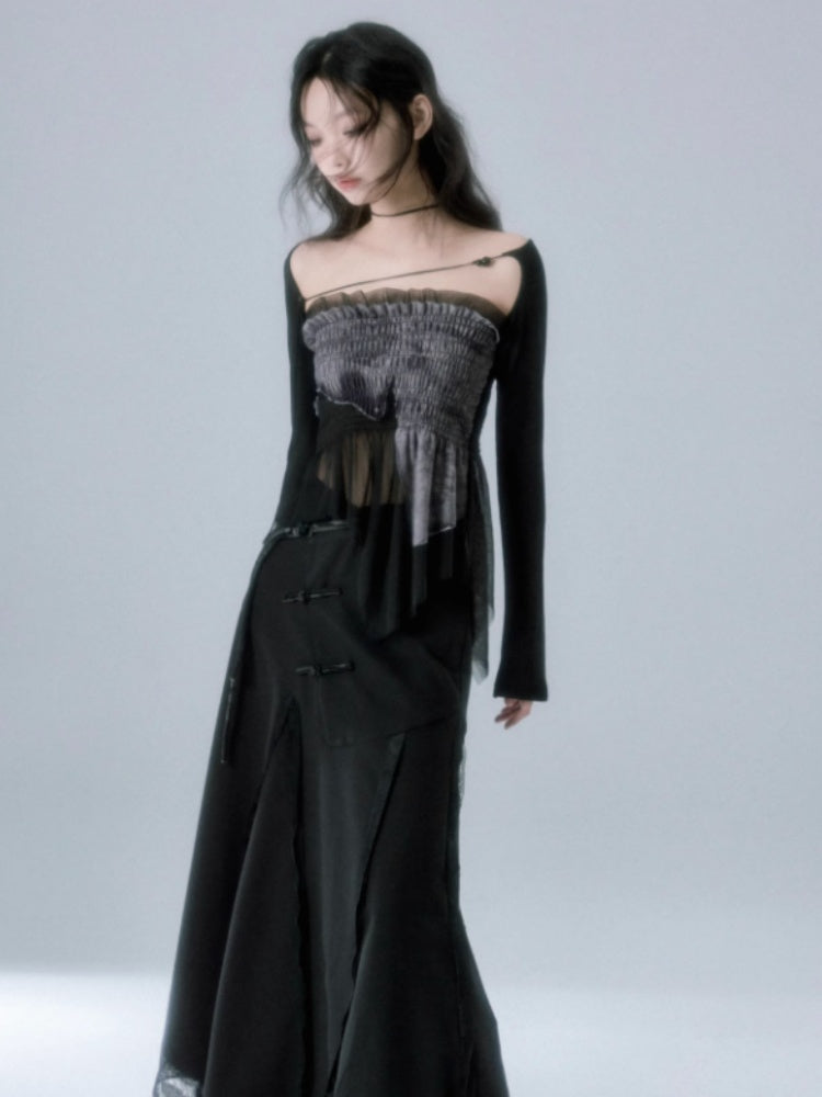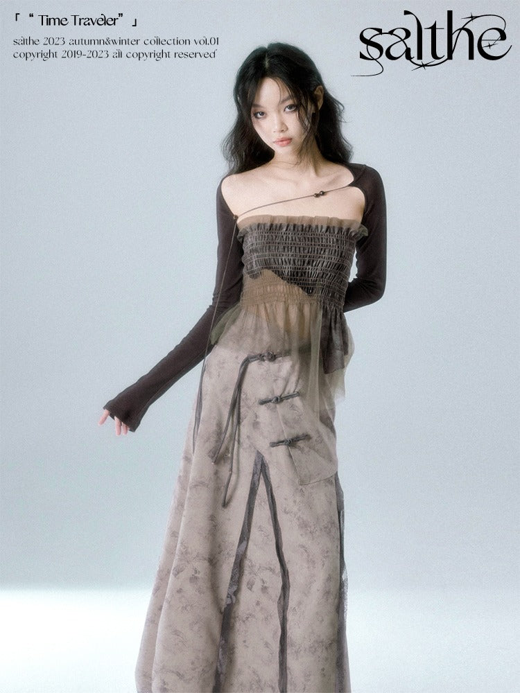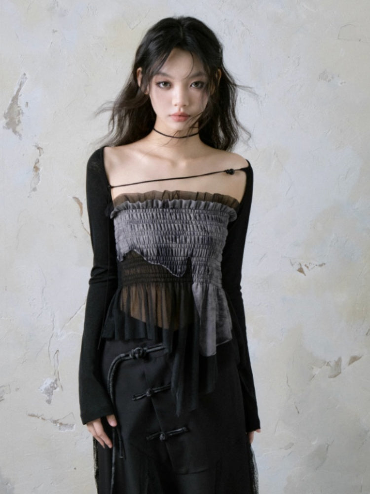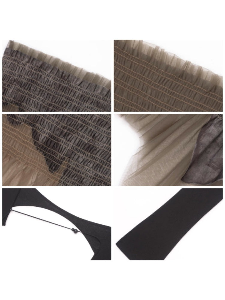 Mesh Stitch Elastic Tube Top & Waistcoat【s0000004372】