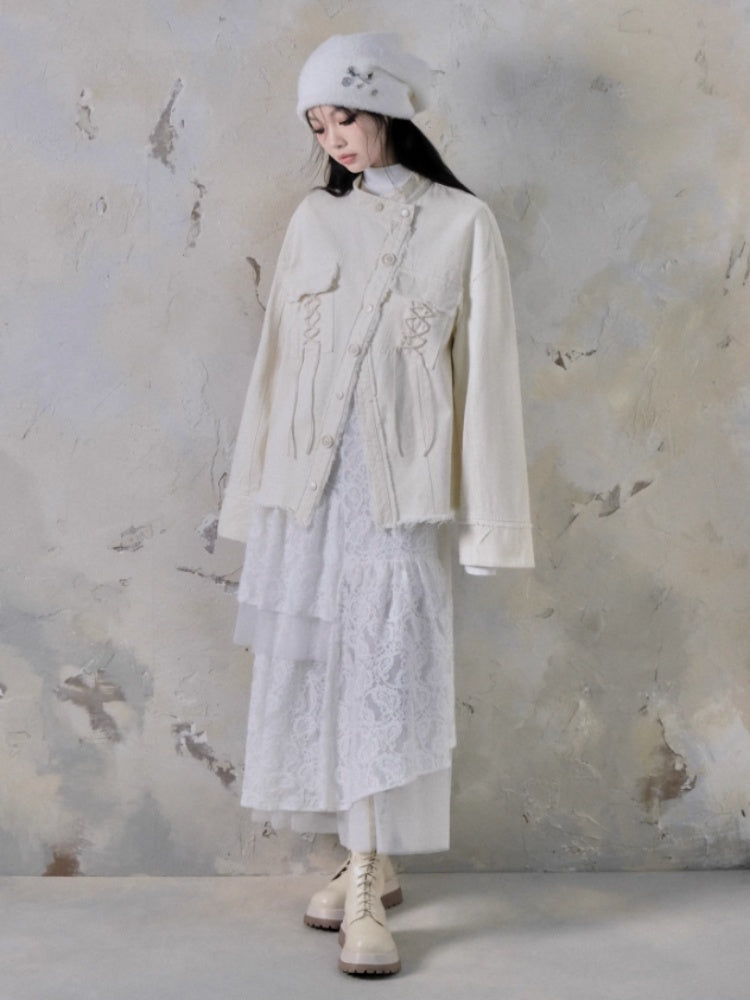Asymmetrical Stitching Hollow Jacquard Long Sleeved Dress【s0000004394】