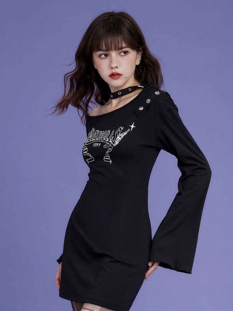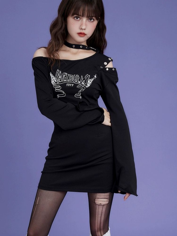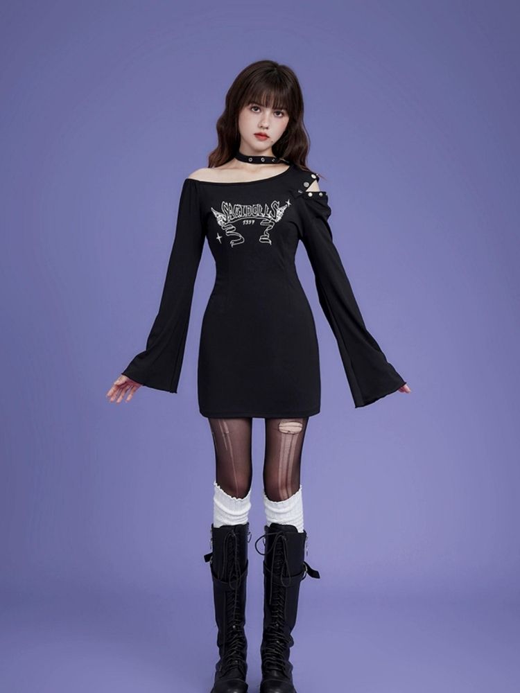 Hollow Out Neck Ring Irregular Design Dresse【s0000004435】